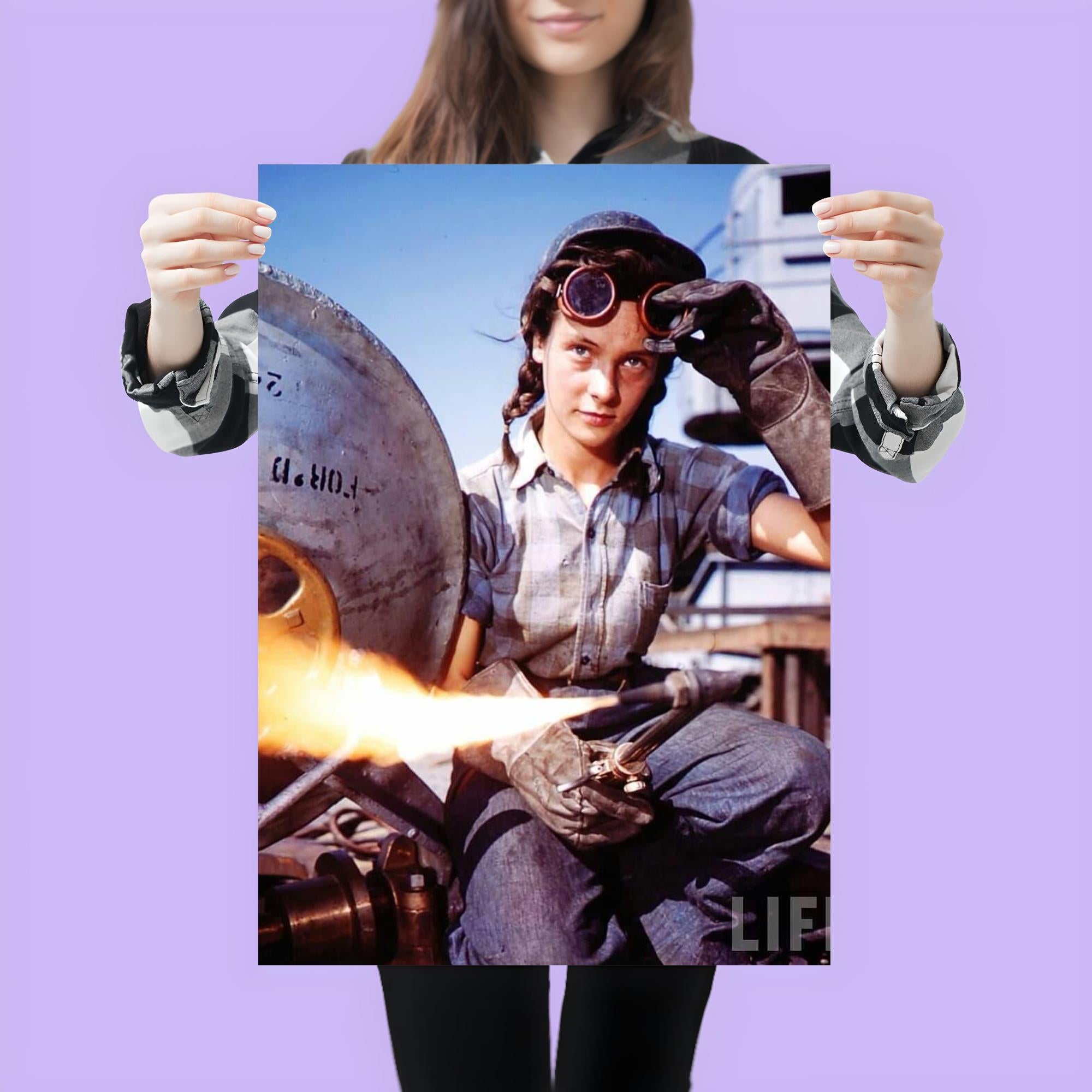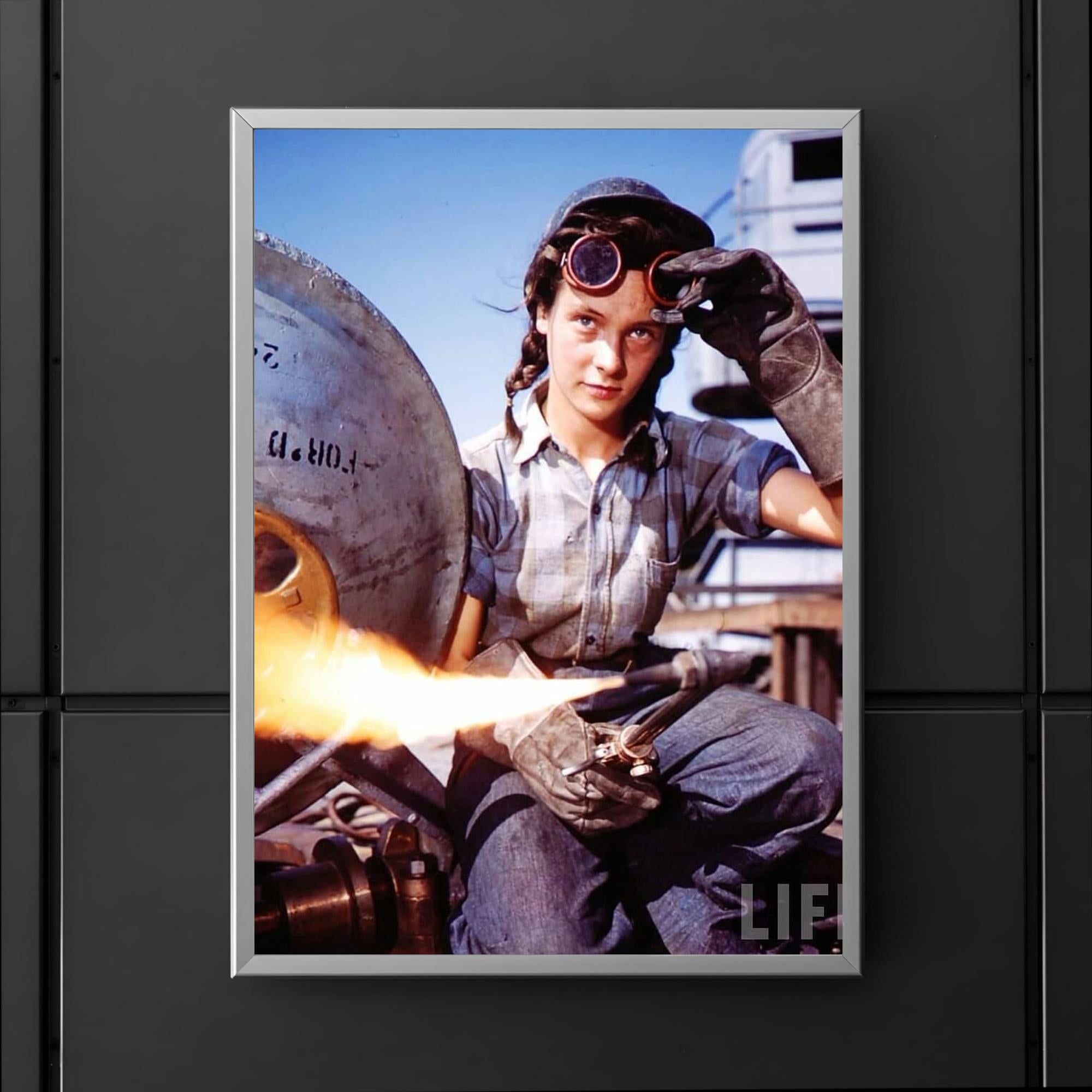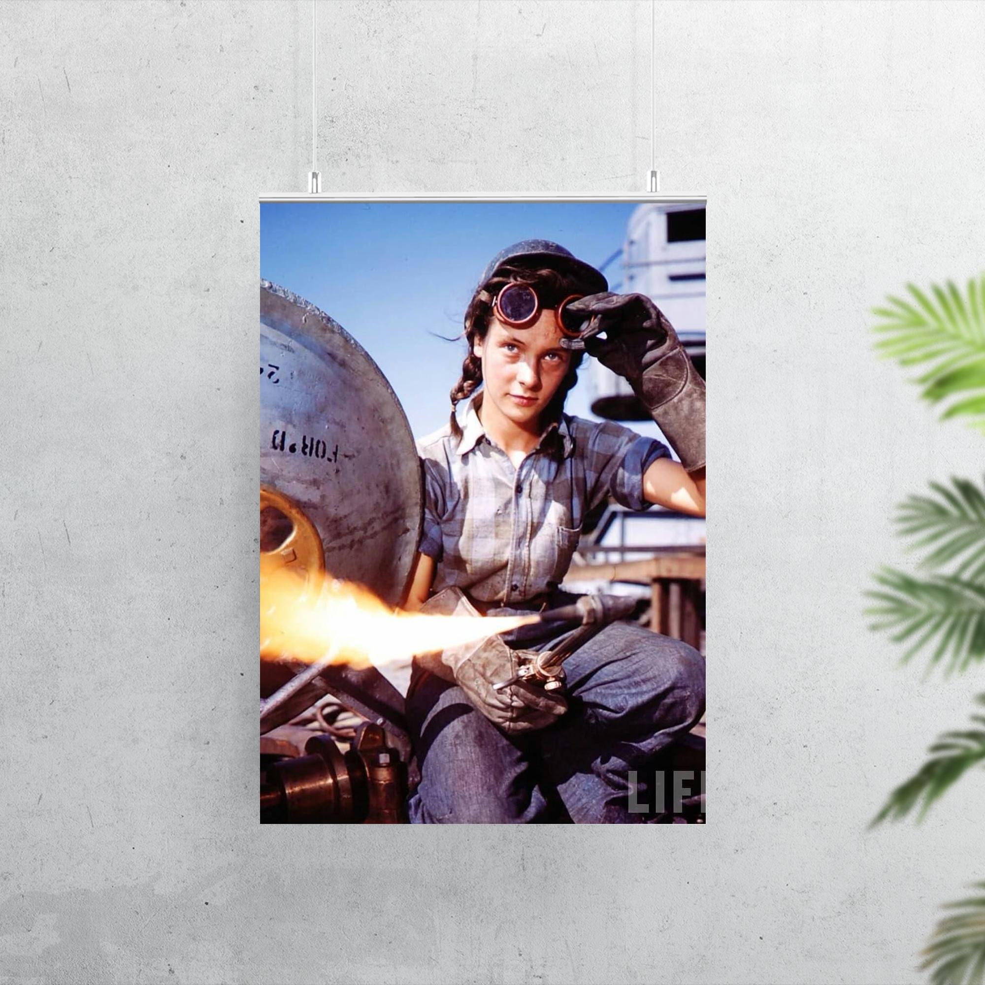 Capture a historic moment of strength and resilience with this powerful 1943 photograph by Bernard Hoffman. Featuring a 20-year-old female welder on the home front during WWII, this poster honors the courage and determination of women who shaped history through their skilled labor. A timeless tribute to grit and patriotism, perfect for inspiring spaces.