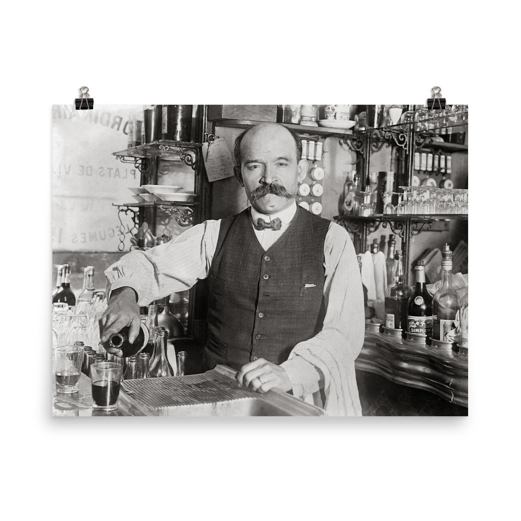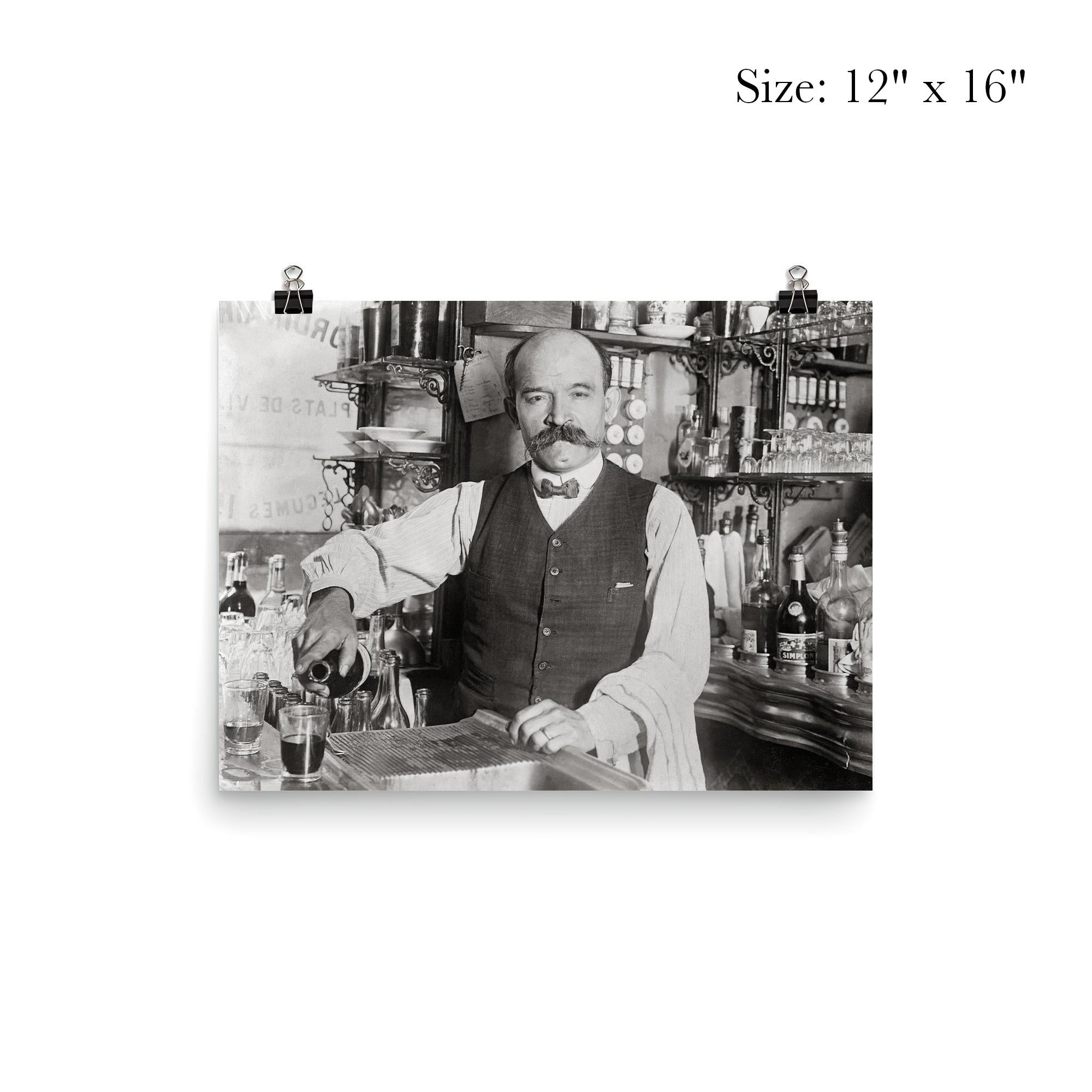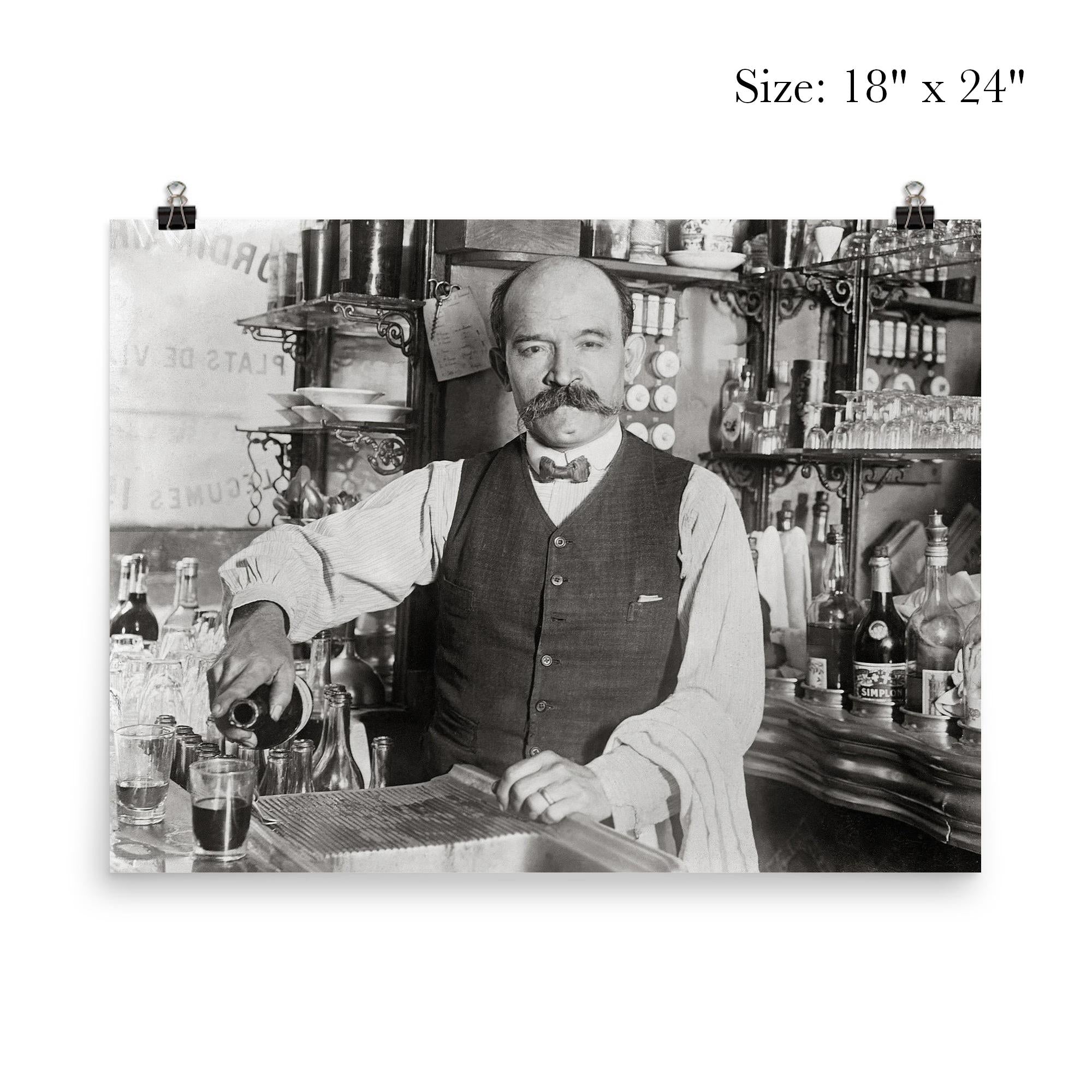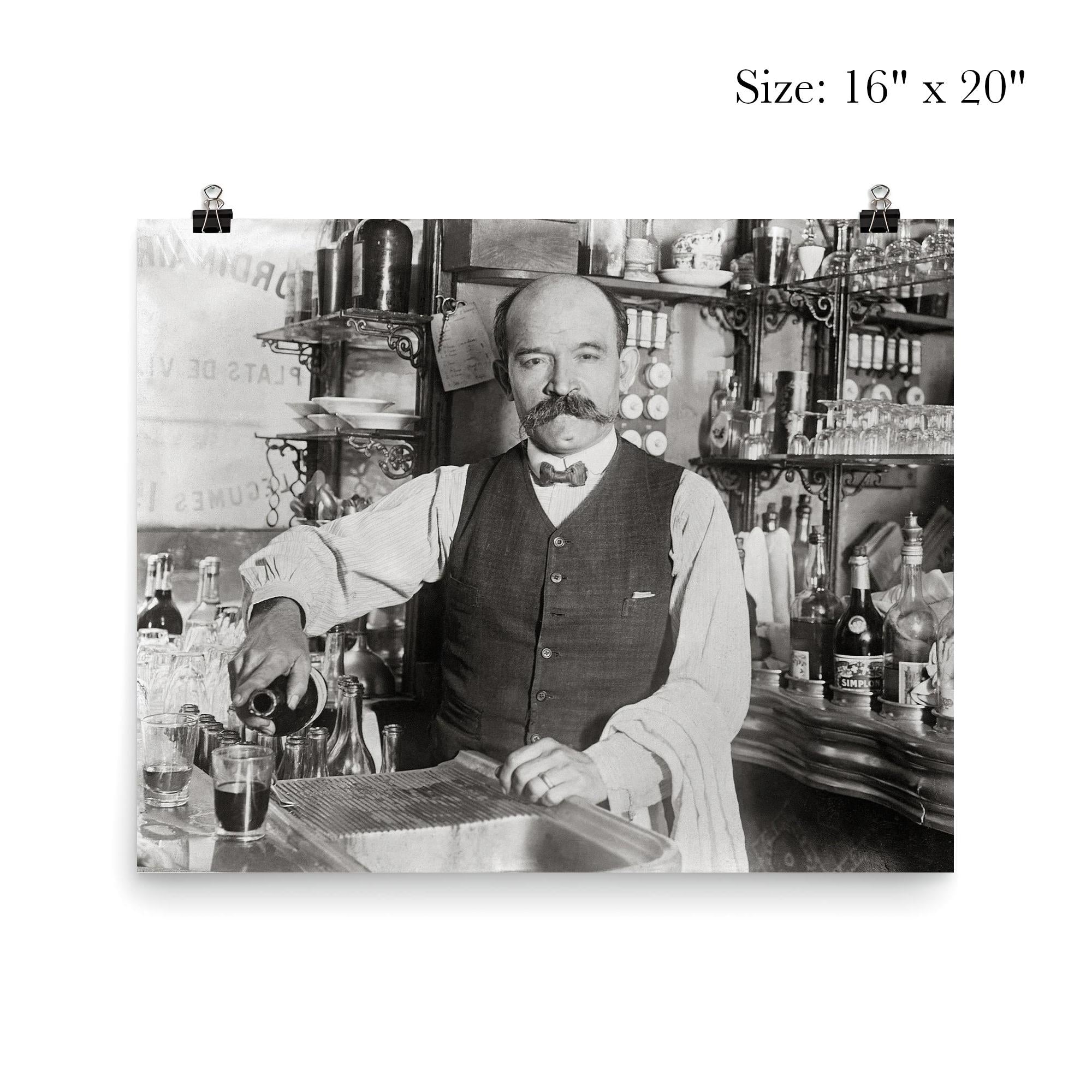 Step back in time with this striking poster capturing a bartender expertly pouring a drink in 1910 New York City. The scene embodies the timeless craft and vibrant spirit of an era when cocktails began to define nightlife. Perfect for adding a touch of vintage charm and urban sophistication to any space.