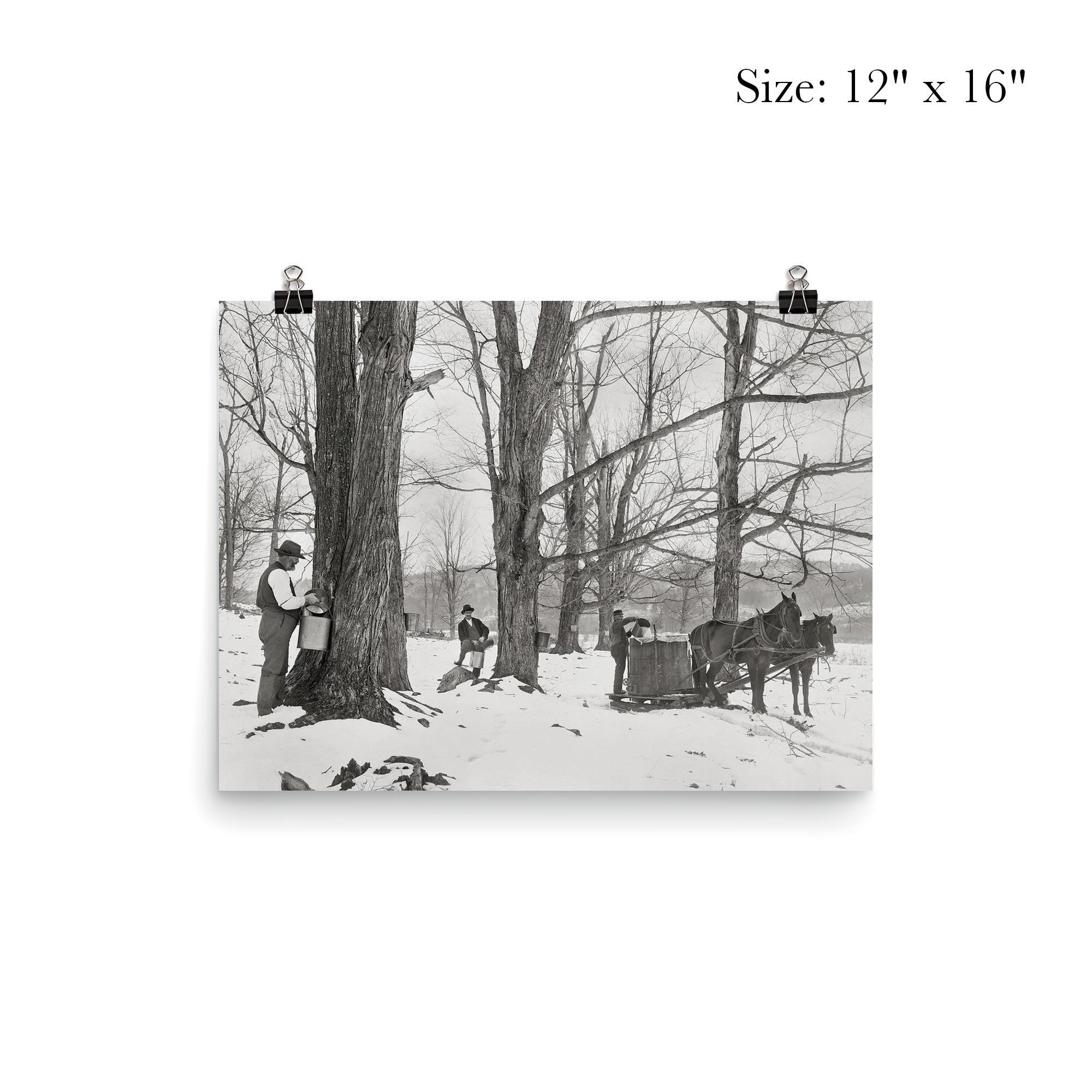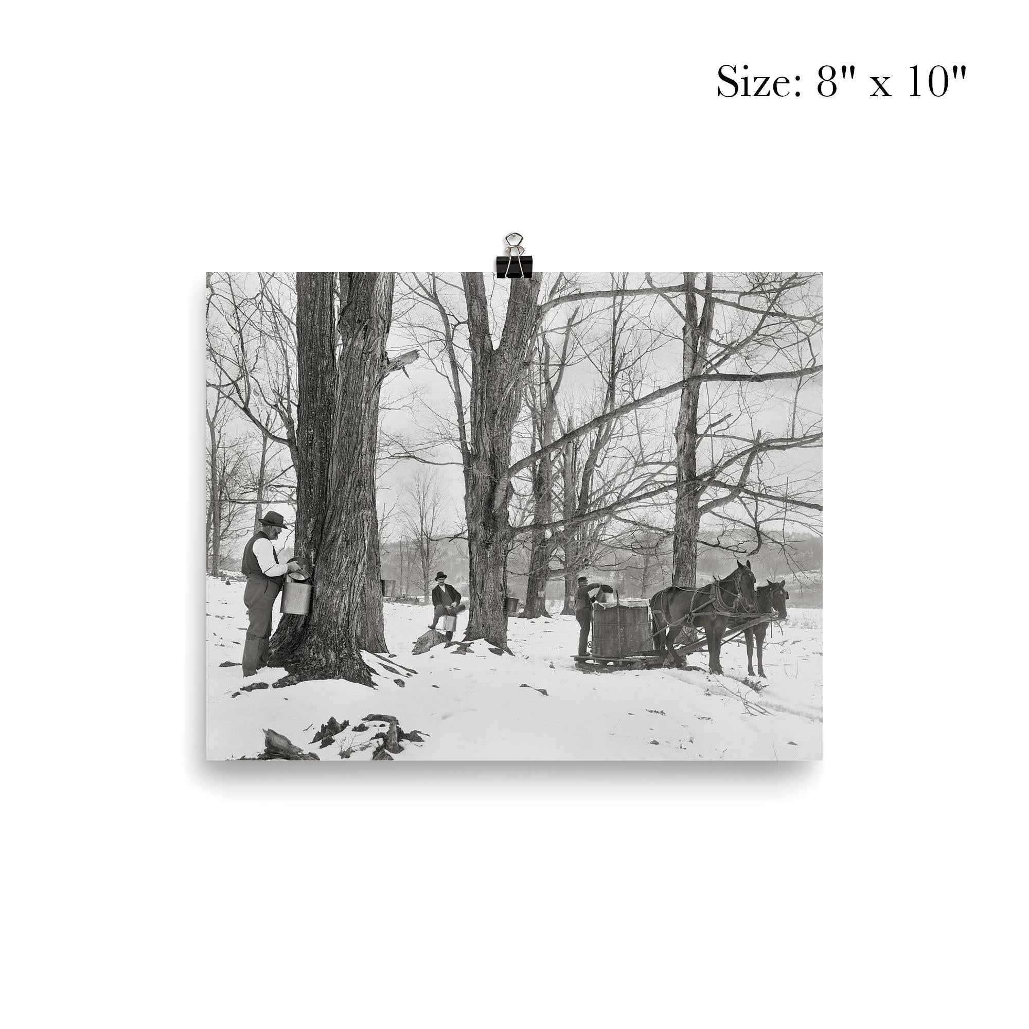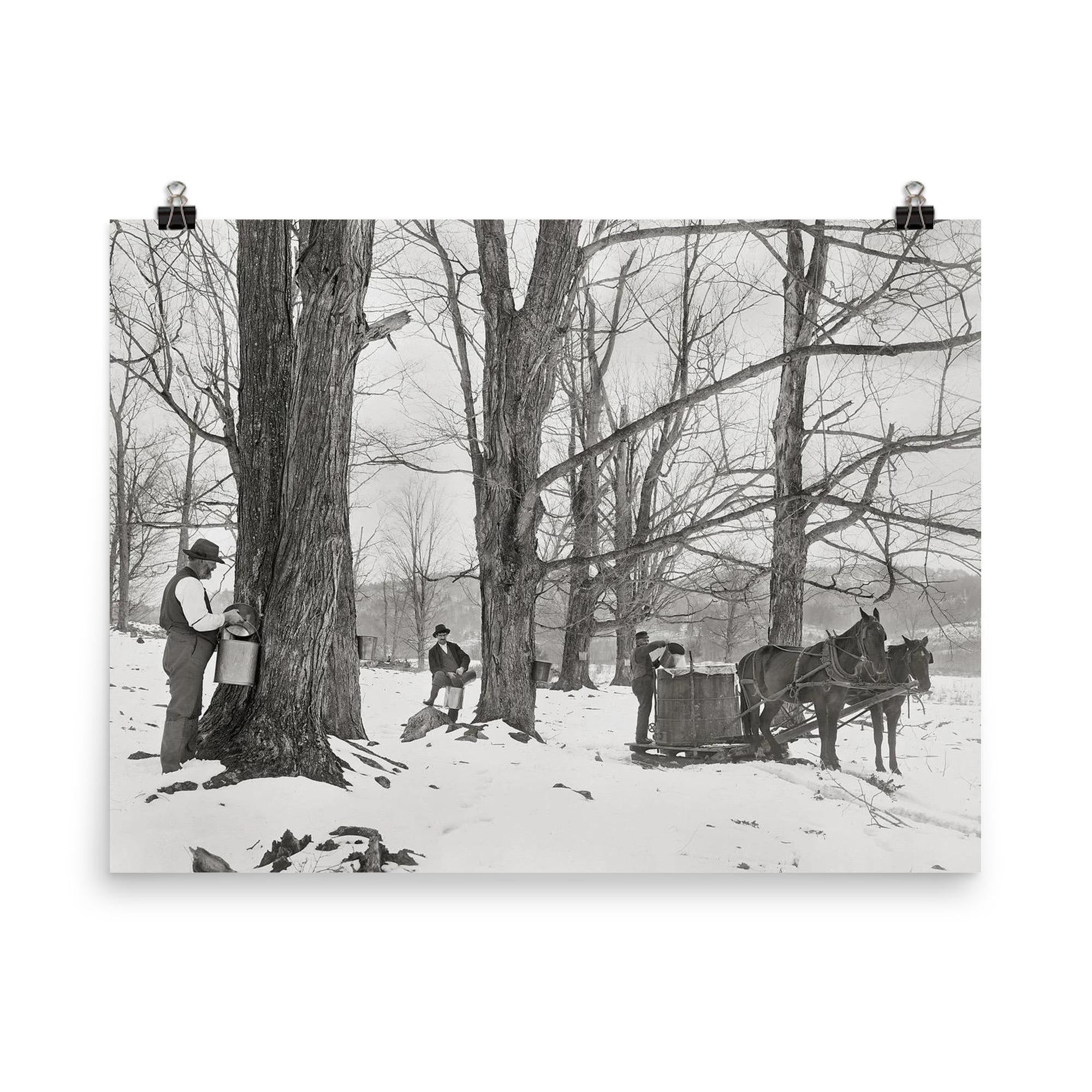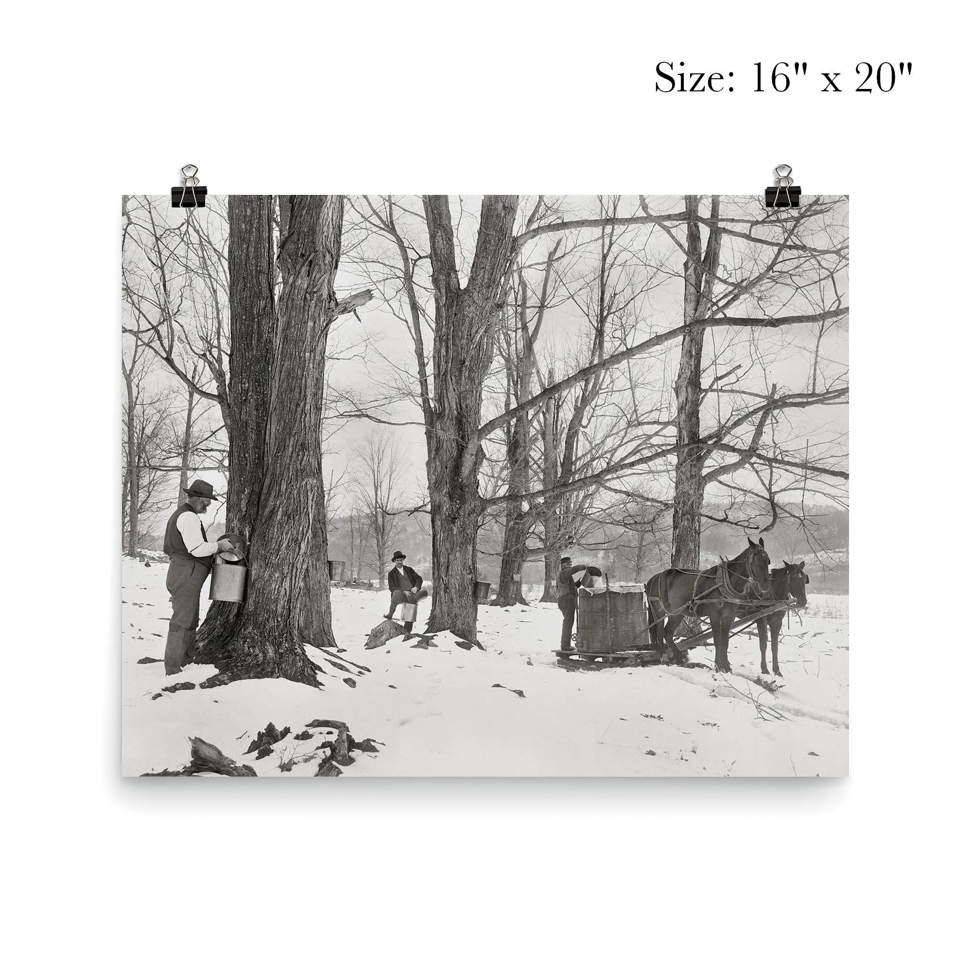 Step back in time with this striking 1906 poster capturing a group of men gathered at a Vermont maple sugar camp. The image offers a rare glimpse into the timeless tradition of maple sap collection, evoking the rich heritage and spirit of early 20th-century New England. Perfect for history enthusiasts and lovers of rustic Americana, this poster brings a piece of the past vividly to life on your wall.