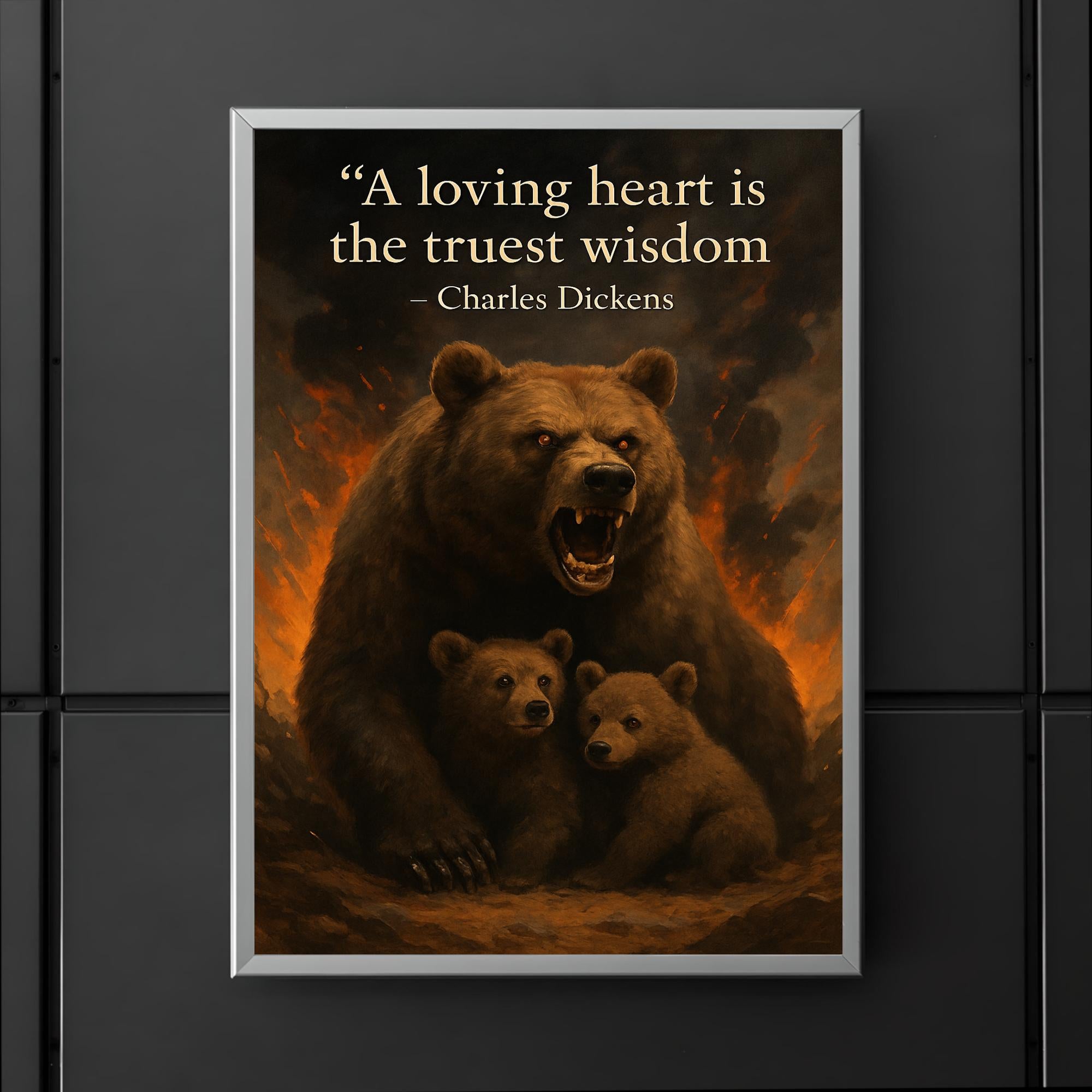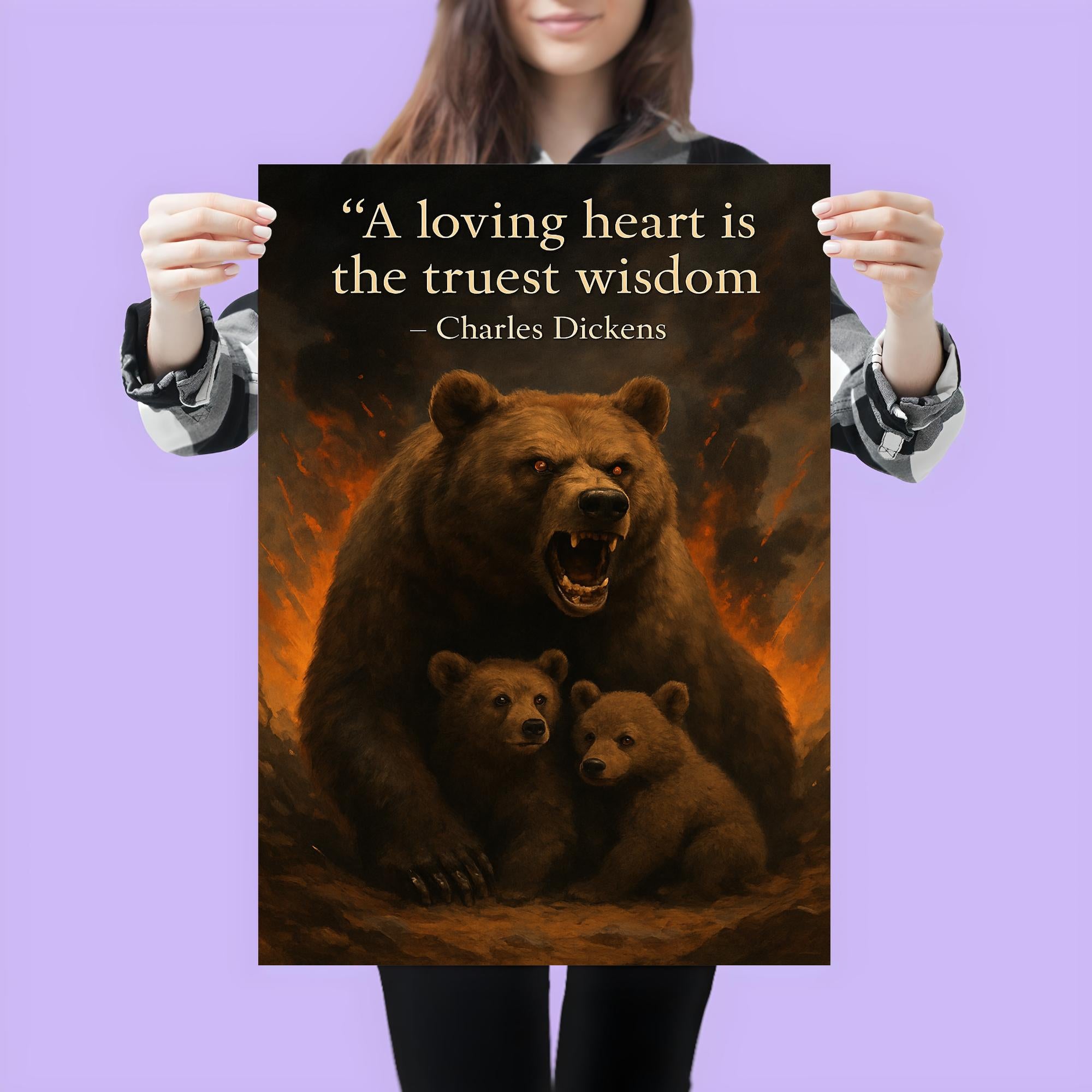 Charles Dickens Inspirational Quote Poster Print – Loving Heart Wisdom Wall Art with Charming Mother Bear Design for Unique Home Decor