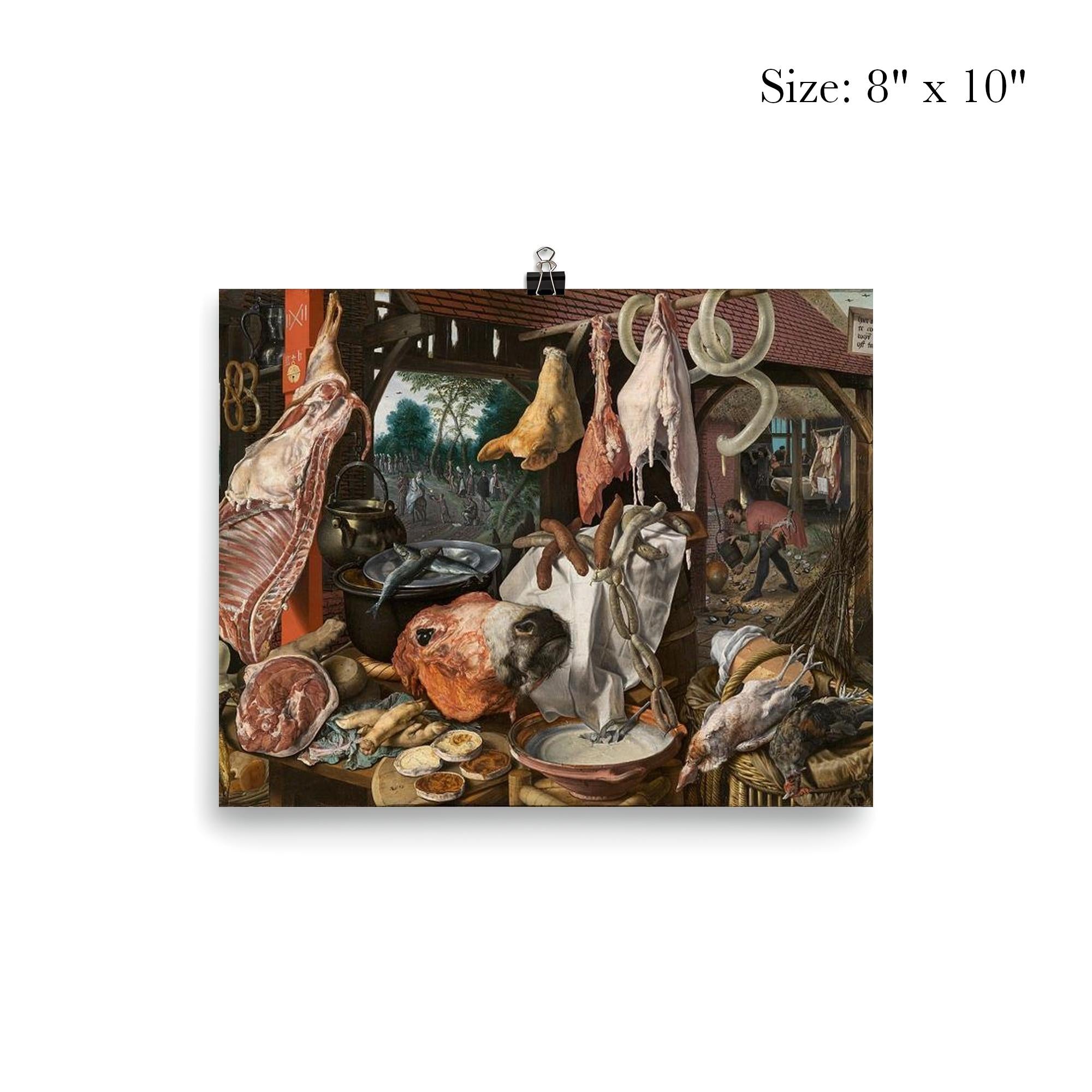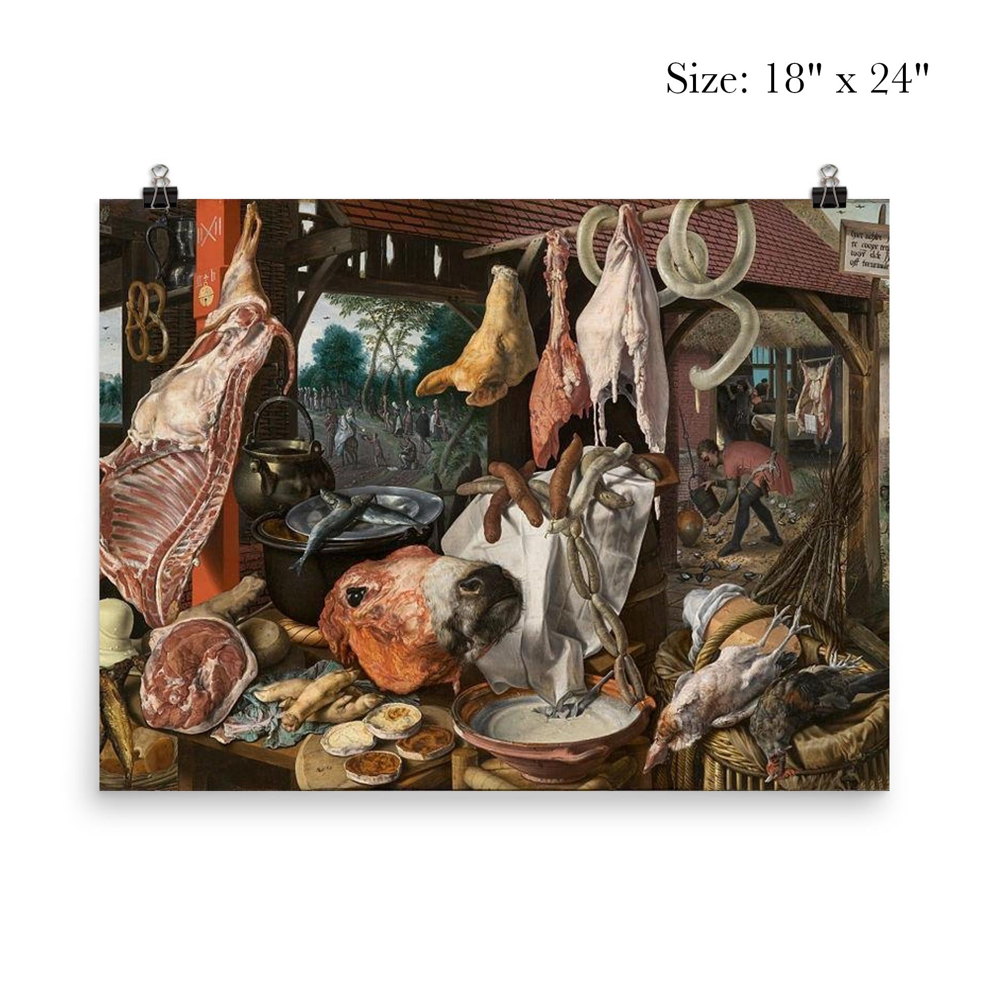 Bring a touch of Renaissance mastery into your space with this stunning poster of Aertsen’s *A Meat Stall with the Holy Family Giving Alms*. The intricate interplay of everyday market life and a compassionate spiritual scene invites contemplation and admiration, blending rich detail with profound storytelling. Perfect for art lovers who appreciate depth and history in their decor.
