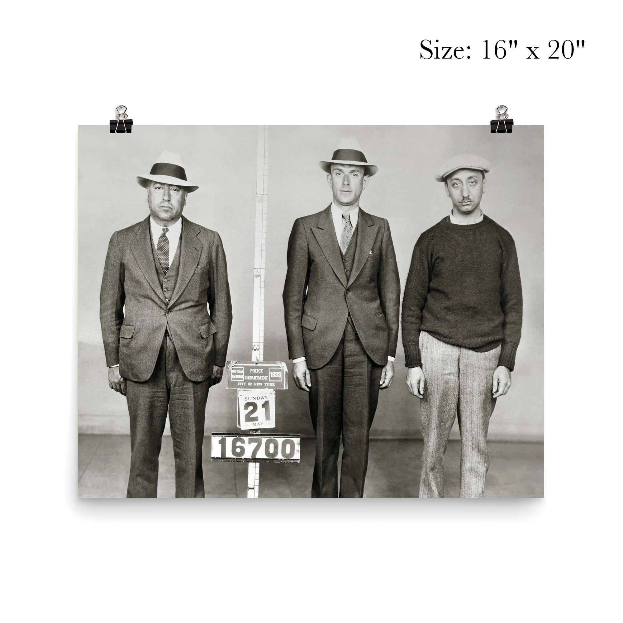 Step back in time with this striking 1933 mug shot poster featuring notorious gangster and bootlegger Waxey Gordon alongside two of his associates. Capturing a raw moment in New York City's gritty history, this powerful image brings the era of Prohibition-era crime to life on your wall. Perfect for lovers of true crime and vintage Americana, it’s a bold statement piece that evokes the stories behind the headlines.