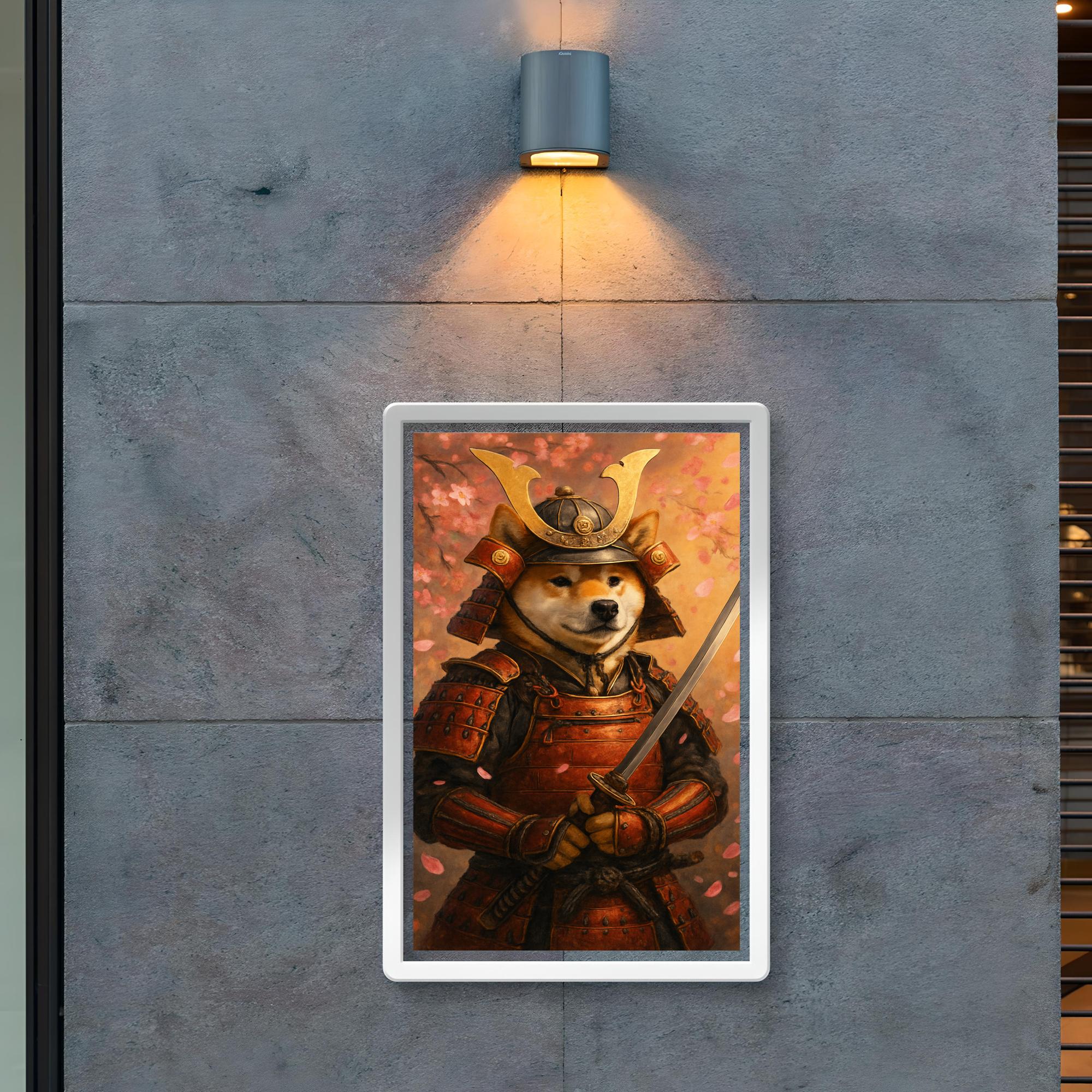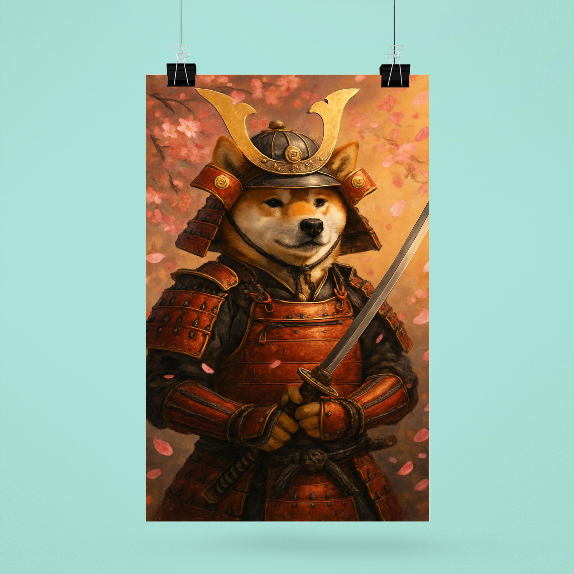 Unleash the spirit of honor and courage with this stunning poster featuring a Shiba Inu clad in full samurai armor, gripping a katana with quiet determination. Against a serene backdrop of delicate cherry blossoms gently falling, this artwork masterfully blends tradition and charm—perfect for adding a bold, inspiring touch to any space.
