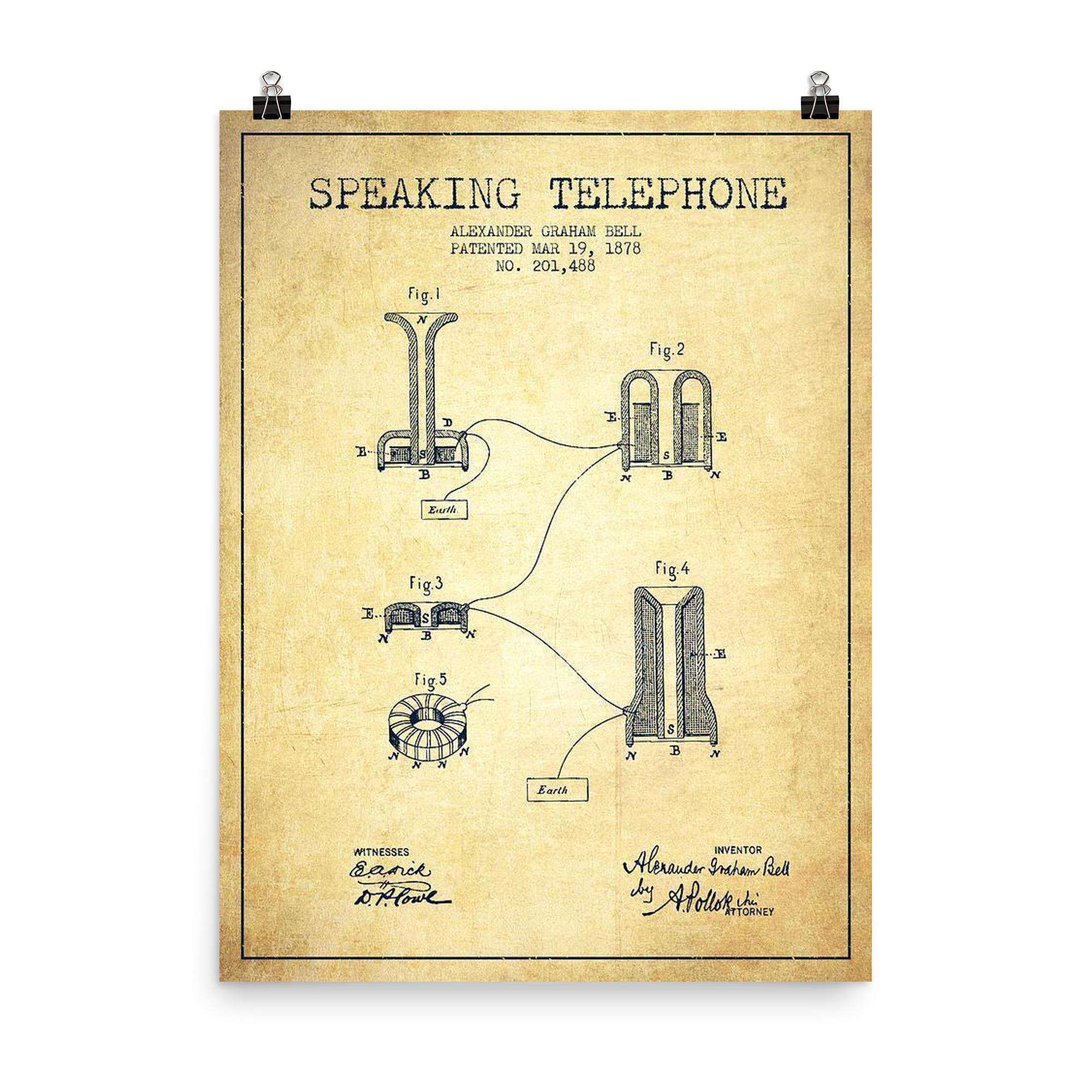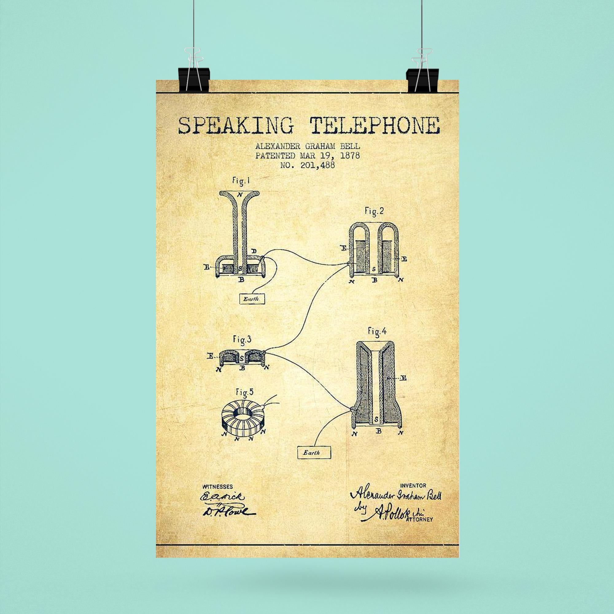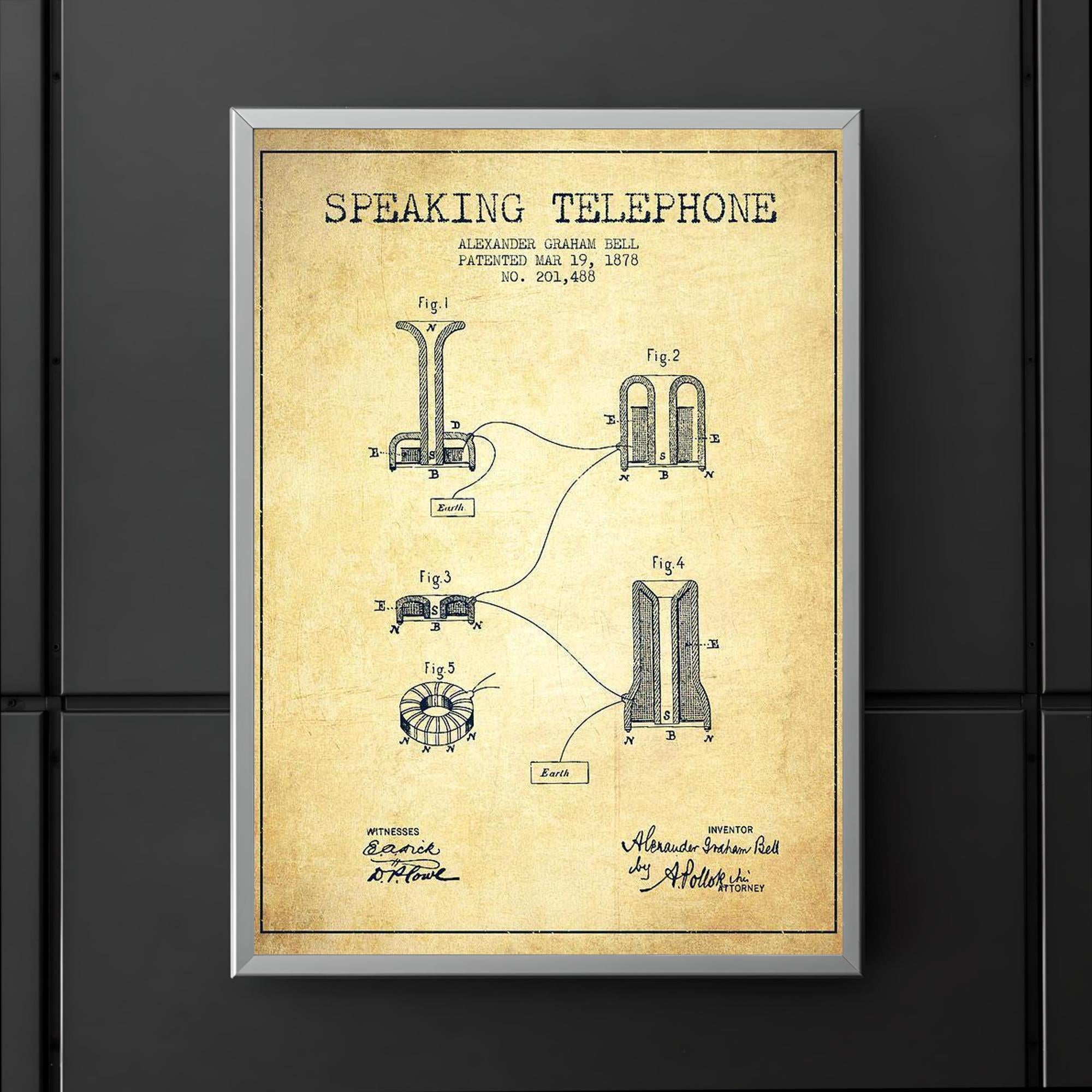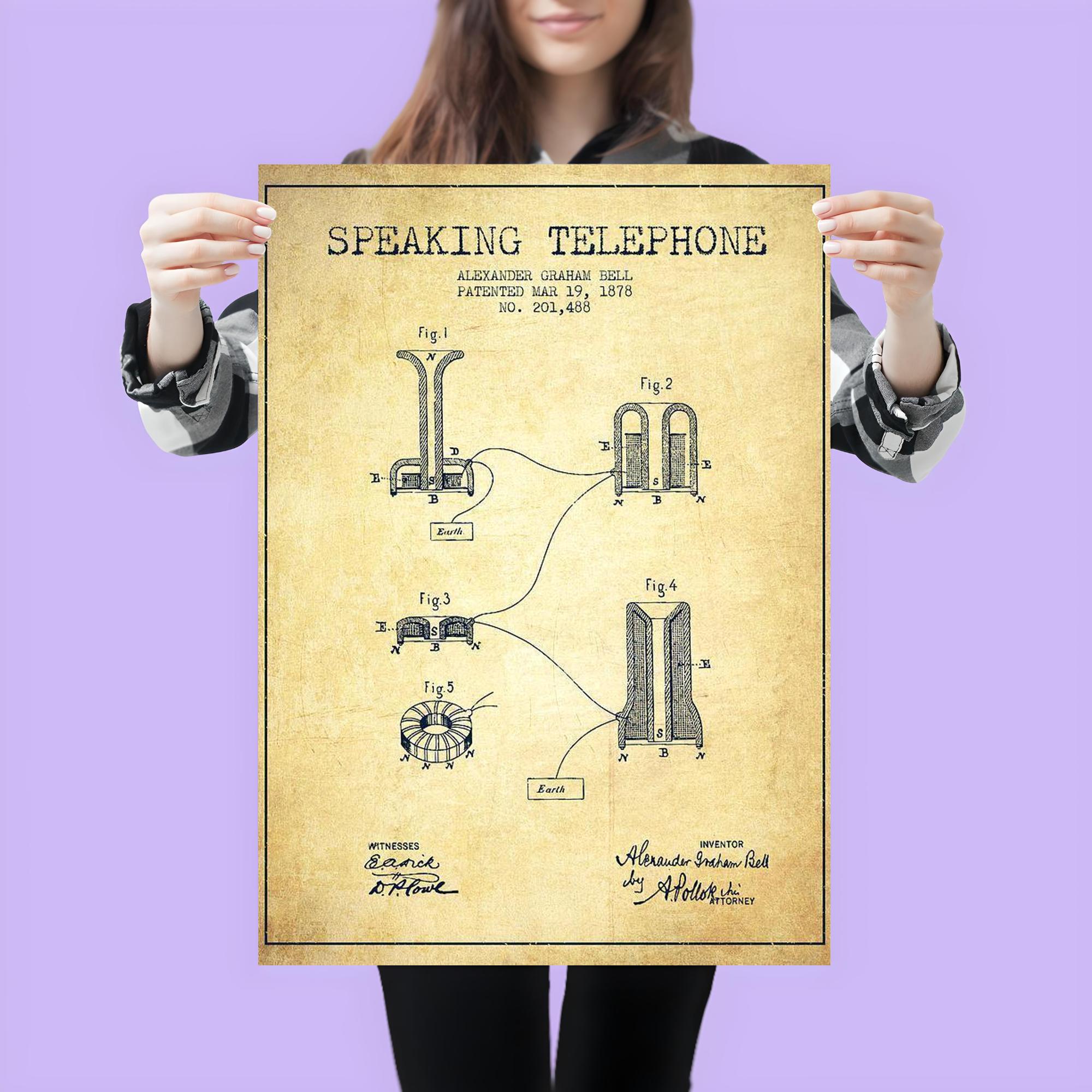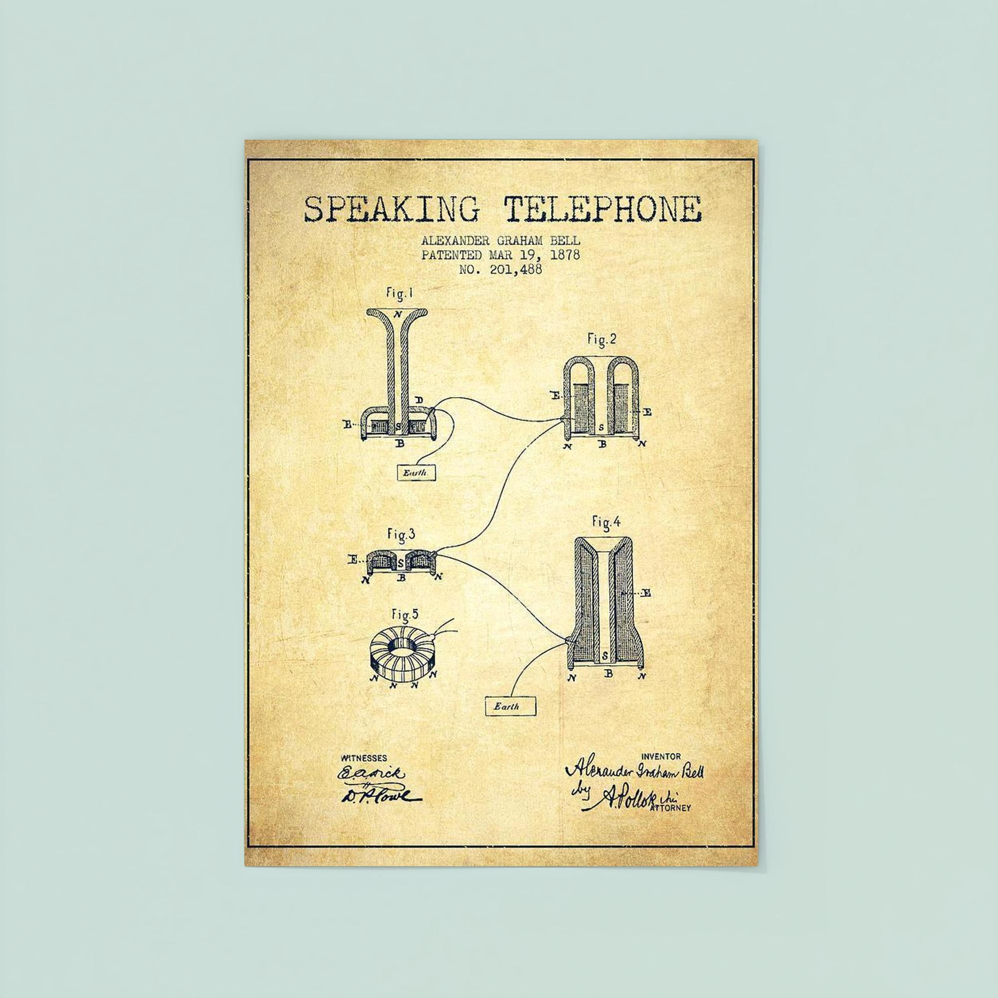 Alexander Graham Bell Telephone Patent Poster Print – Vintage Wall Art Blueprint of 1876 Innovation for Home & Office Decor