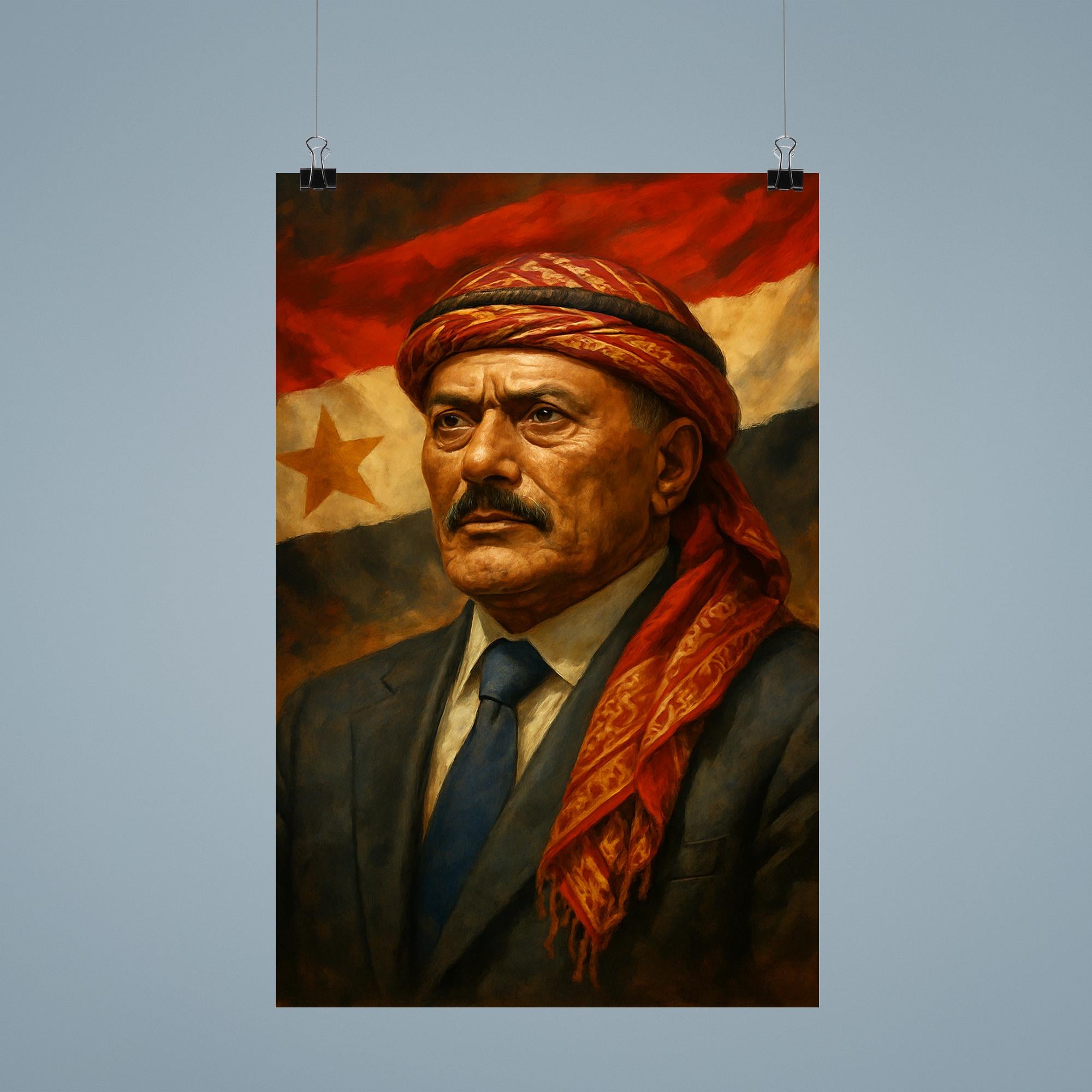 Celebrate the legacy of Ali Abdallah Salih with this striking poster, a perfect tribute to a pivotal figure. Expertly crafted to inspire and honor, it’s a meaningful addition to any space seeking to reflect history and influence. Elevate your surroundings with a powerful symbol of leadership and enduring impact.