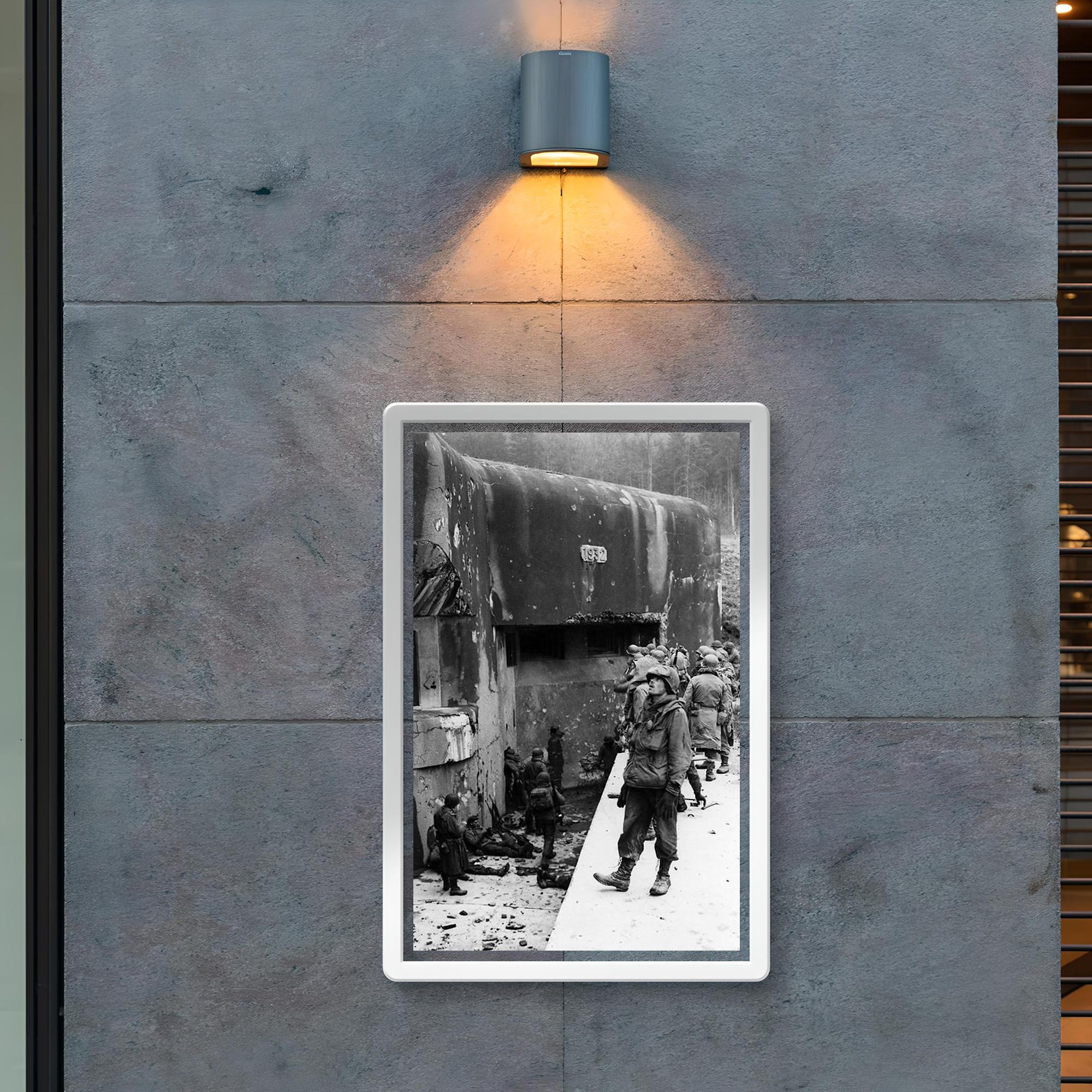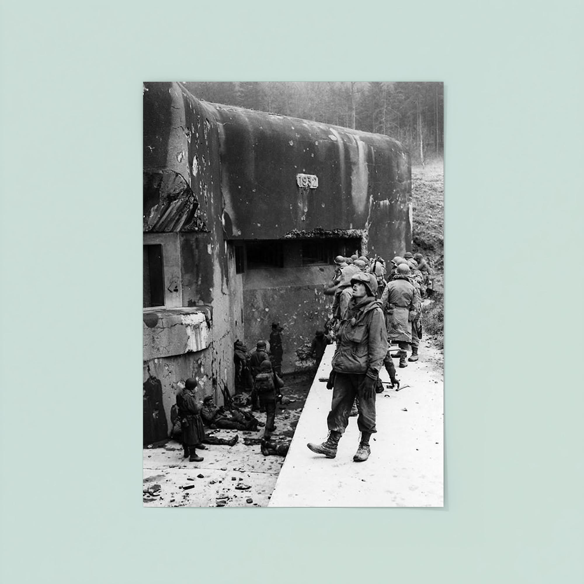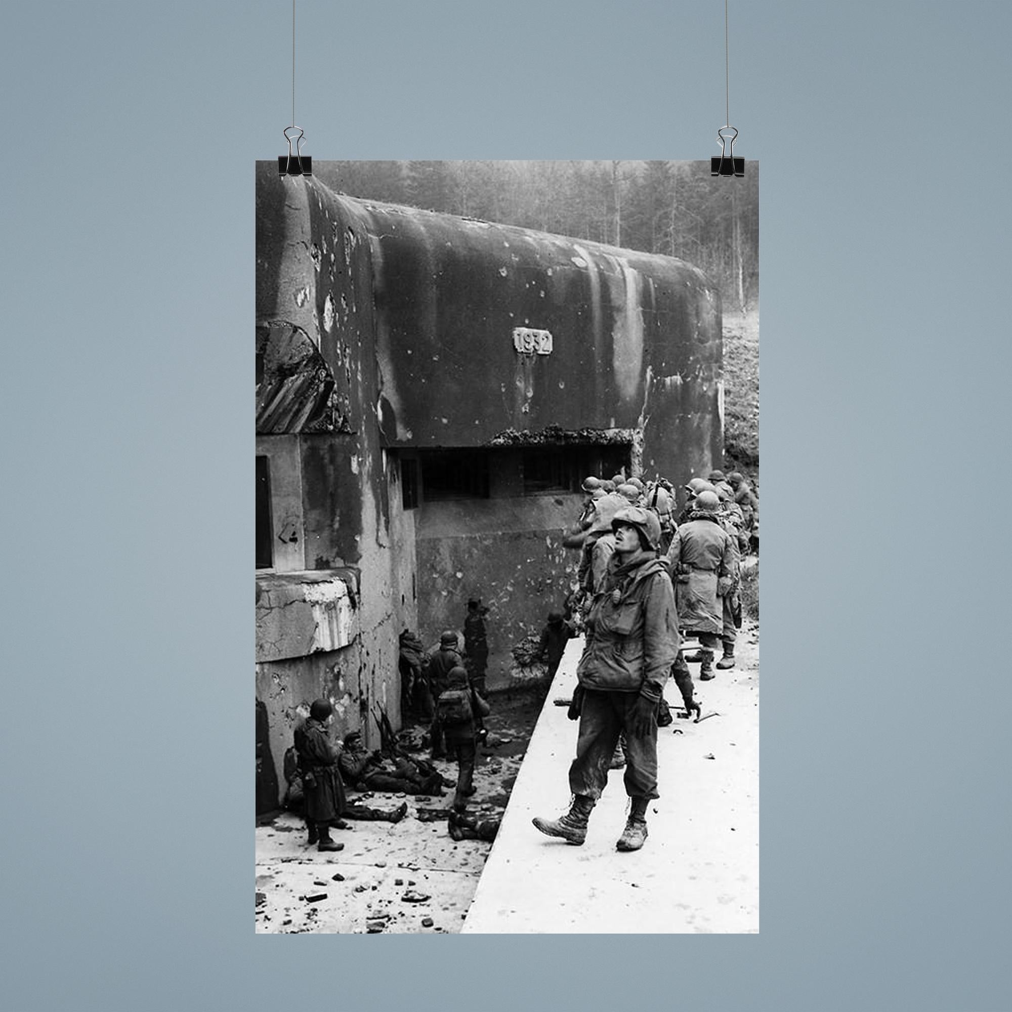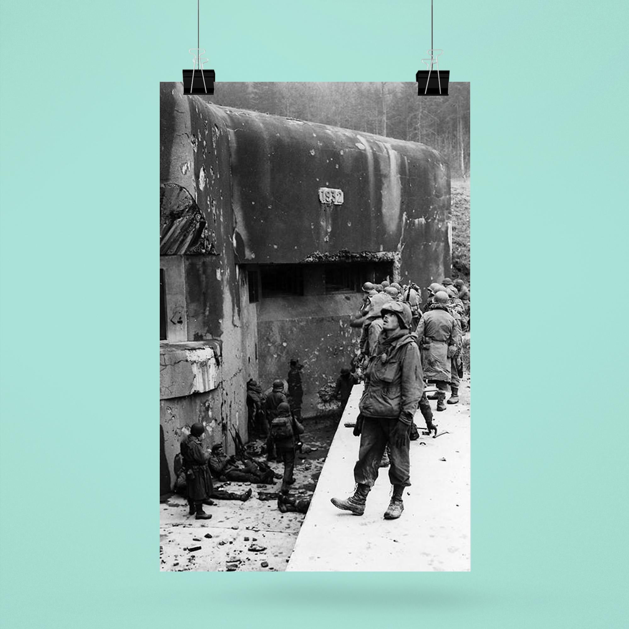 Capture a powerful slice of history with this striking poster depicting American soldiers inspecting the Maginot Line in early 1945. This image offers a rare glimpse into a pivotal moment as Allied forces advanced through Europe, blending military resolve with historic significance. Perfect for history enthusiasts and collectors, it brings the intensity and gravity of World War II right to your wall.