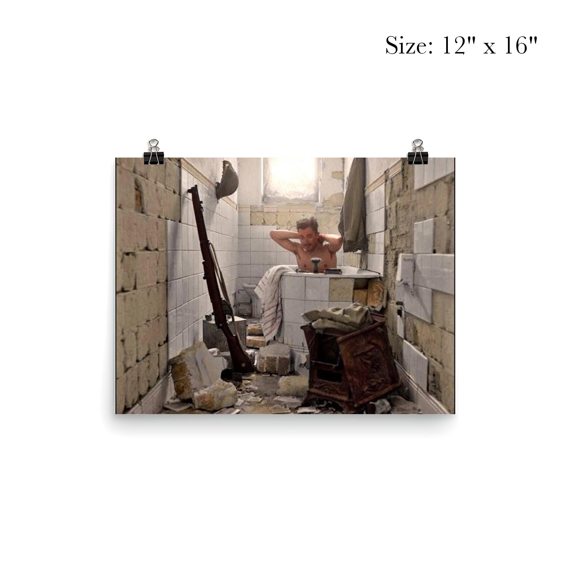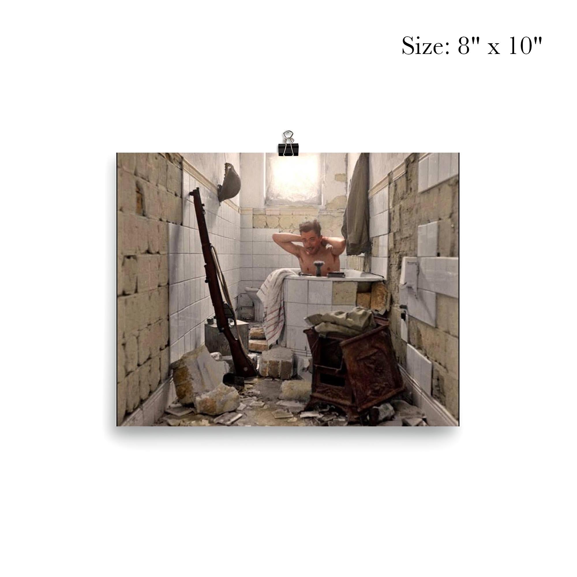 Capture a powerful moment of resilience with this striking poster depicting an Allied soldier bathing amidst the harsh realities of Tobruk, Libya, on 17 February 1942. Evoking the human side of wartime endurance, this image serves as a timeless tribute to courage and perseverance in the face of adversity. Perfect for history enthusiasts and collectors alike, it brings a profound story of strength and survival into your space.
