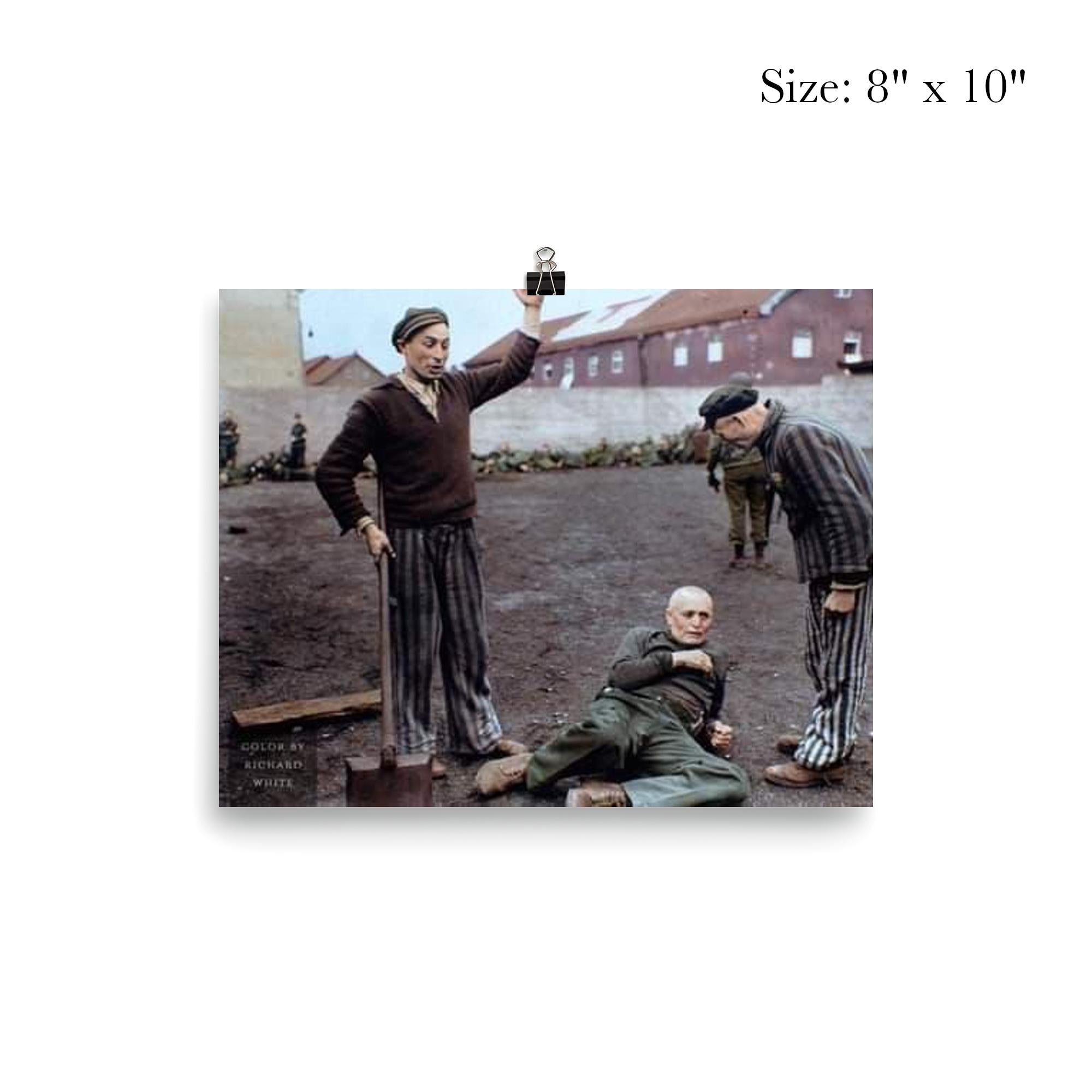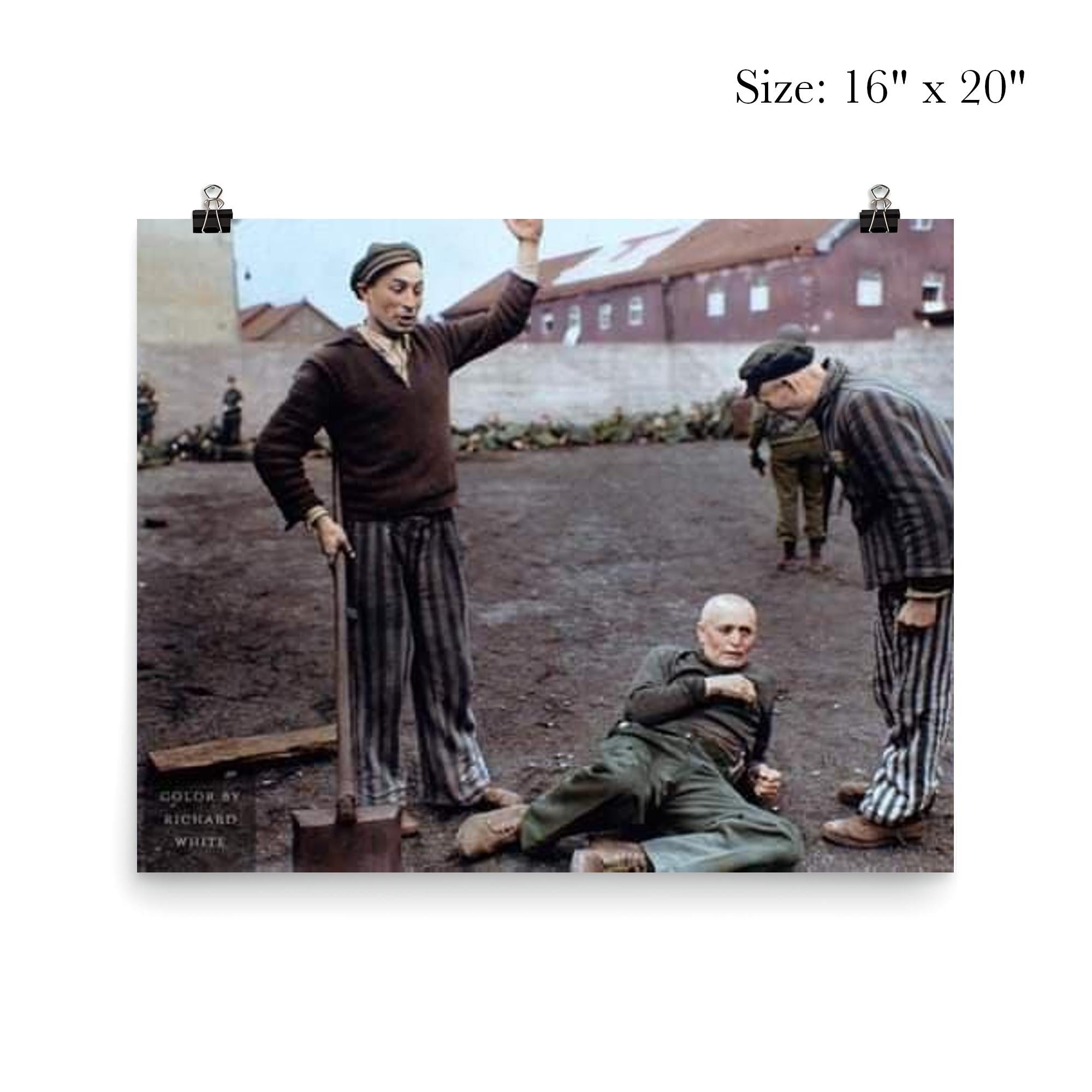 Capture a powerful moment in history with this striking poster featuring "An American Soldier Observing Dachau Prisoners Preparing to Execute an SS Guard, April 29, 1945." The image offers a raw and unfiltered glimpse into the intense and harrowing final days of World War II, inviting reflection on courage, justice, and the complex human emotions amid conflict. Perfect for history enthusiasts and collectors, this poster serves as a poignant reminder of a pivotal moment that shaped the course of freedom.