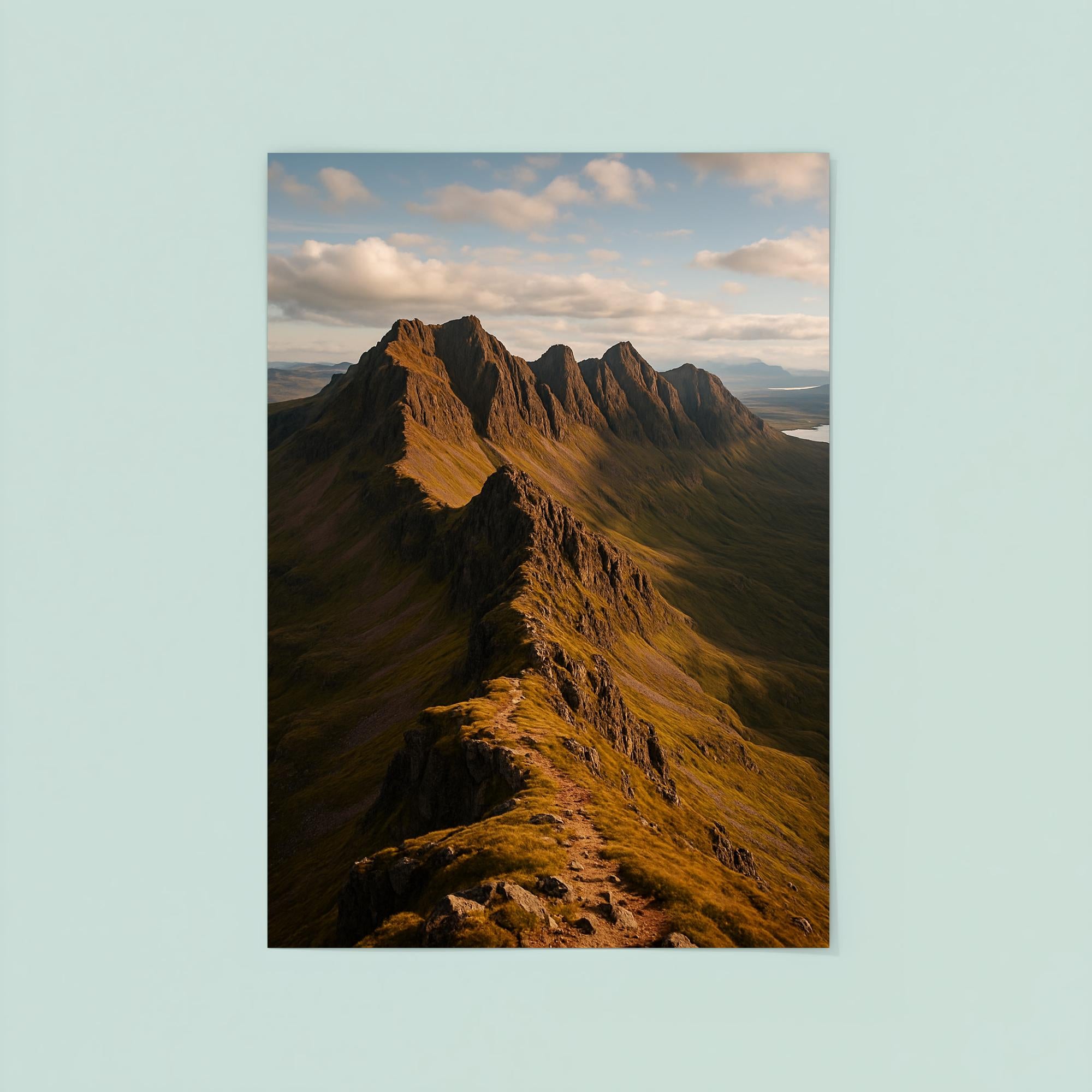 Transform your space with this stunning poster of An Teallach Ridge, one of Scotland’s most breathtaking mountain landscapes. Capturing the rugged beauty and dramatic contours of this iconic peak, the artwork brings a sense of adventure and tranquility to any room. Perfect for nature lovers and outdoor enthusiasts, it’s a timeless tribute to the wild spirit of the Scottish Highlands.