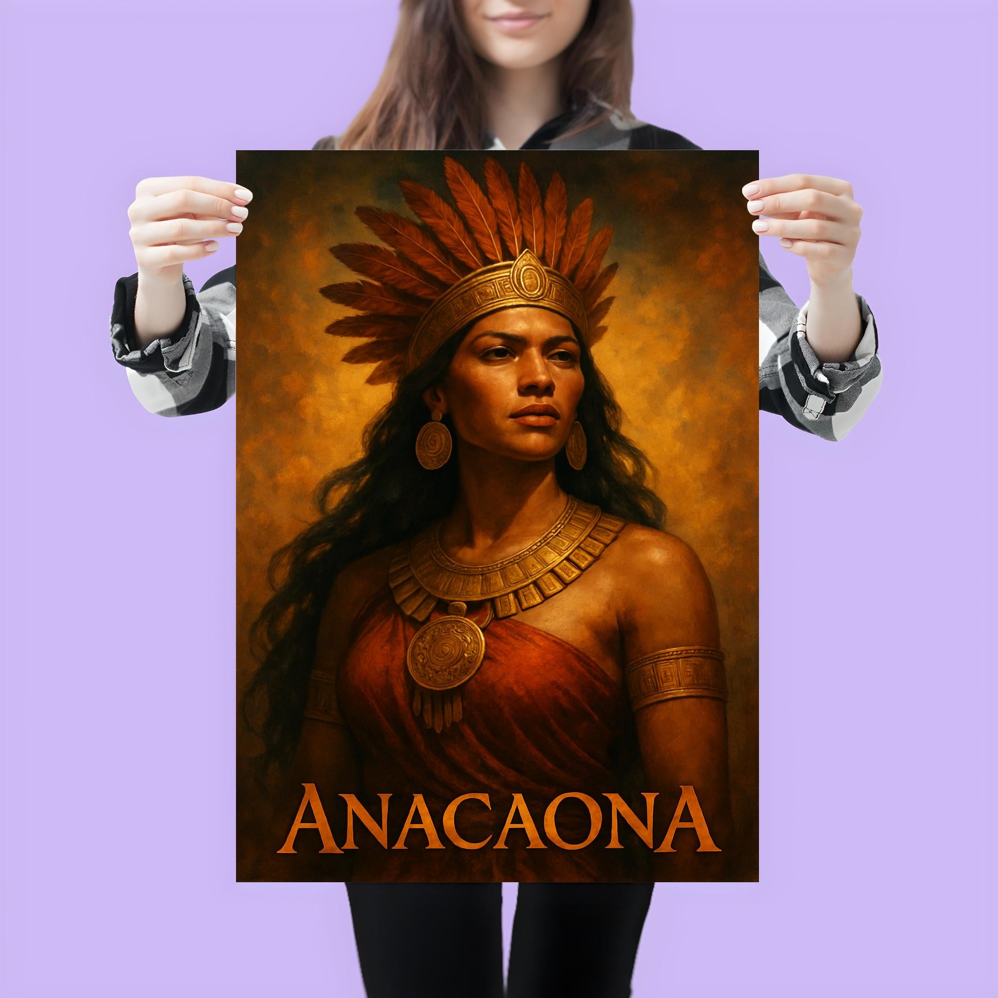 Celebrate the inspiring legacy of Anacaona with this striking poster that honors her strength and spirit. Perfect for adding a touch of cultural pride and historical depth to any space, this artwork invites you to reflect on her remarkable story and enduring influence. Bring home a powerful symbol of resilience and leadership that resonates across time.