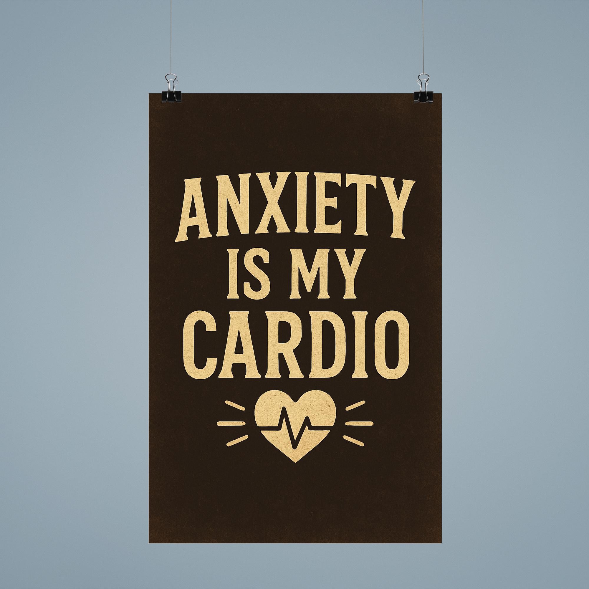 Turn your daily struggles into a badge of honor with the “Anxiety is my Cardio” poster. This witty declaration adds a touch of humor to your space, letting you embrace your feelings and showcase your resilience. Perfect for anyone who copes with anxiety and isn’t afraid to keep it real, this poster brings a little lightness to life’s everyday hurdles.