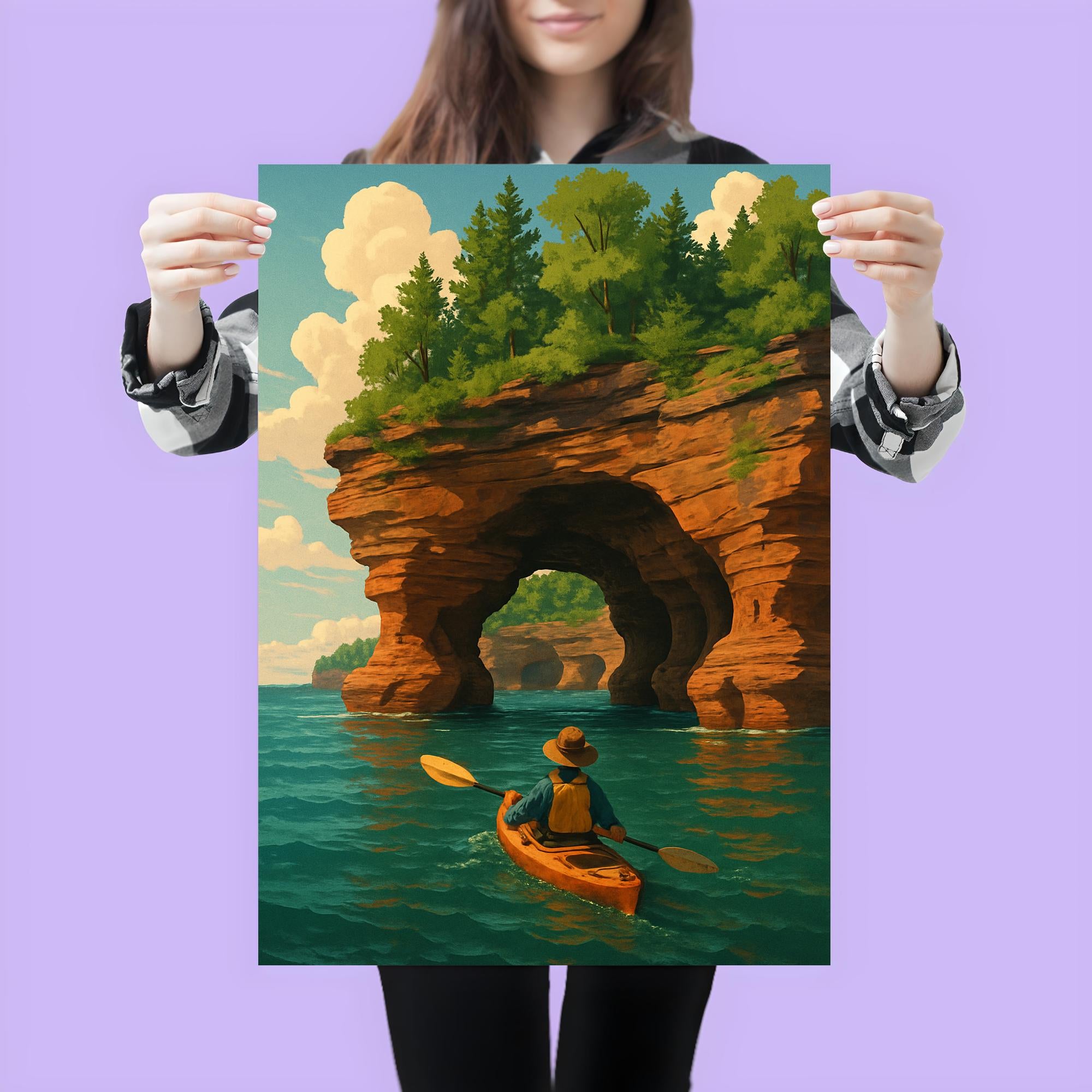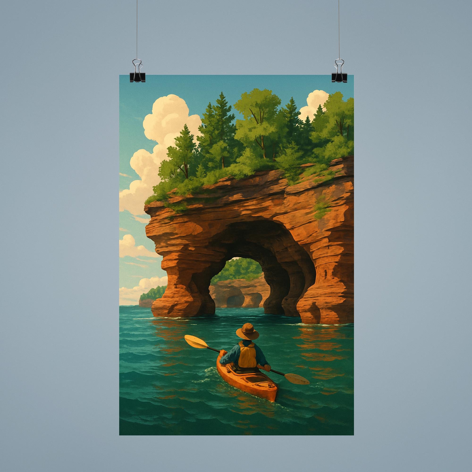 Apostle Islands Sea Caves Poster Print – Wisconsin Wall Art, Scenic Lake Superior Nature Photography, Unique Coastal Home Decor