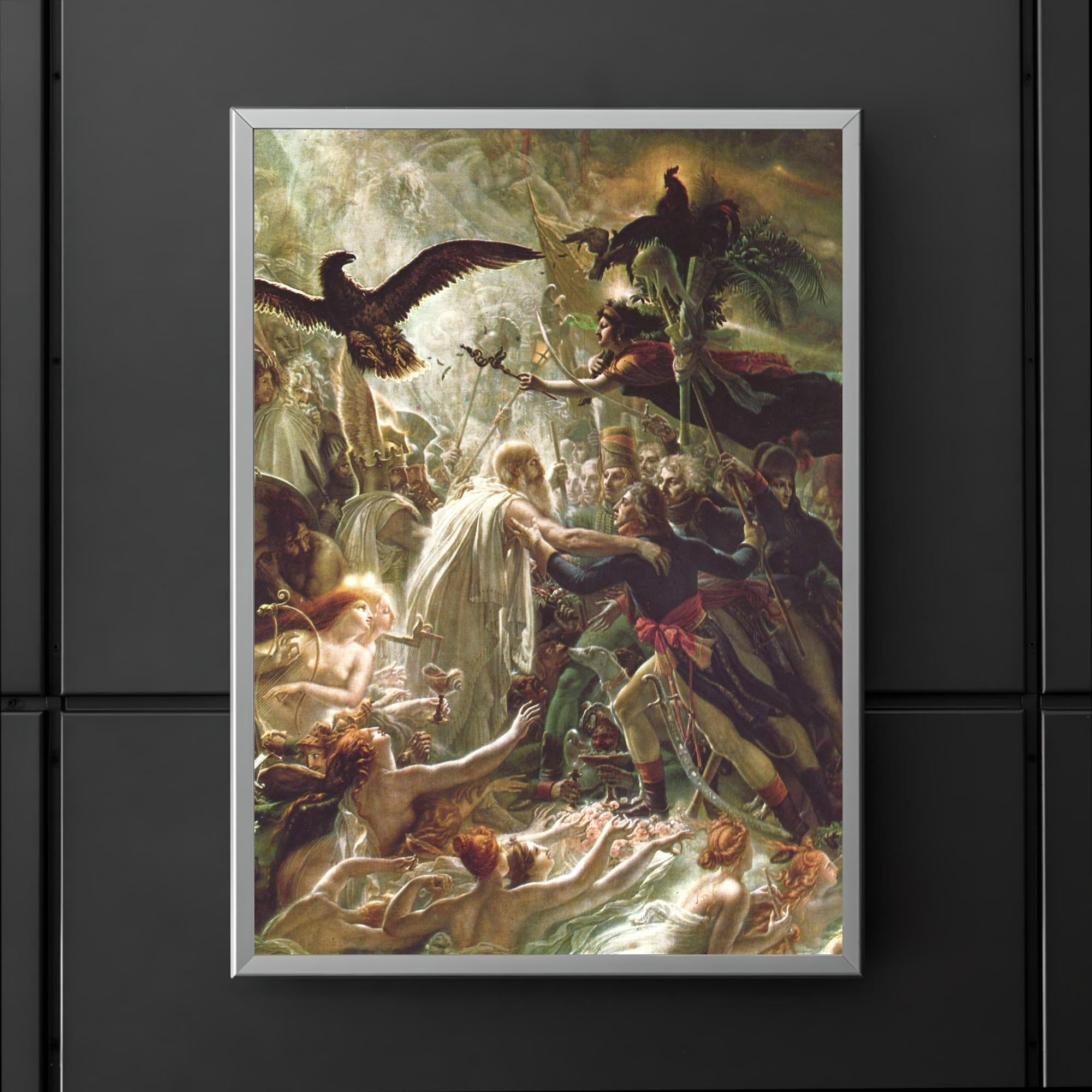 Elevate your space with the timeless grandeur of Anne-Louis Girodet de Roussy-Trioson's 1801 masterpiece, *Apotheosis of the French Heroes*. This striking poster captures the heroic spirit and neoclassical elegance of a pivotal moment in history, bringing a powerful blend of art and legacy to your walls. Perfect for lovers of classic art and history, it’s a stunning tribute that inspires courage and admiration every day.