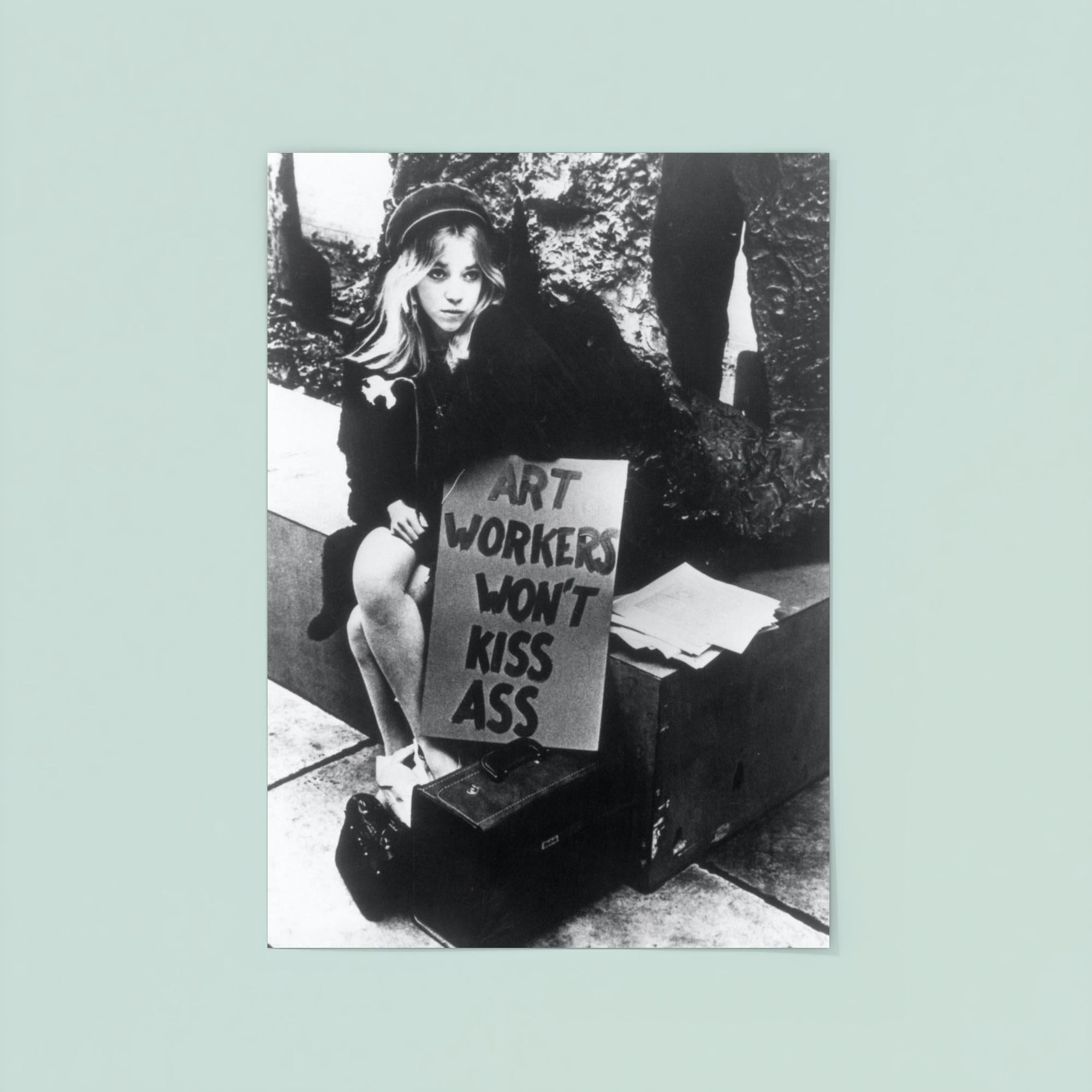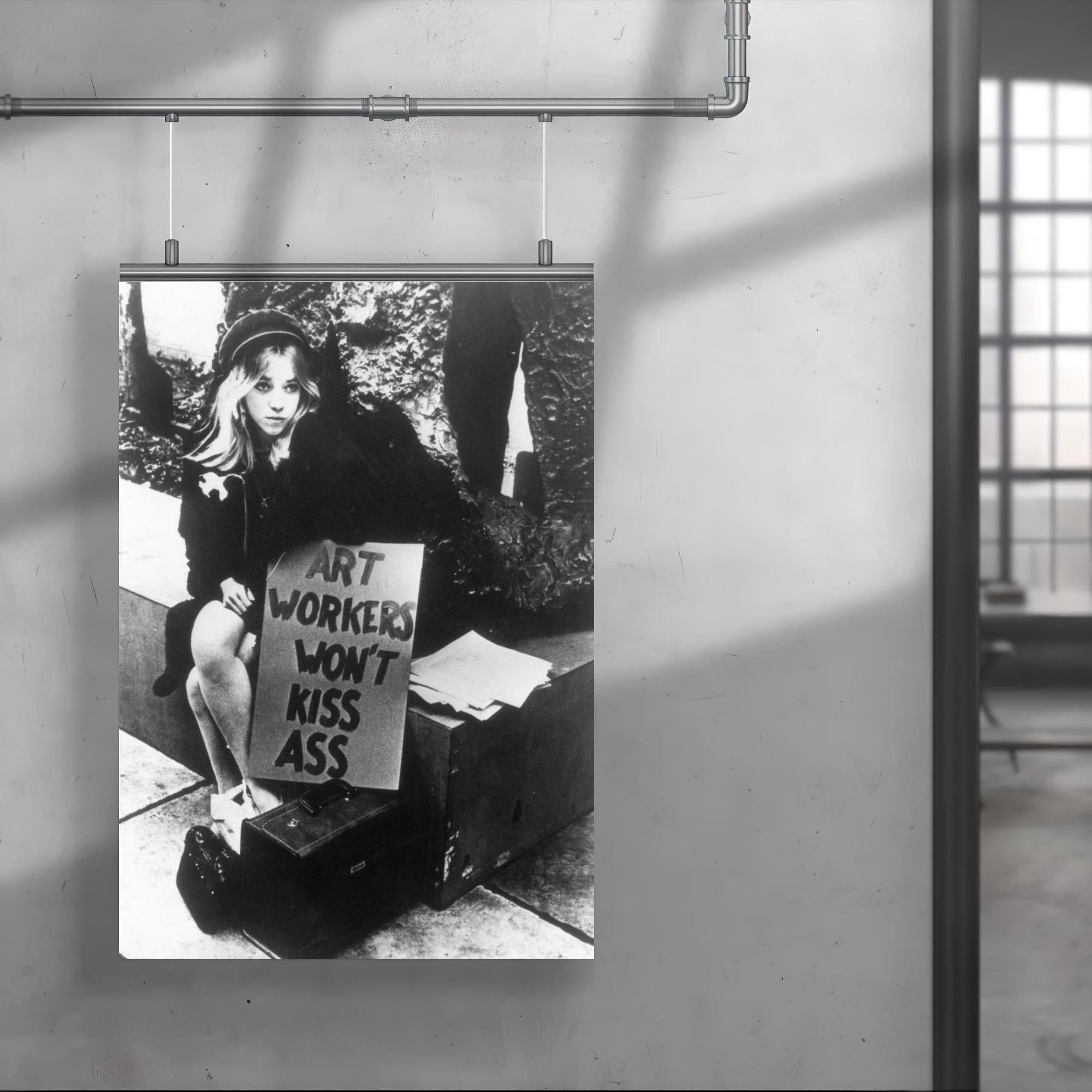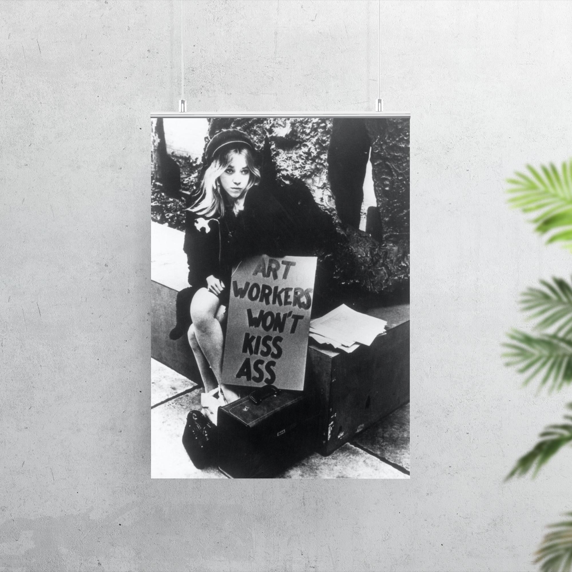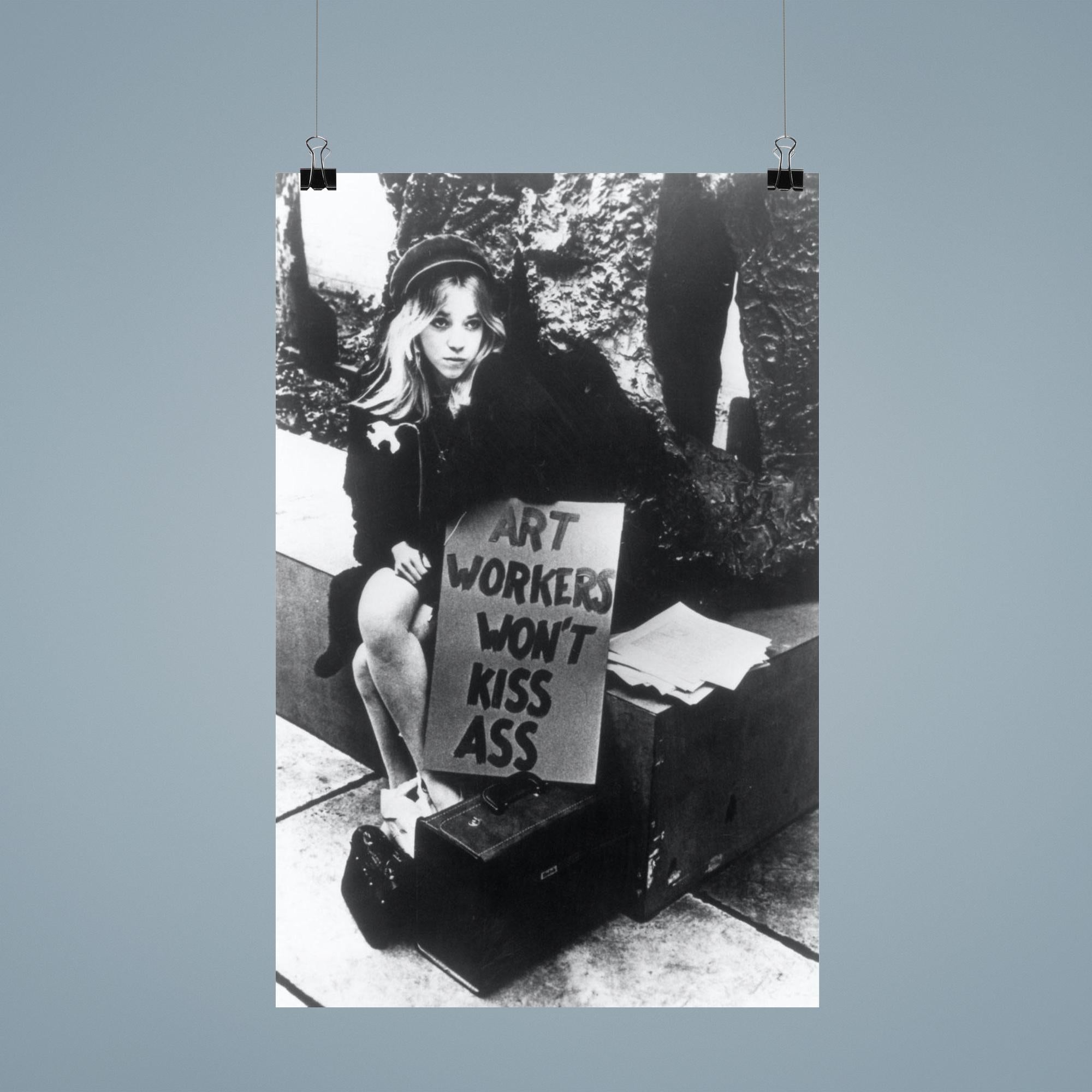 Make a bold statement with the "Art Workers Won't Kiss Ass" poster from the Art Workers Coalition. This powerful piece champions artistic integrity and unapologetic advocacy, perfect for anyone who stands firm in their creative values. Display it proudly as a rallying cry for independence and fearless expression in the art world.