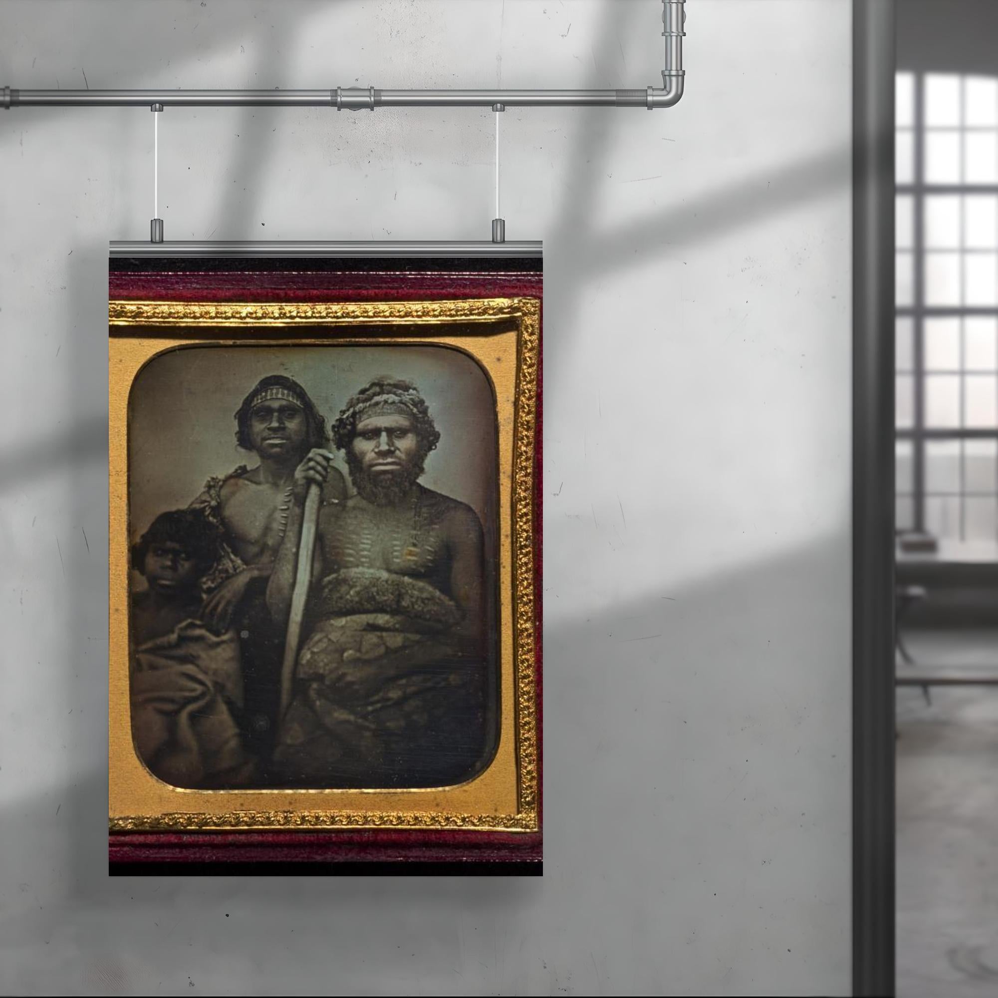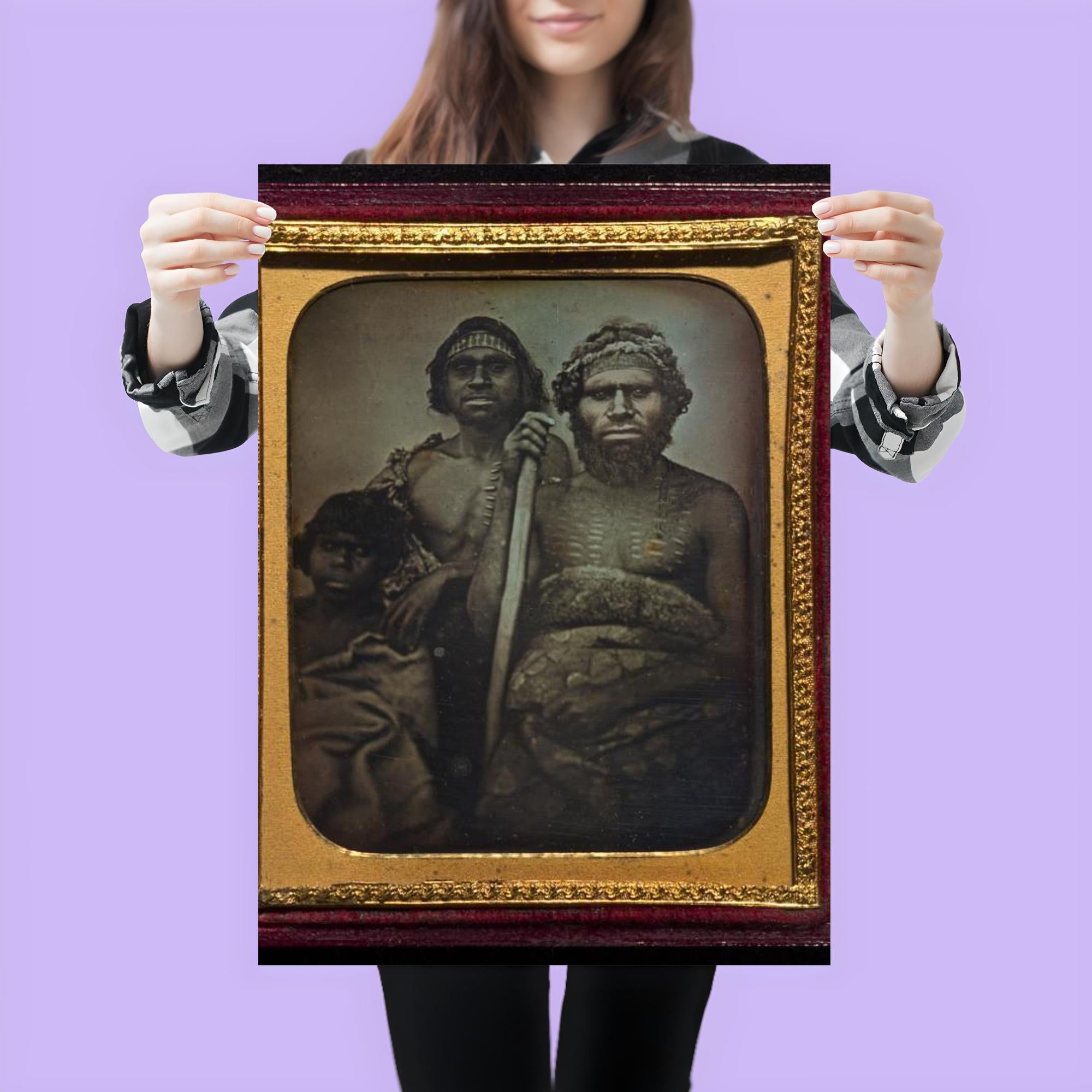 Step back in time with this striking 1847 poster by Douglas T. Kilburn, featuring the proud and dignified Australian Koori men. This rare historical piece offers a powerful glimpse into Australia's rich Indigenous heritage, capturing a moment of cultural significance through Kilburn's pioneering lens. Perfect for history enthusiasts and art lovers alike, it is a timeless tribute to resilience and identity.
