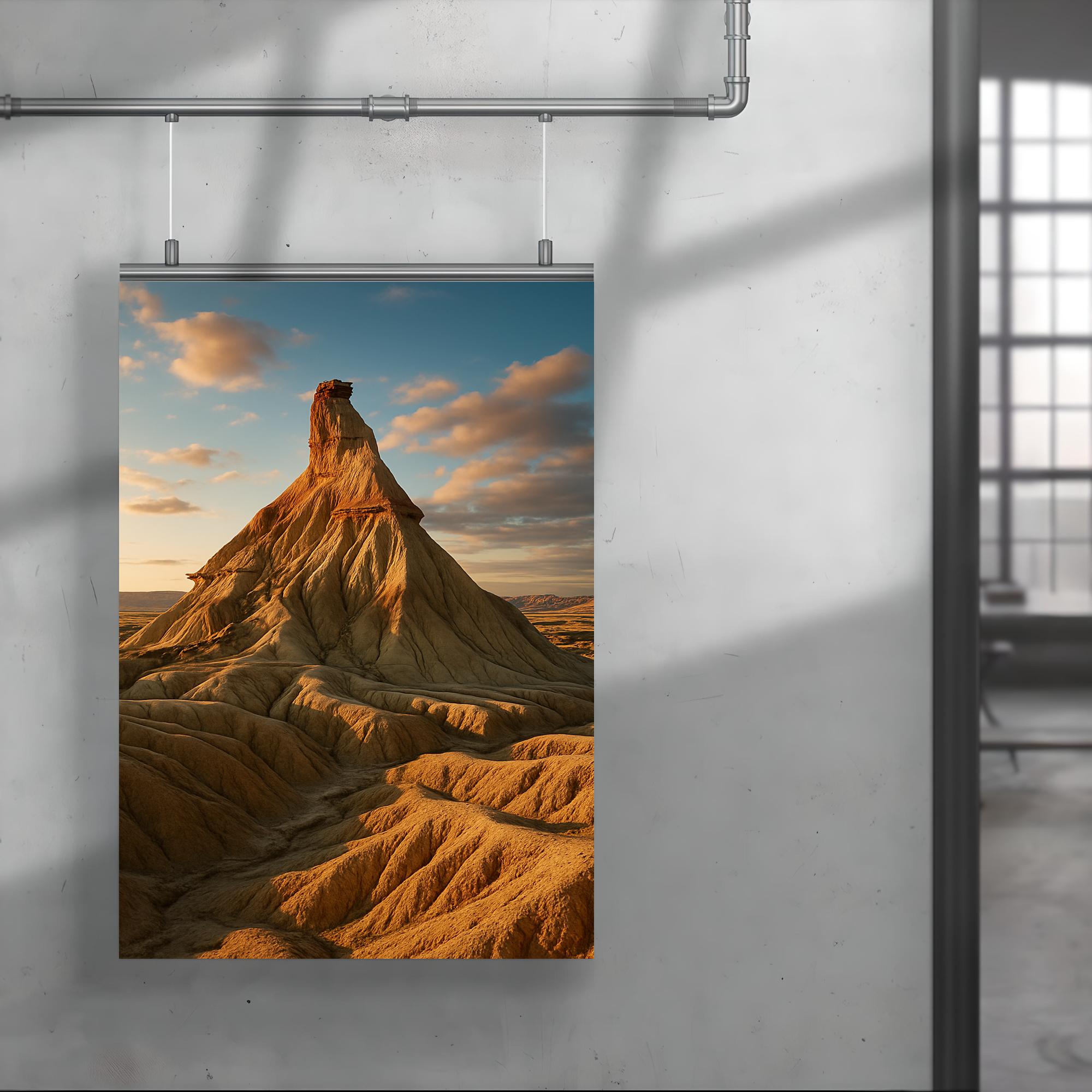 Transform your space with the awe-inspiring beauty of the Bardenas Reales Badlands, Spain. This stunning poster captures the raw, sculpted landscape’s unique blend of rugged earth tones and expansive horizons, bringing a sense of adventure and natural wonder to any room. Perfect for lovers of extraordinary landscapes and minimalist decor alike.