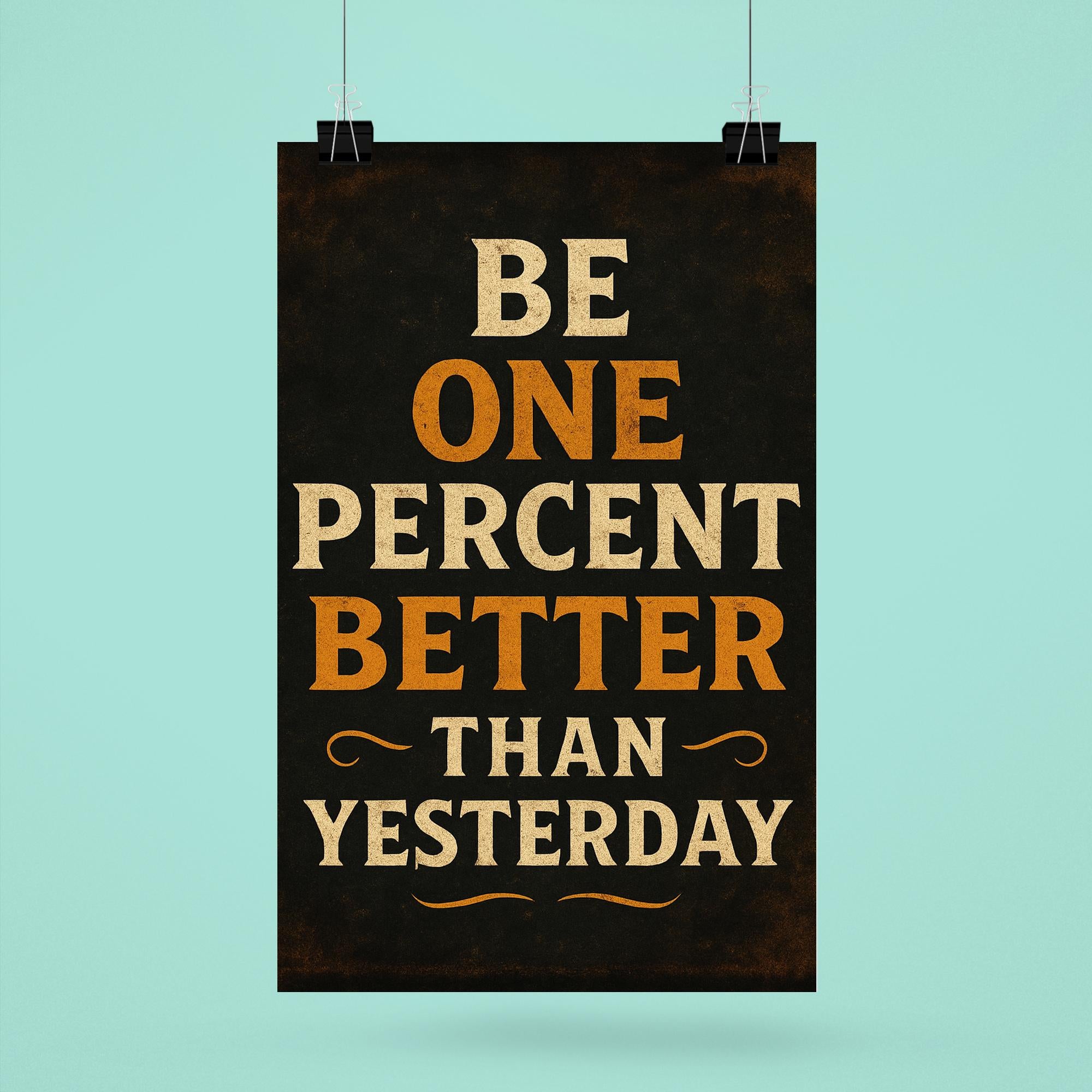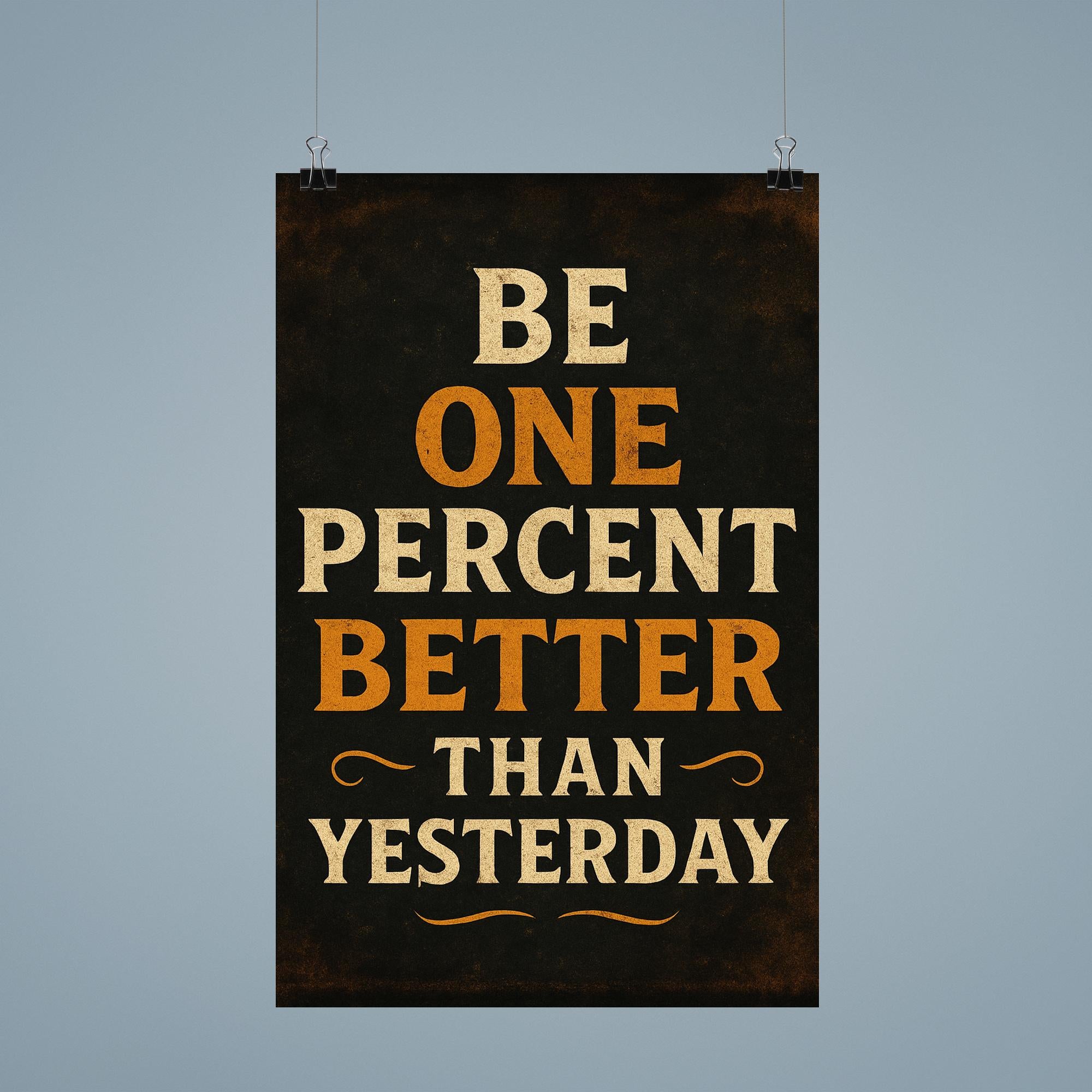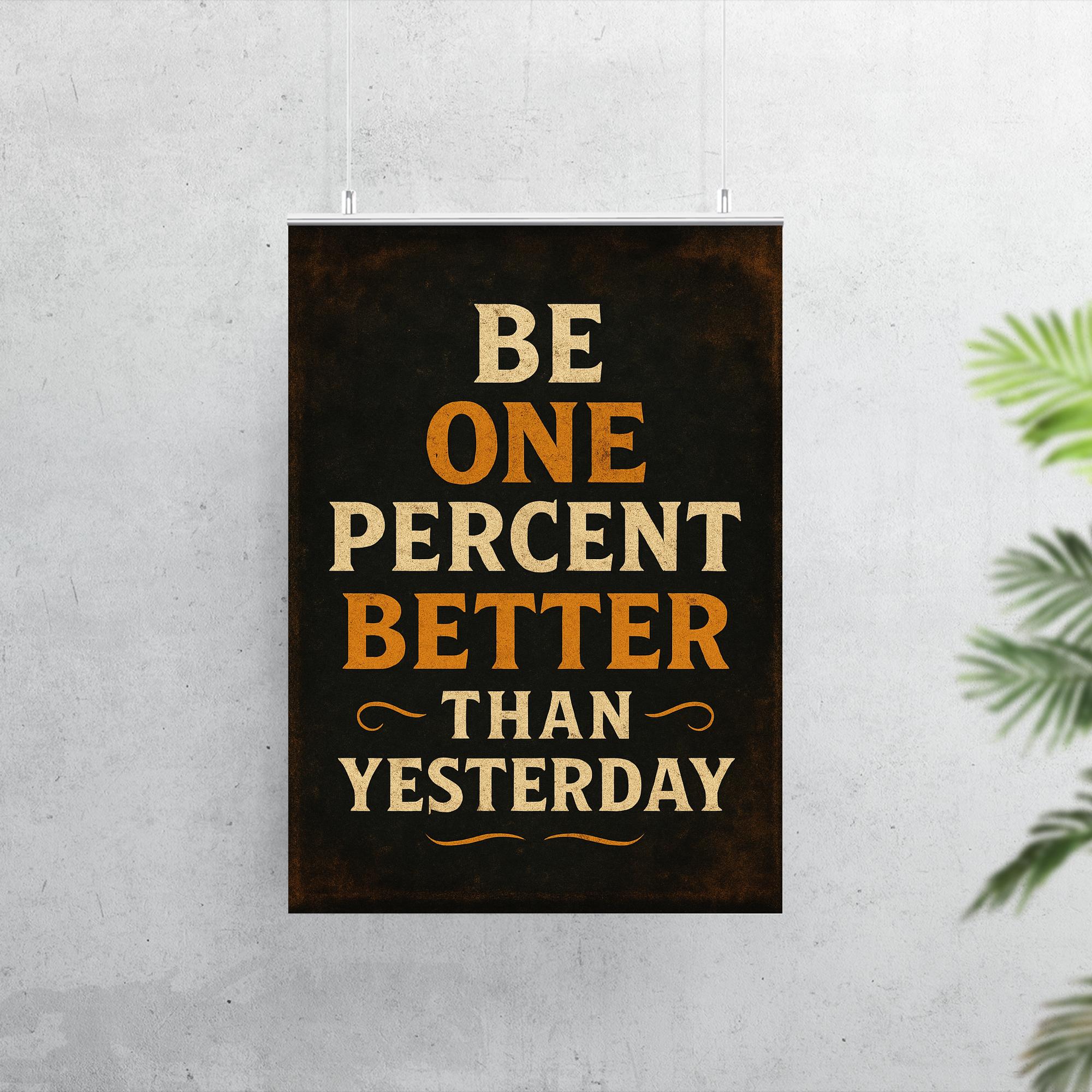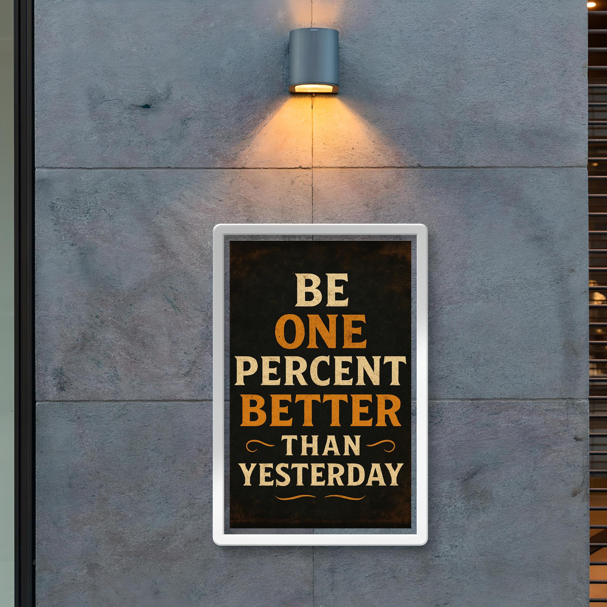 Elevate your daily motivation with this inspiring “Be One Percent Better Than Yesterday” poster. Perfect for your workspace or home, it serves as a constant reminder that small, consistent improvements lead to extraordinary results. Let this simple yet powerful message fuel your journey toward growth and success every single day.