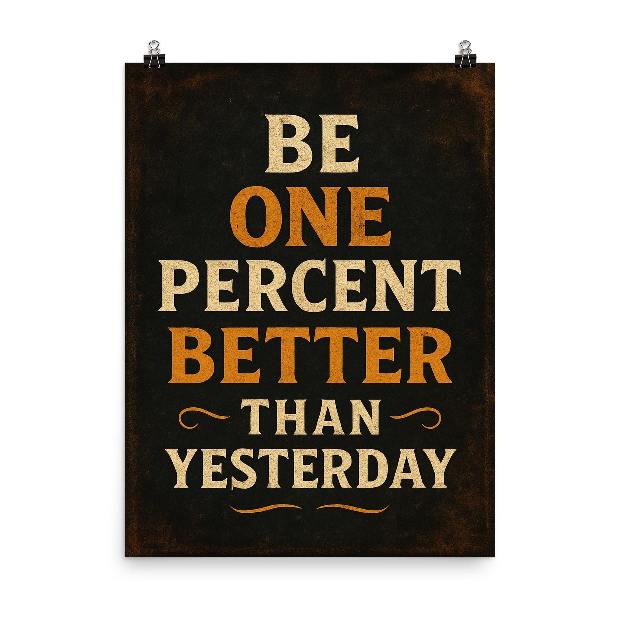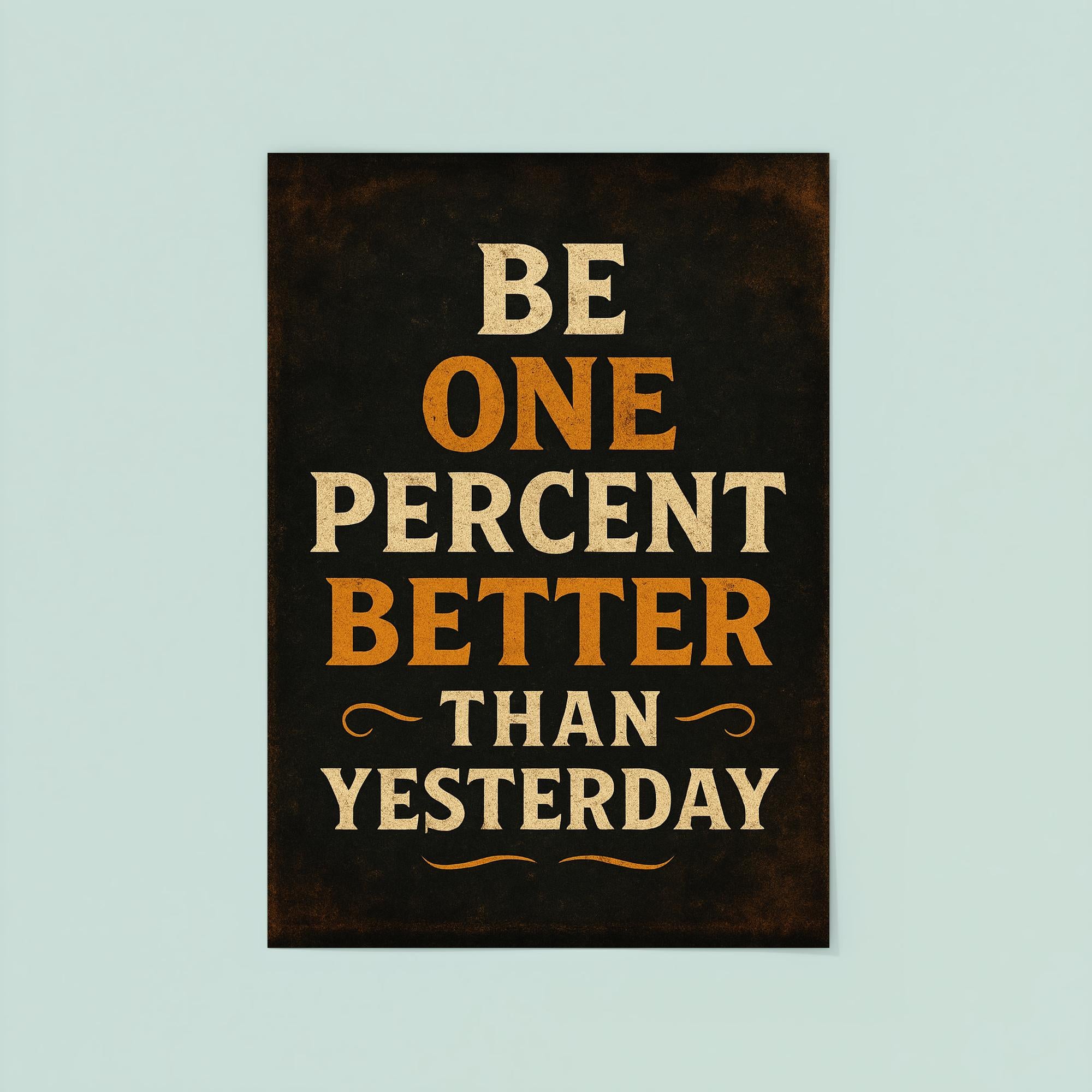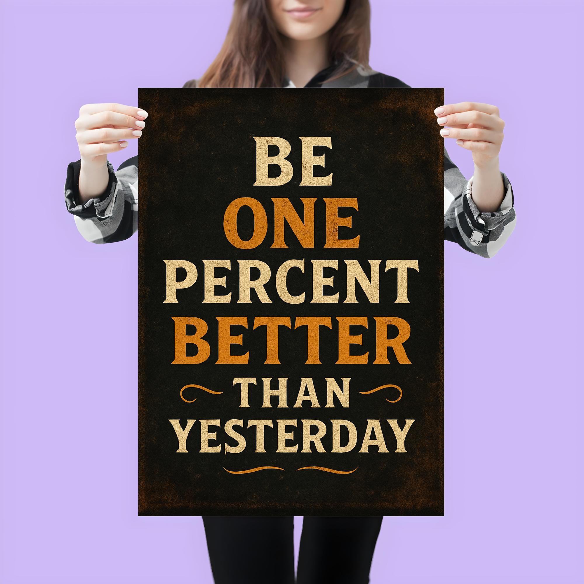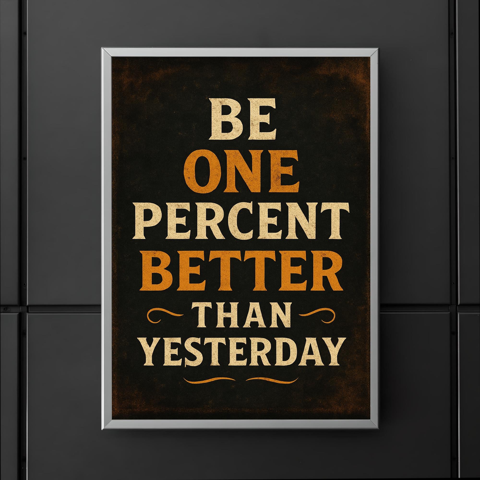 Elevate your daily motivation with this inspiring “Be One Percent Better Than Yesterday” poster. Perfect for your workspace or home, it serves as a constant reminder that small, consistent improvements lead to extraordinary results. Let this simple yet powerful message fuel your journey toward growth and success every single day.
