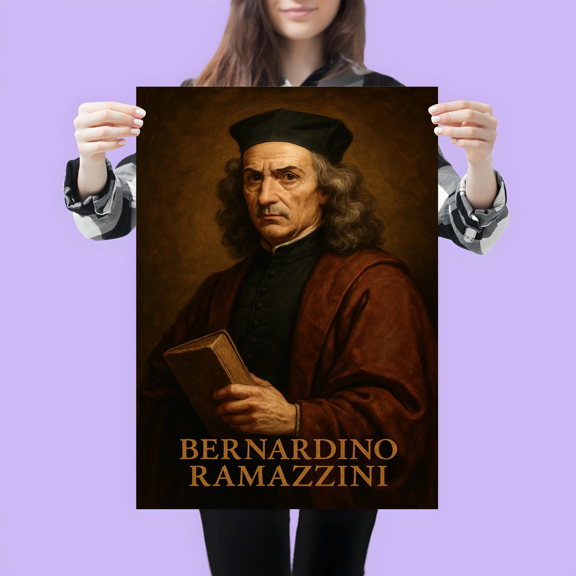Celebrate the legacy of Bernardino Ramazzini, the father of occupational medicine, with this striking poster. Perfect for inspiring students, healthcare professionals, or history enthusiasts, it honors Ramazzini’s groundbreaking contributions to understanding workplace health. A timeless tribute that brings the spirit of scientific discovery and compassion into any space.