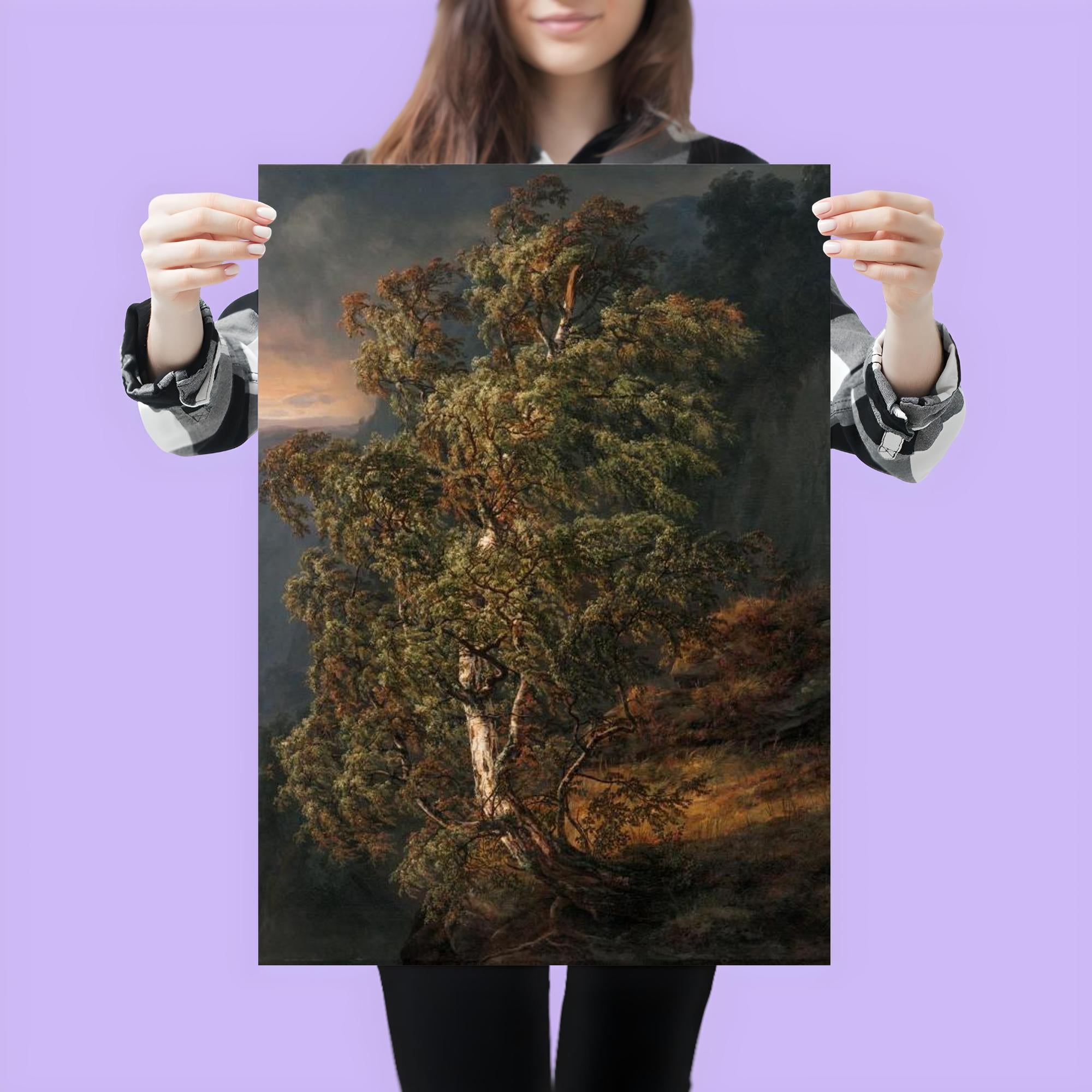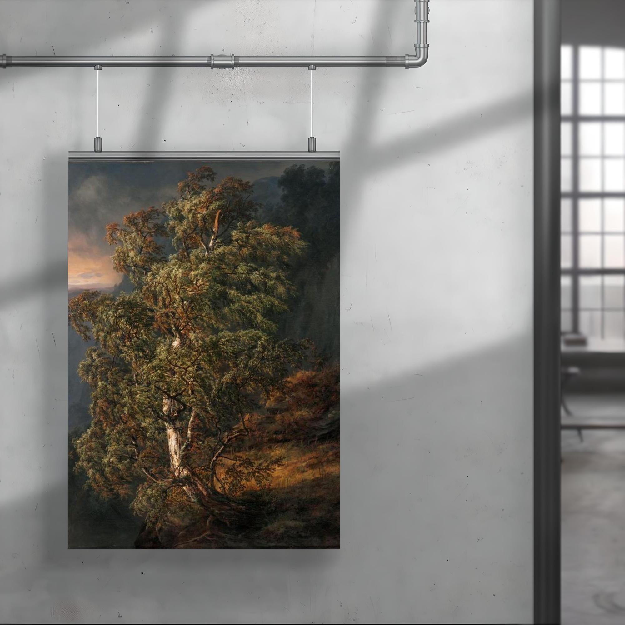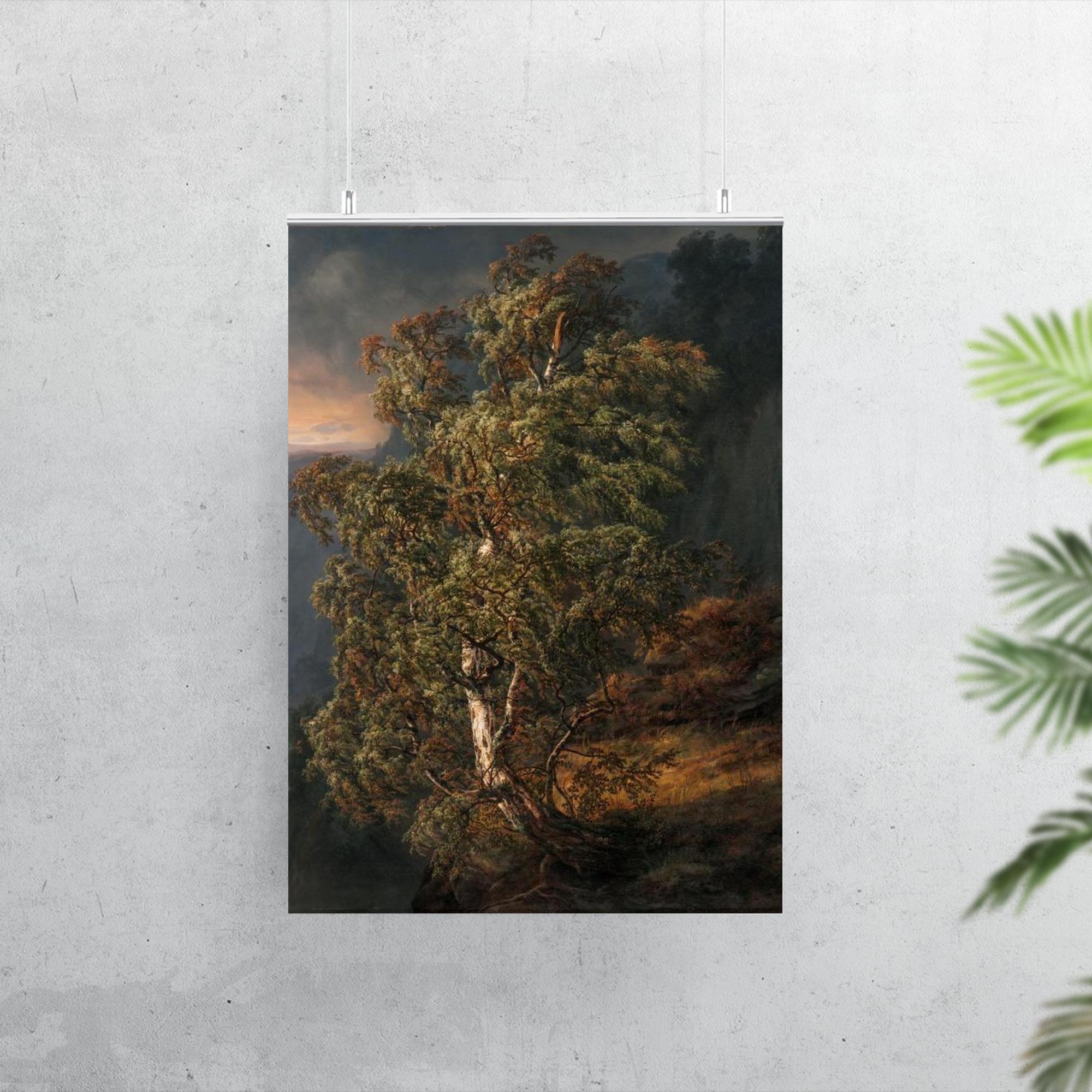 Birch Tree in a Storm Poster Print by Johan C.C. Dahl 1849 – Dramatic Vintage Wall Art for Nature & Landscape Decor