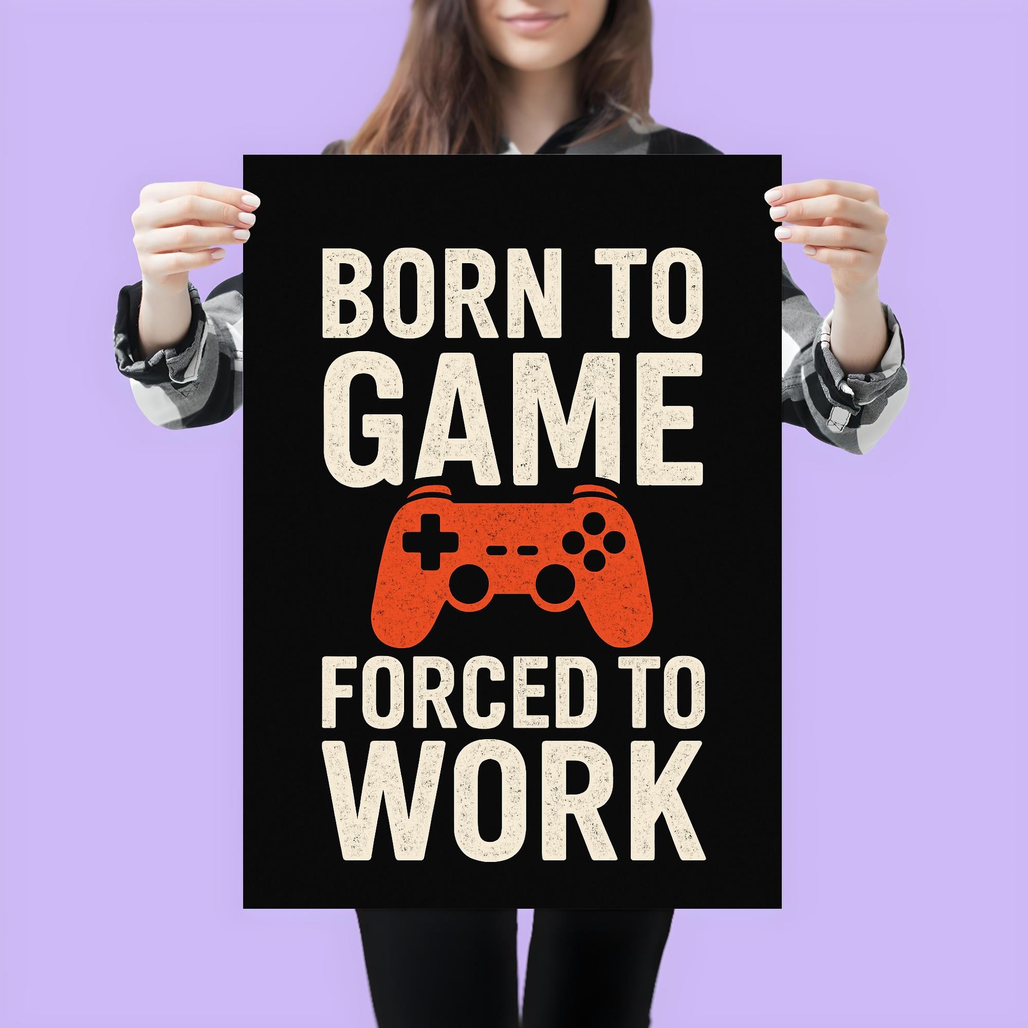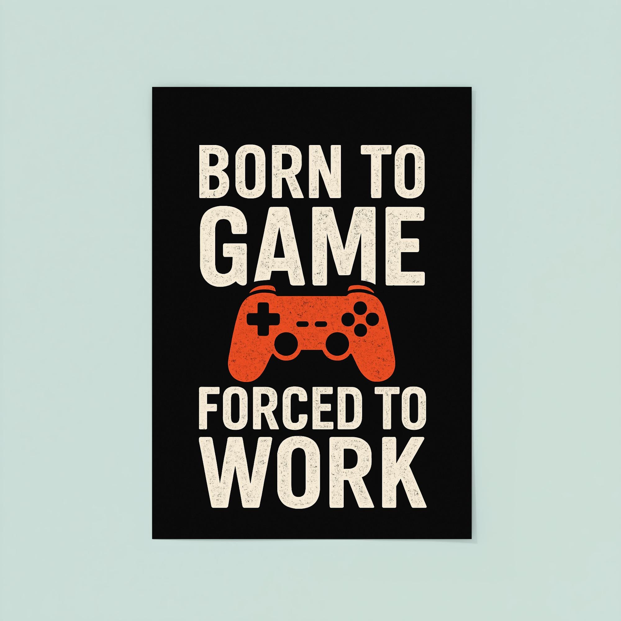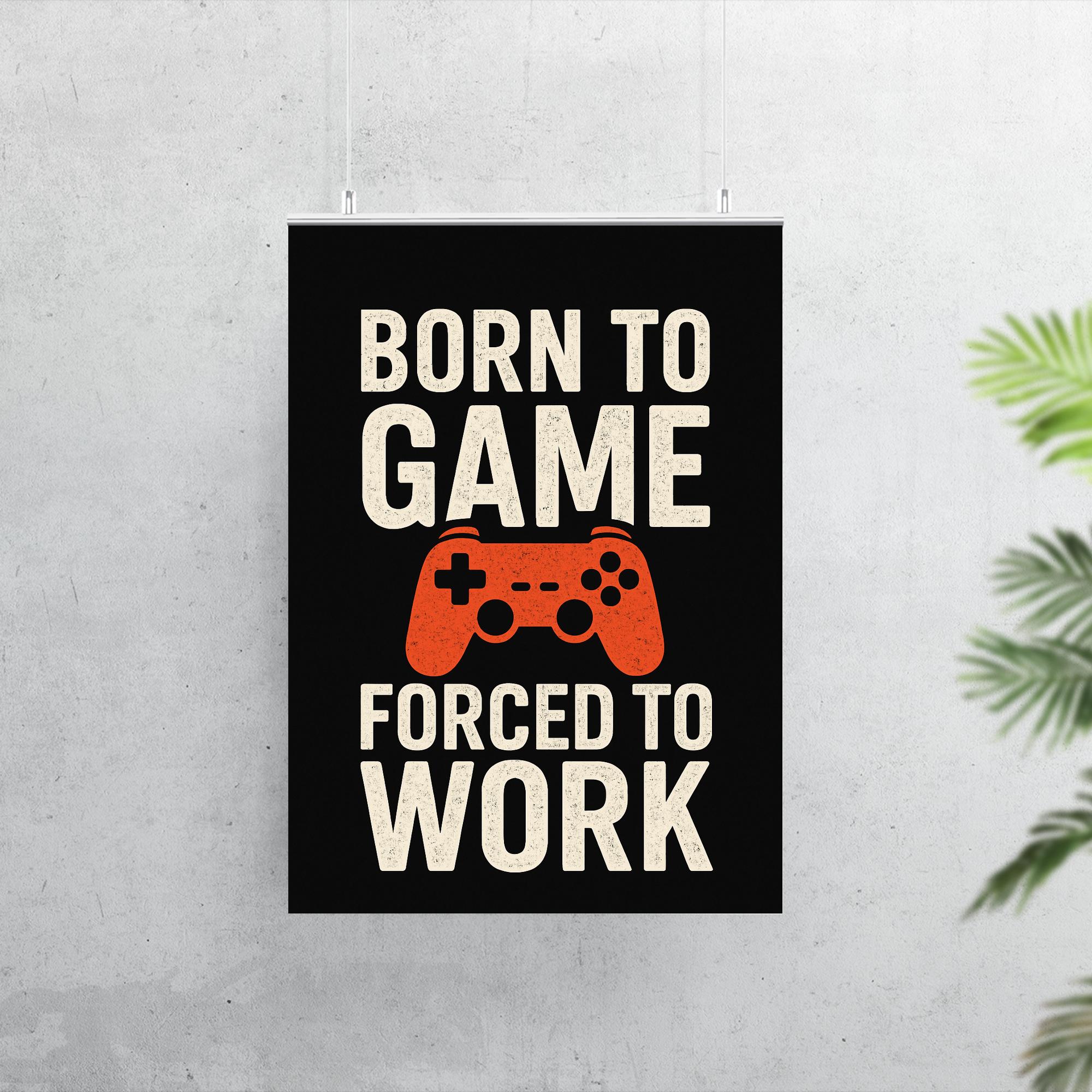 Unleash your true self with the “Born to Game, Forced to Work” poster—a must-have statement piece for every gamer at heart. Whether it's your home office or gaming den, this bold poster is the perfect reminder that your passion comes first, even on workdays. Elevate your space and give a knowing nod to everyone who understands the real grind.