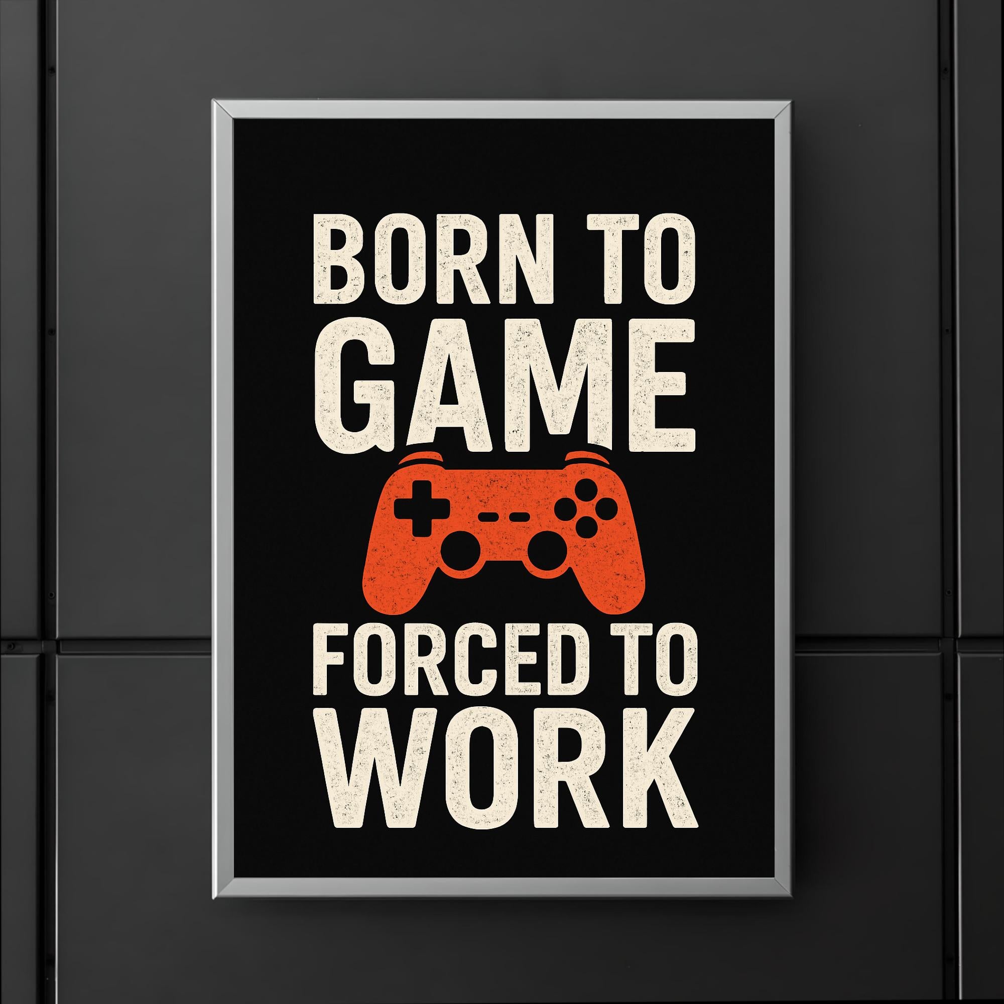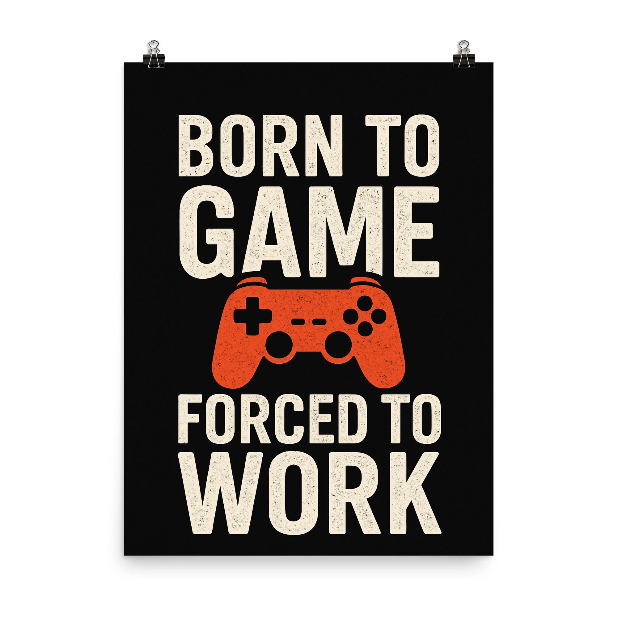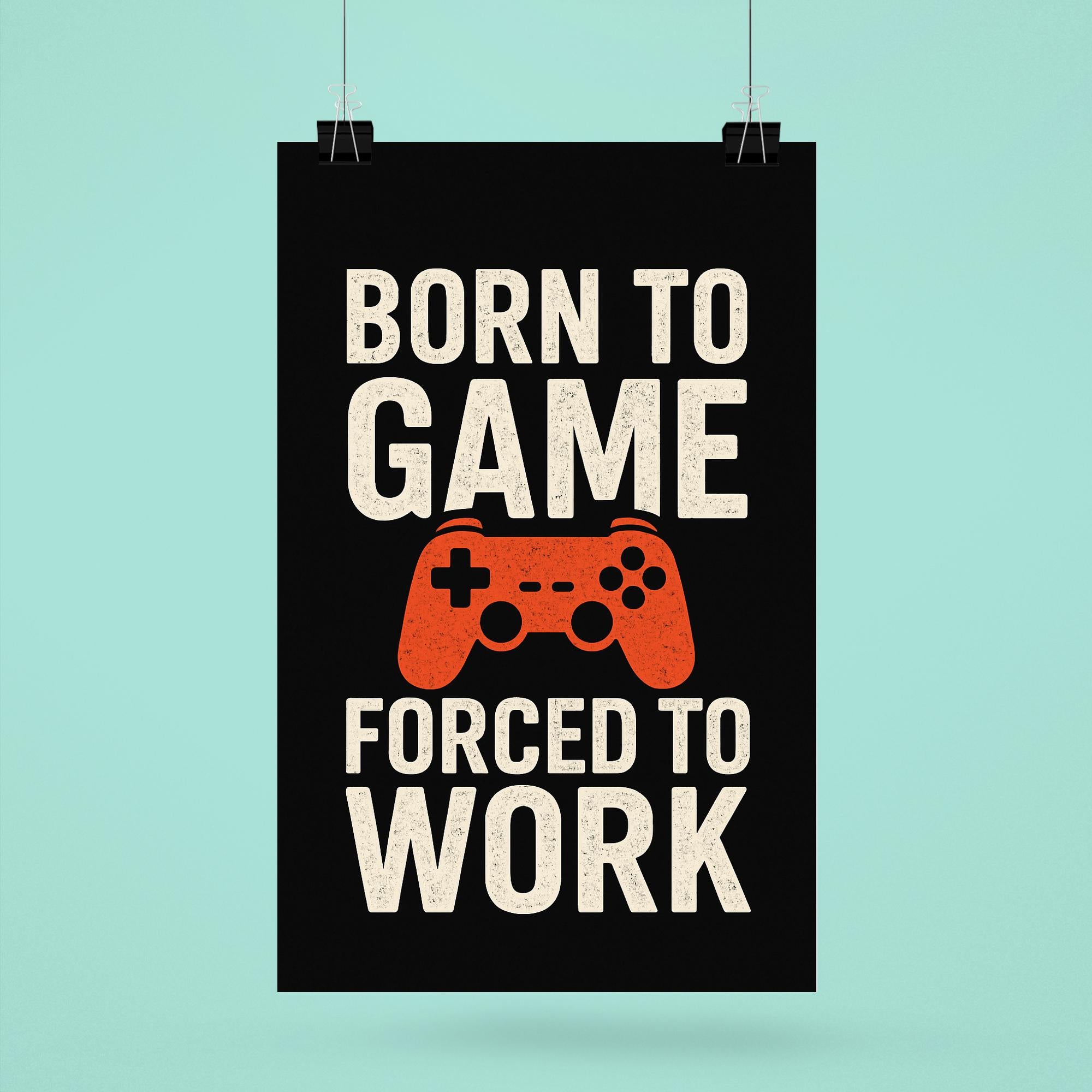 Unleash your true self with the “Born to Game, Forced to Work” poster—a must-have statement piece for every gamer at heart. Whether it's your home office or gaming den, this bold poster is the perfect reminder that your passion comes first, even on workdays. Elevate your space and give a knowing nod to everyone who understands the real grind.