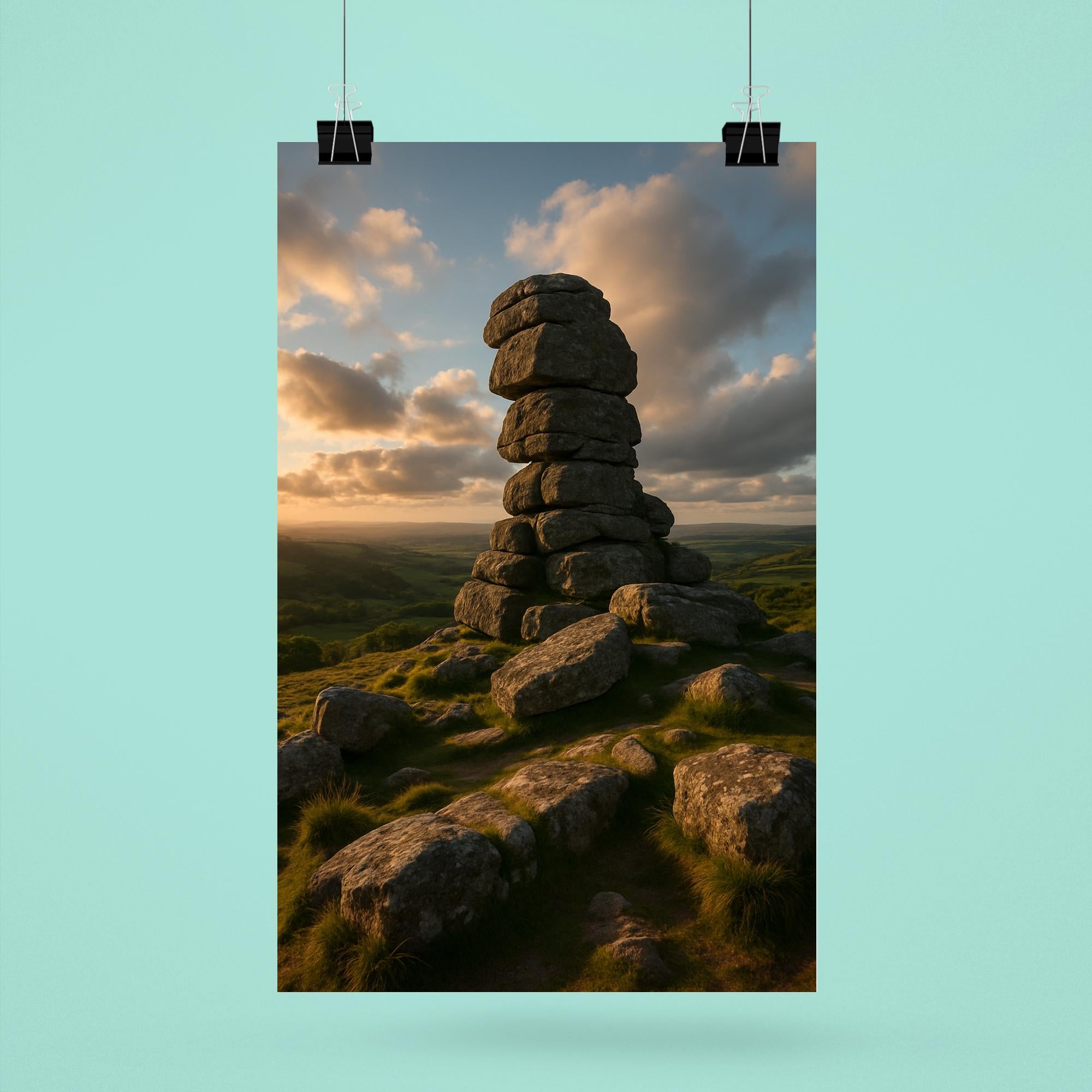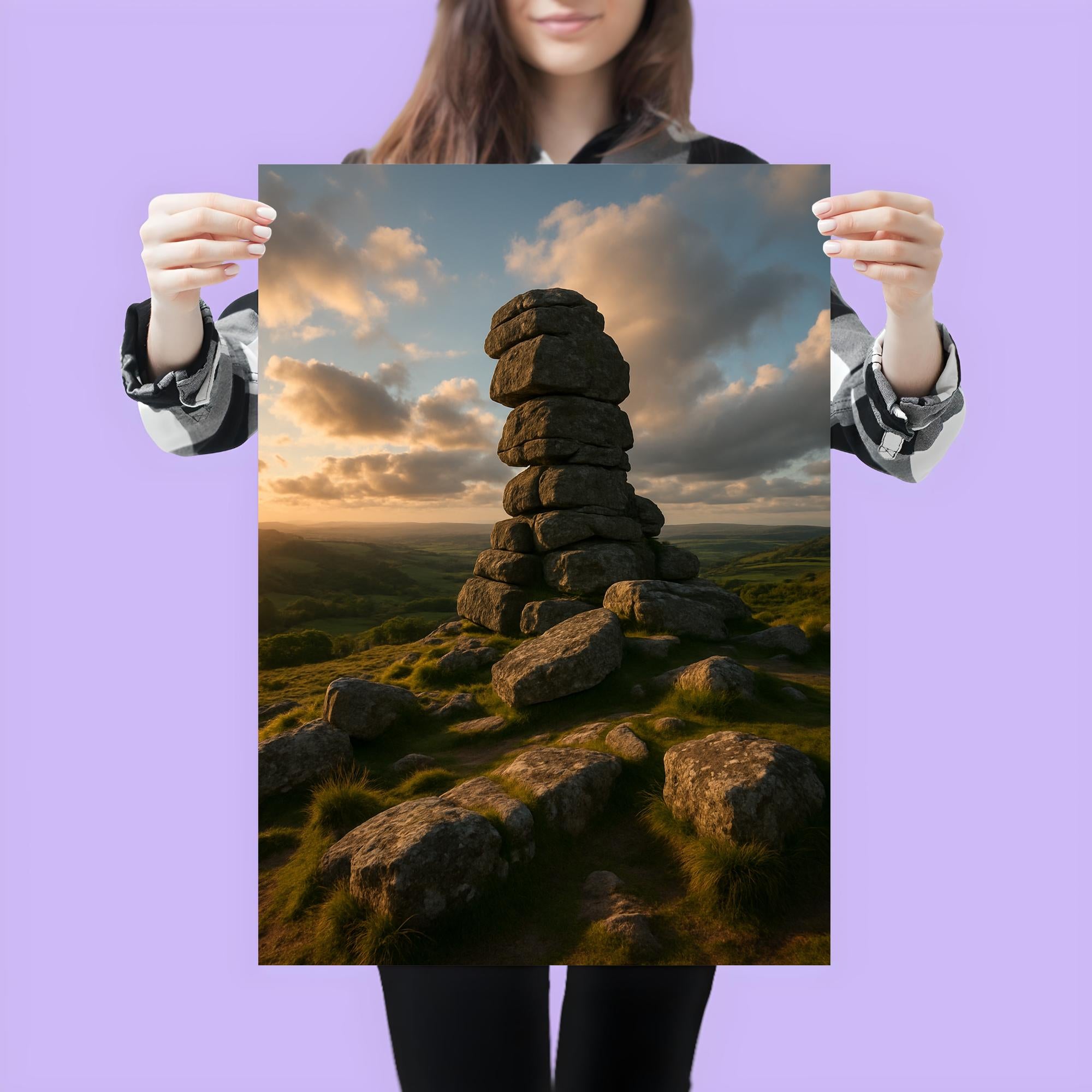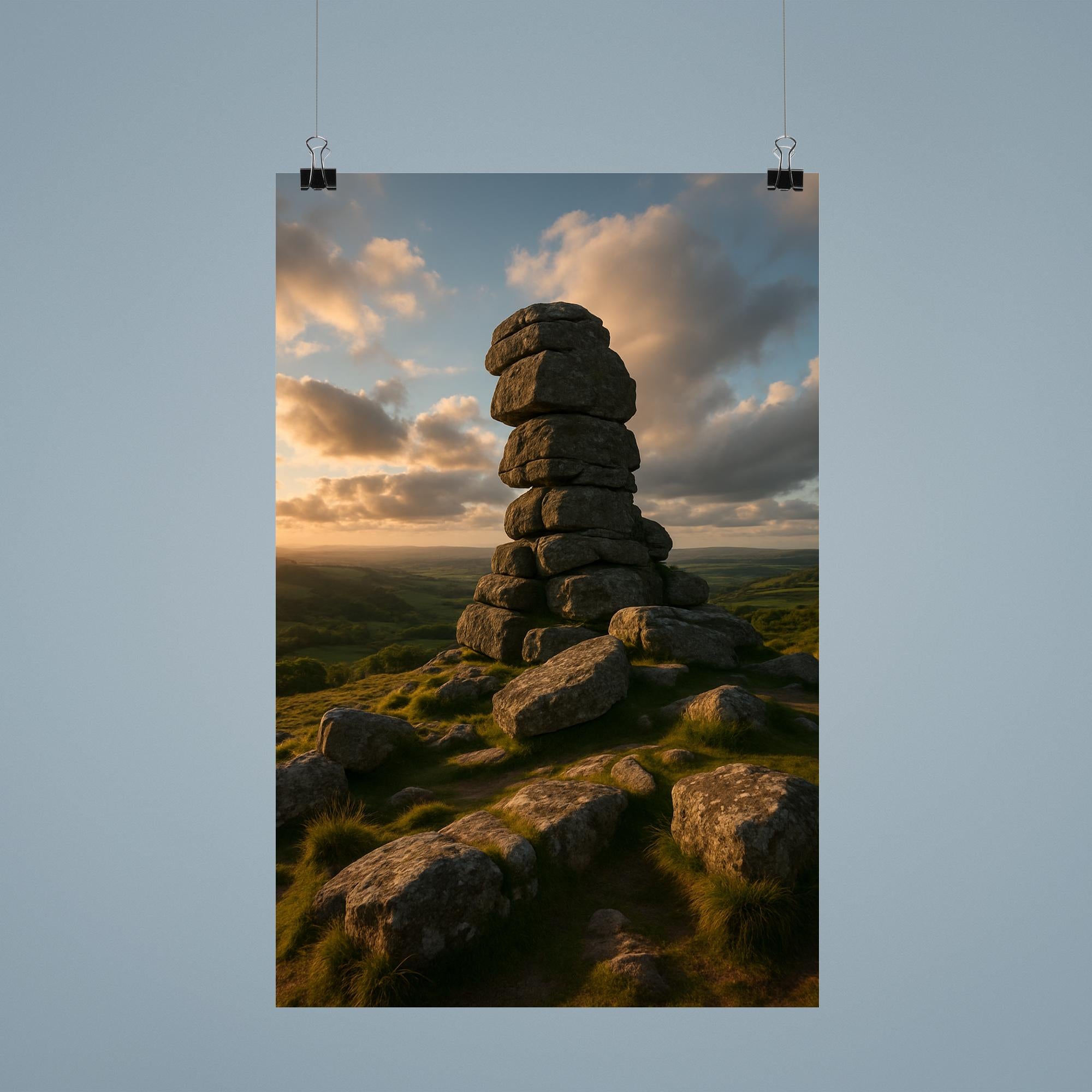 Bowermans Nose Dartmoor England Poster Print – Stunning Landscape Wall Art, Rugged Granite Rock Formation Home Decor Gift