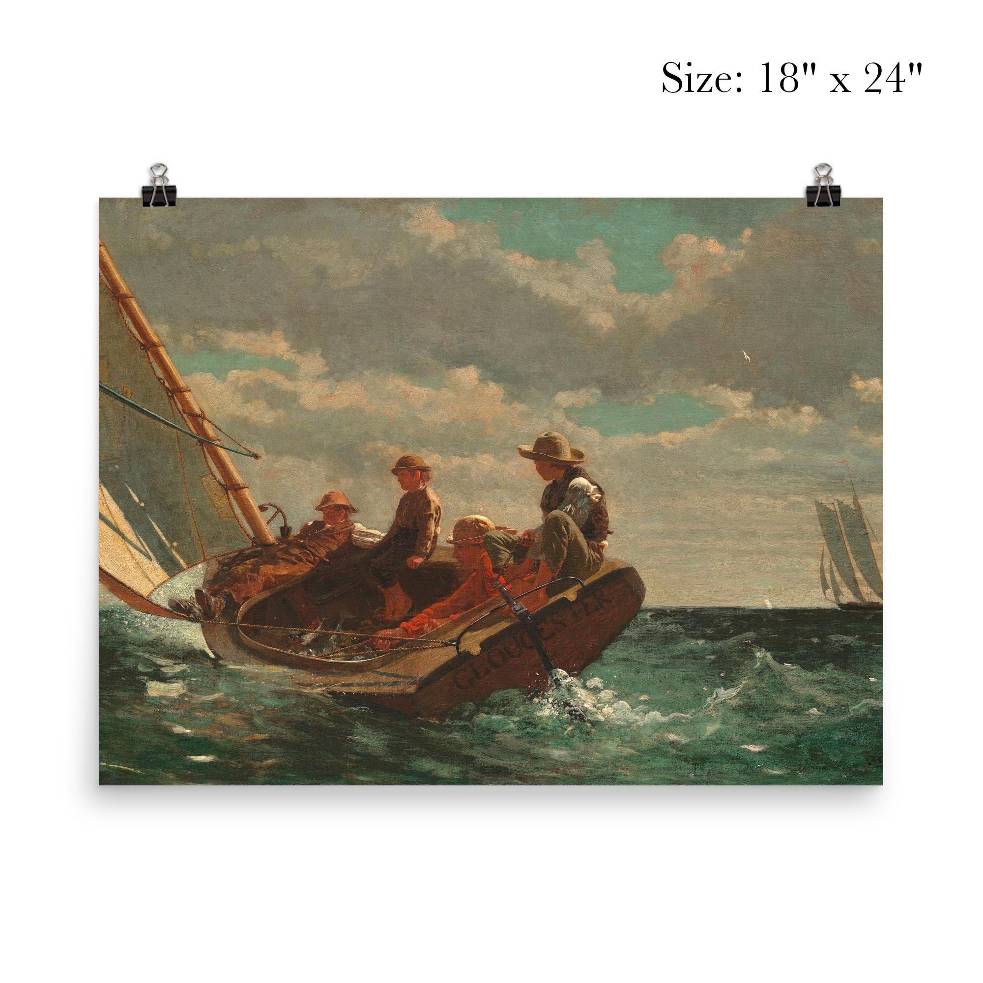 Celebrate timeless artistry with this exquisite poster of Winslow Homer’s iconic "Breezing Up, or A Fair Wind." Capturing the hopeful spirit and dynamic energy of a day on the water, this print brings a classic American masterpiece into your space with vibrant detail and enduring charm. Perfect for art lovers seeking to inspire and uplift any room.
