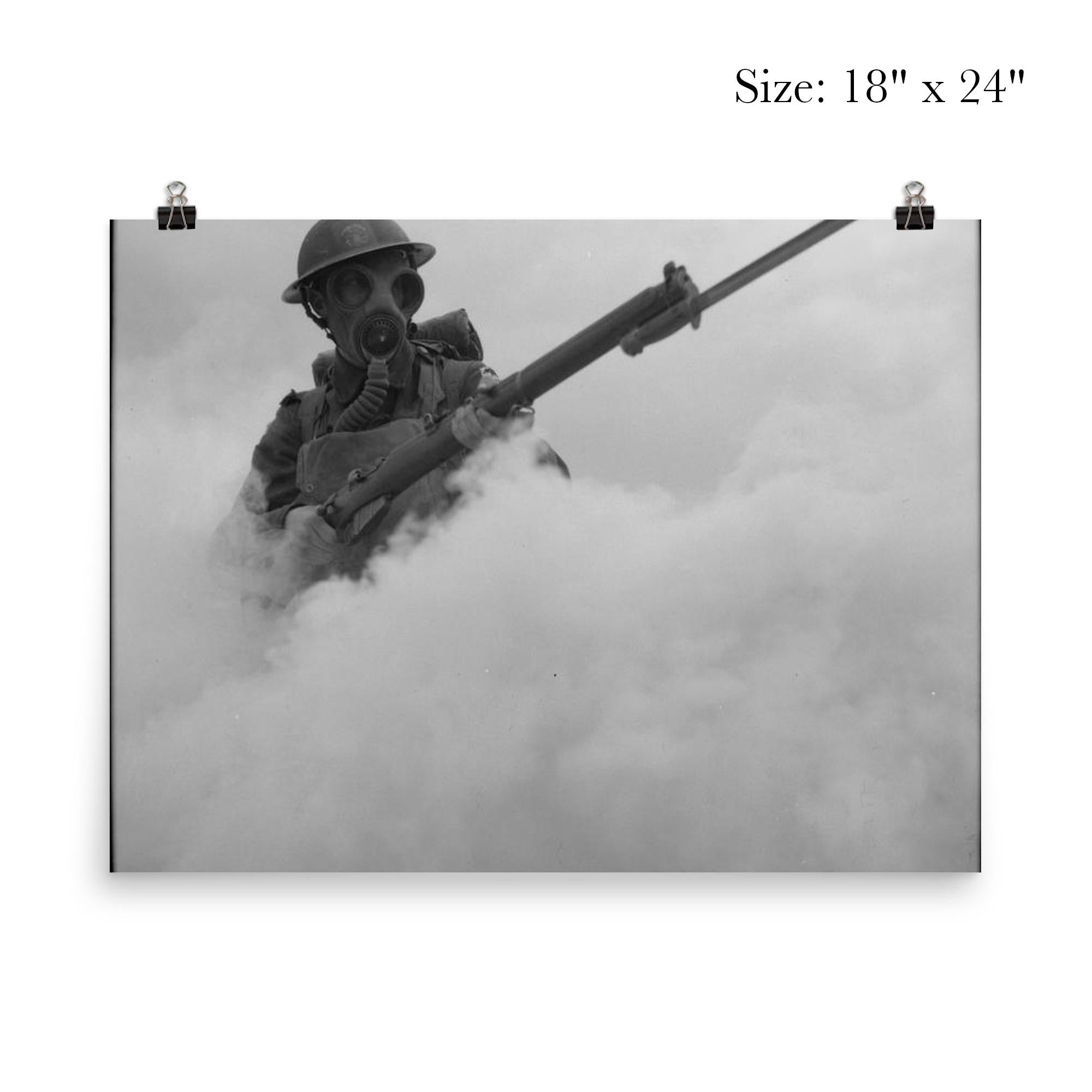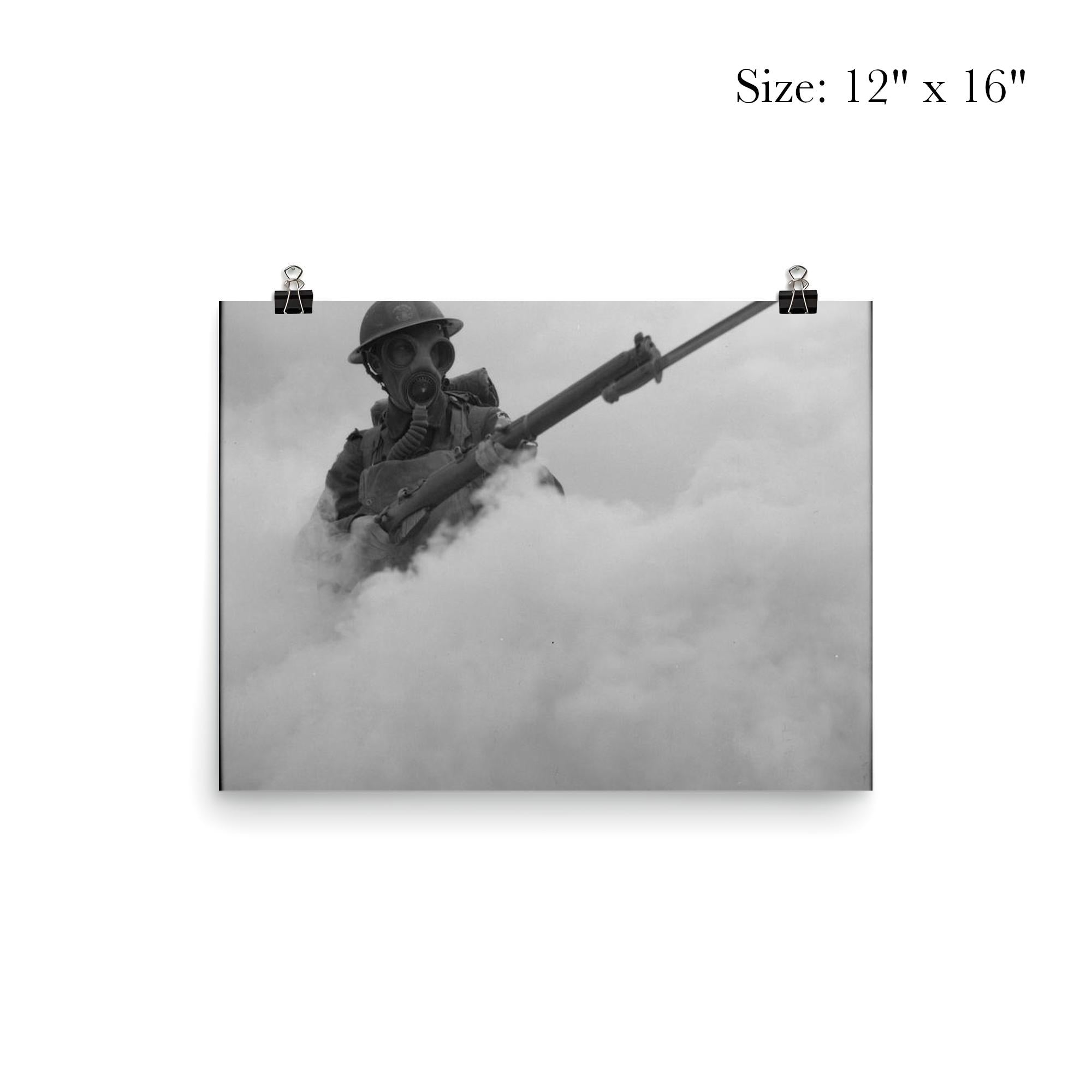 Capture the intensity and resilience of wartime training with this striking poster of a British infantryman advancing through a smokescreen in 1941. Evoking a moment of determination and grit, it vividly honors the courage and unwavering spirit of soldiers preparing for battle. Perfect for history enthusiasts and collectors alike, this piece brings a powerful story of bravery into your space.