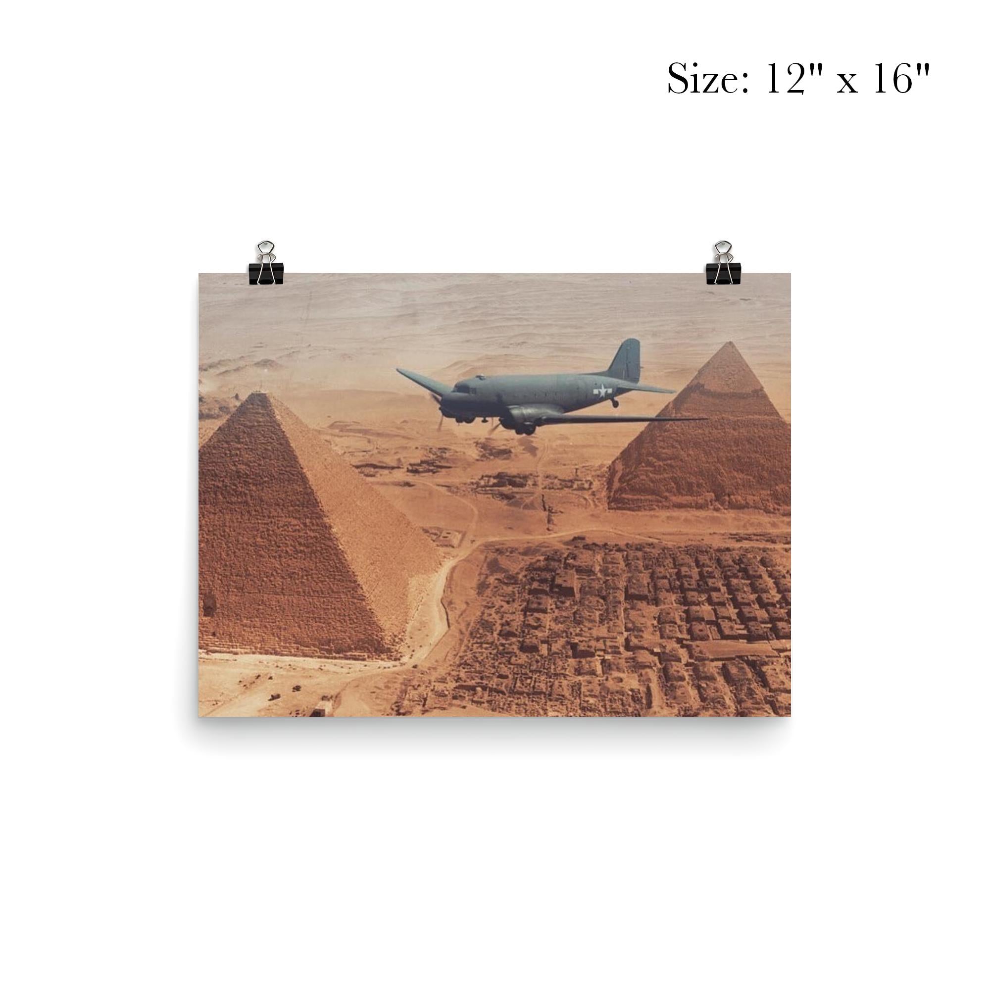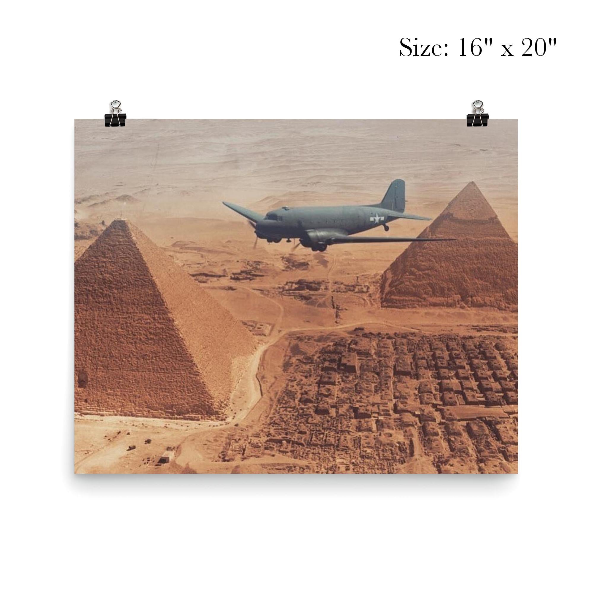 C-47 WWII Military Transport Plane Poster Print Over Pyramids Tobruk 1942 Vintage War Aviation Wall Art