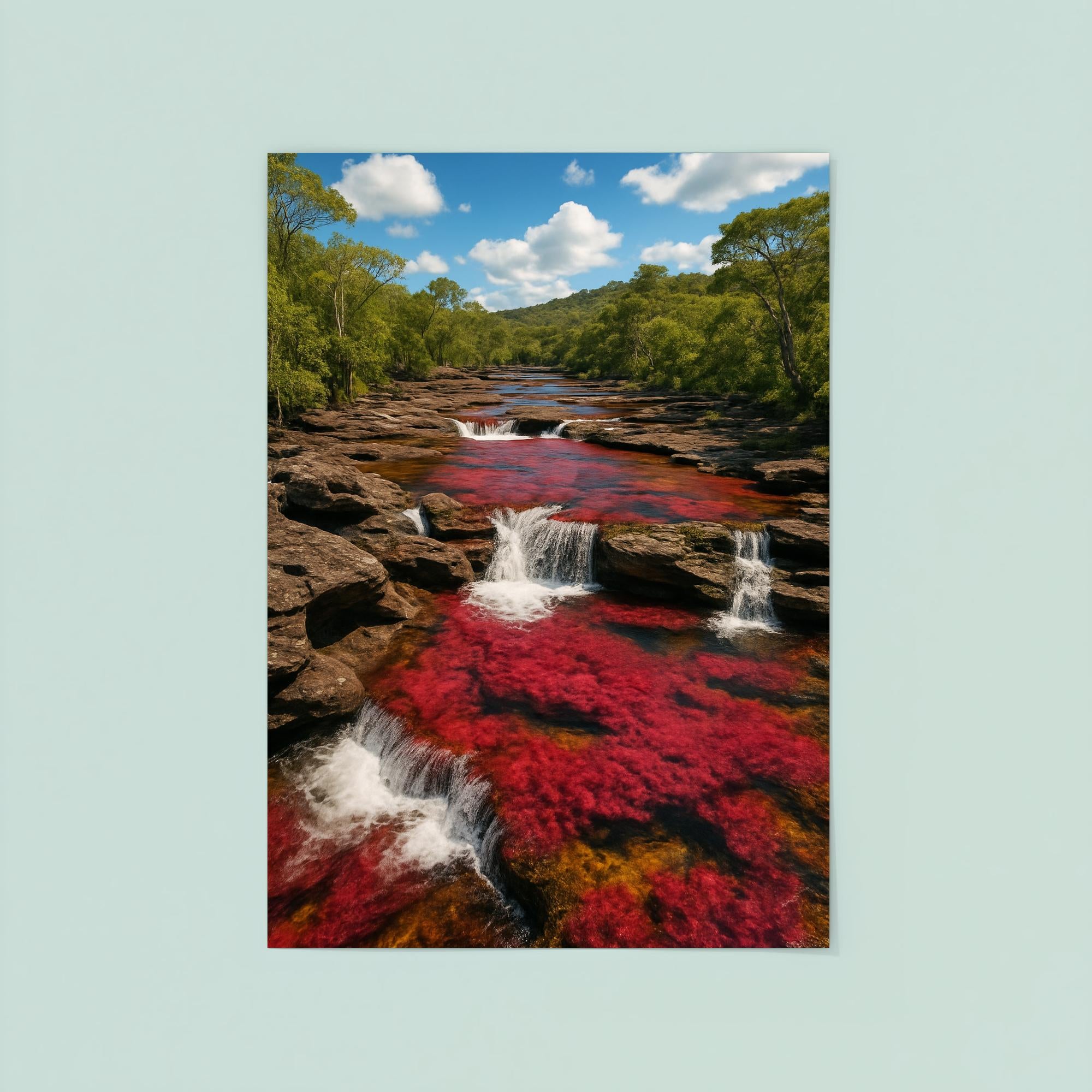Bring the magic of Caño Cristales, Colombia’s “River of Five Colors,” into your space with this stunning poster. Showcasing the vivid natural spectacle where vibrant reds, yellows, greens, blues, and blacks flow in harmony, it’s a breathtaking tribute to one of the world’s most unique and enchanting rivers. Perfect for inspiring wanderlust and adding a splash of color to any room.