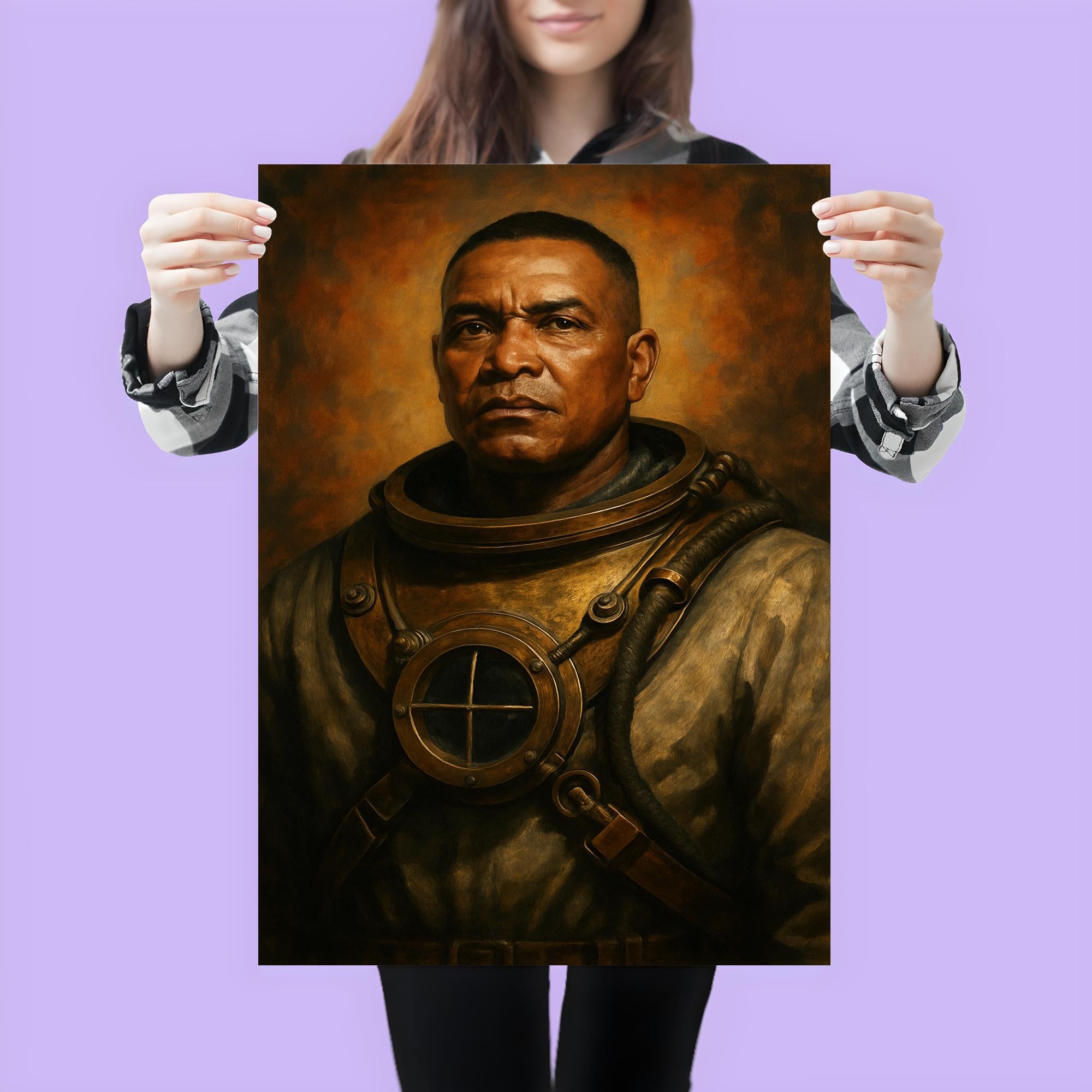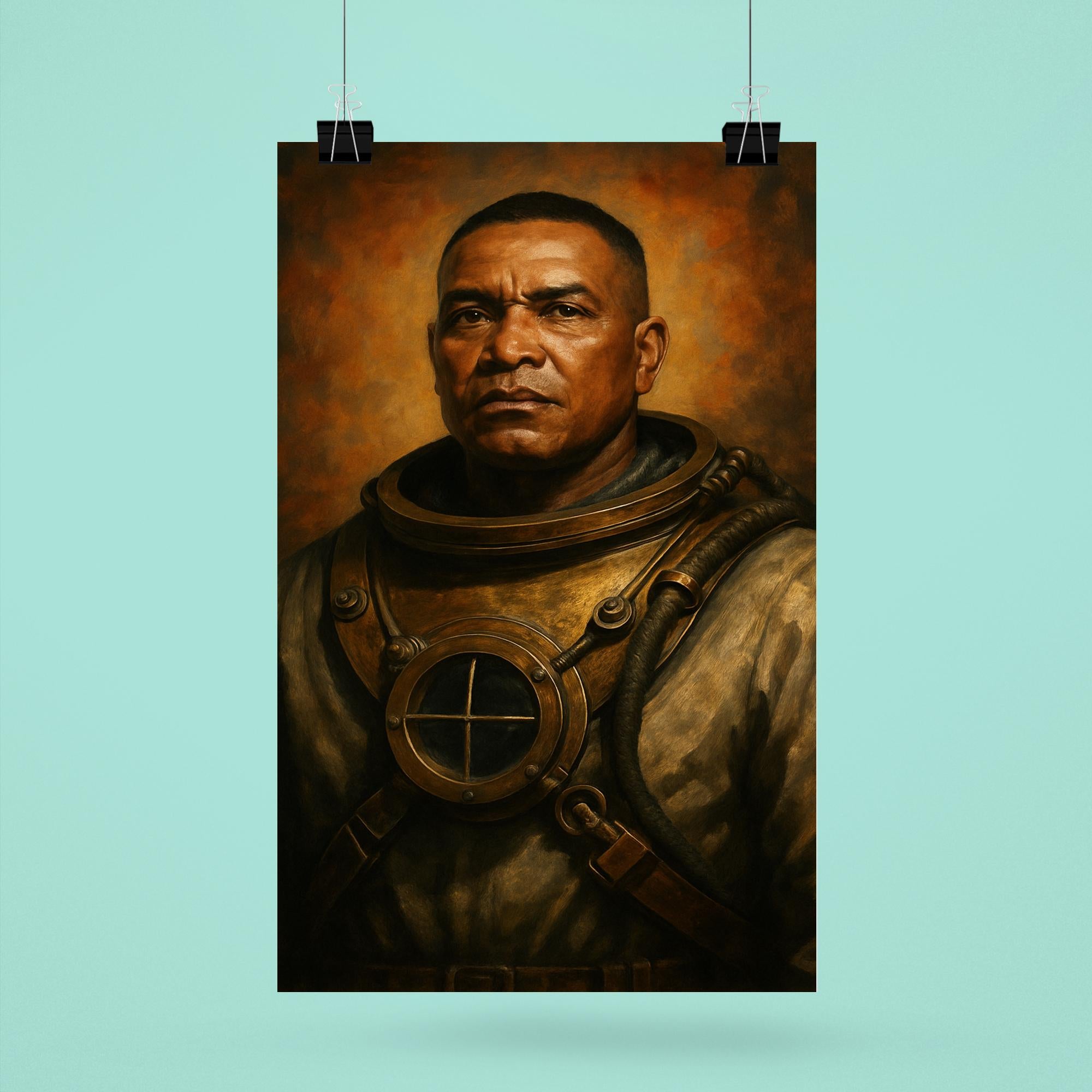 Celebrate the extraordinary legacy of Carl Brashear with this striking poster that honors the first African American master diver in the U.S. Navy. Powerful and inspiring, this artwork captures the spirit of courage, determination, and resilience that defined a true American hero. Perfect for any space craving motivation and a reminder of breaking barriers against all odds.