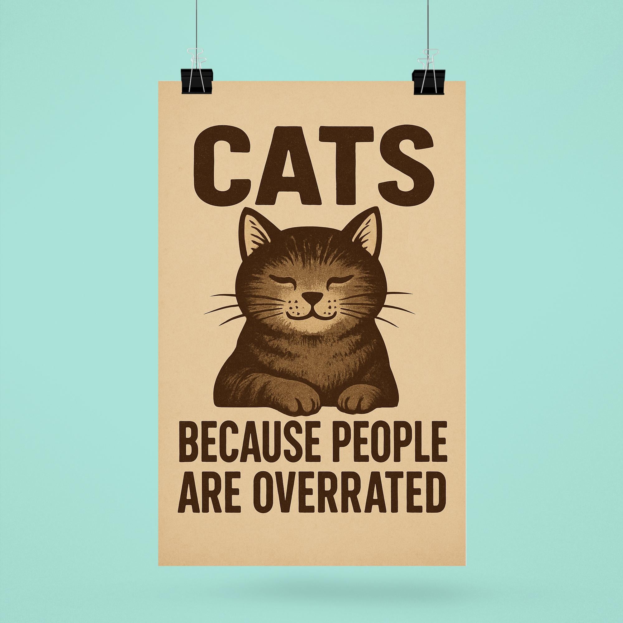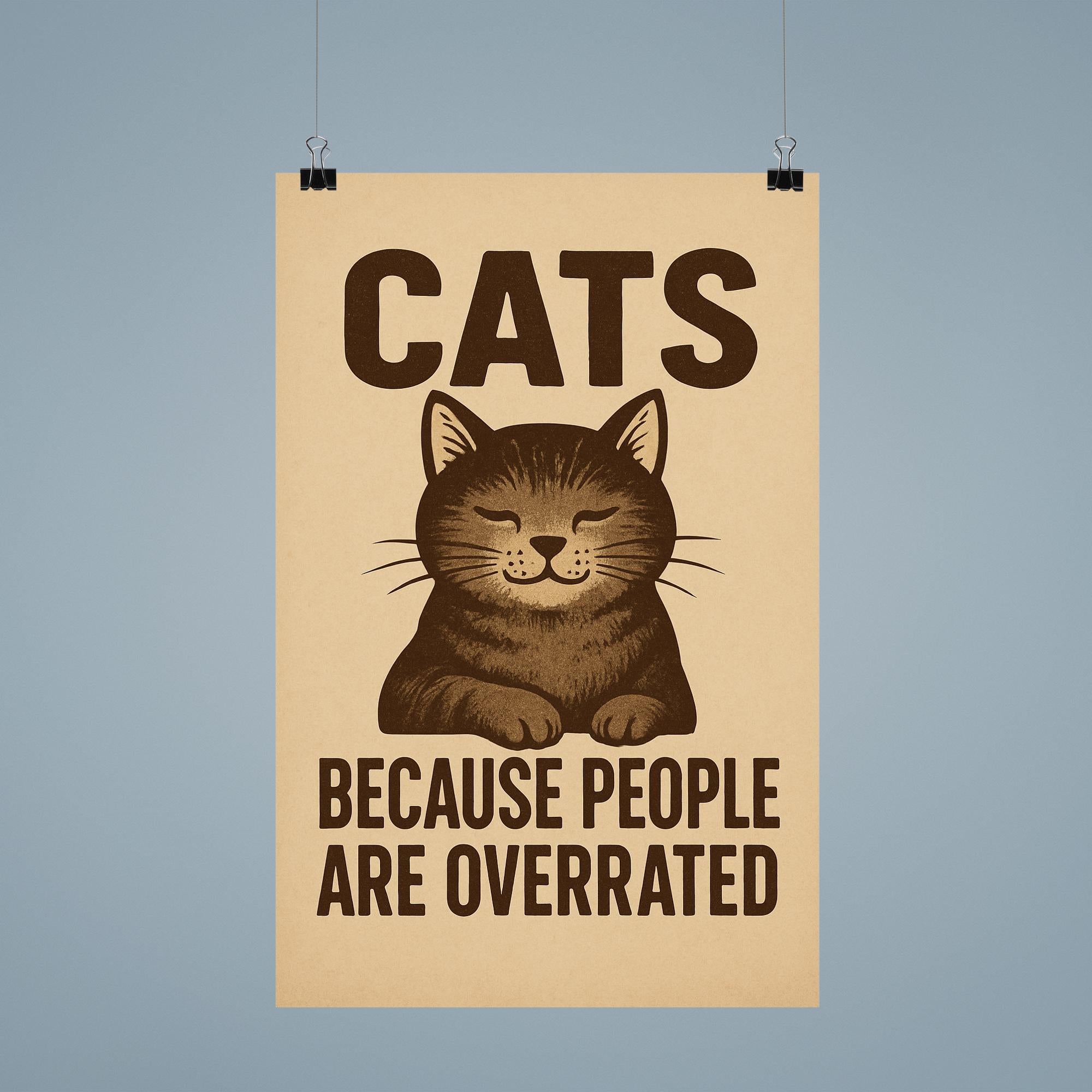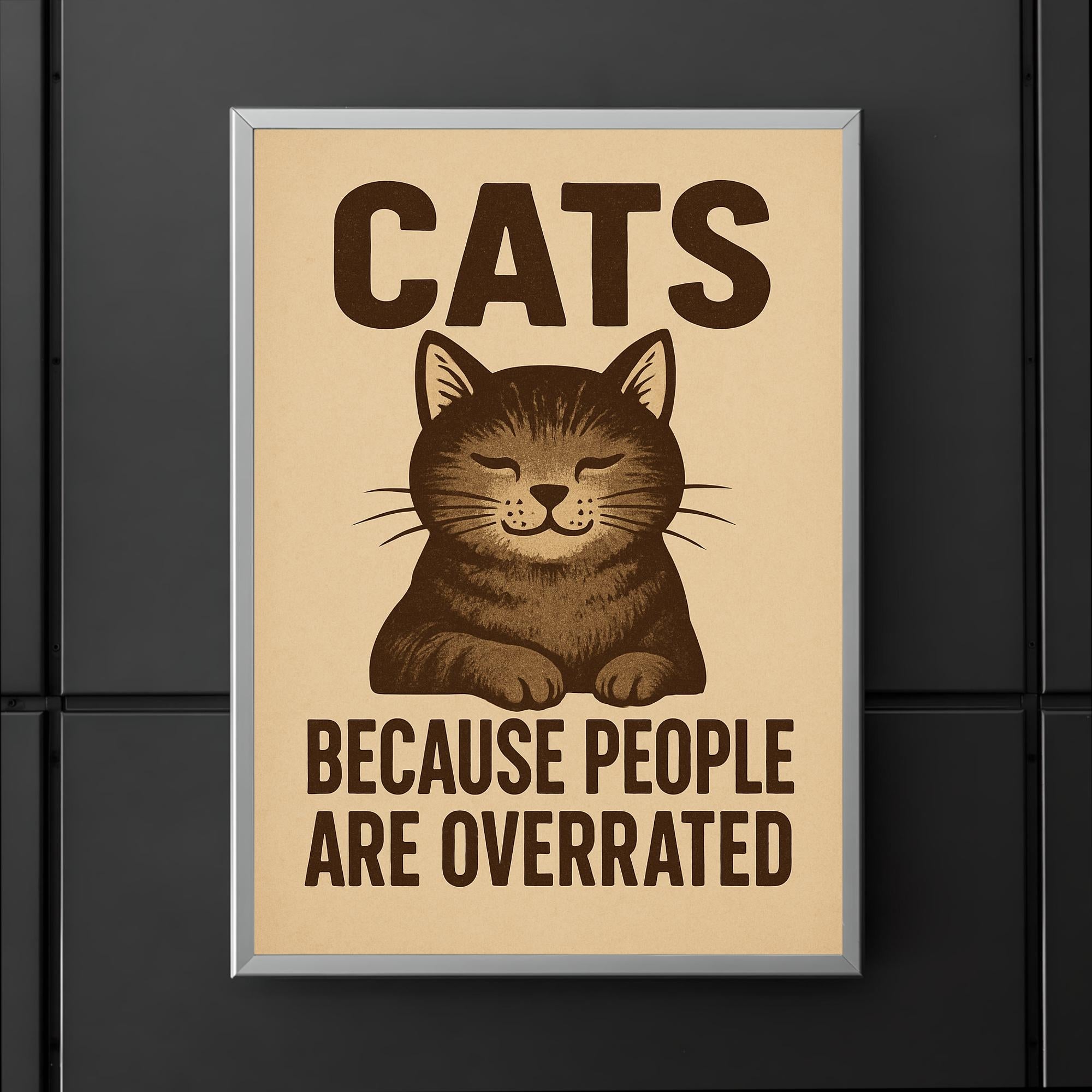 Embrace your unapologetic love for the feline kind with this bold Cats because people are overrated poster. Playful, honest, and just a little rebellious—it’s the perfect statement piece for anyone who knows that life is better with whiskers, purring, and a little less human drama. Hang it up and let your priorities speak for themselves!