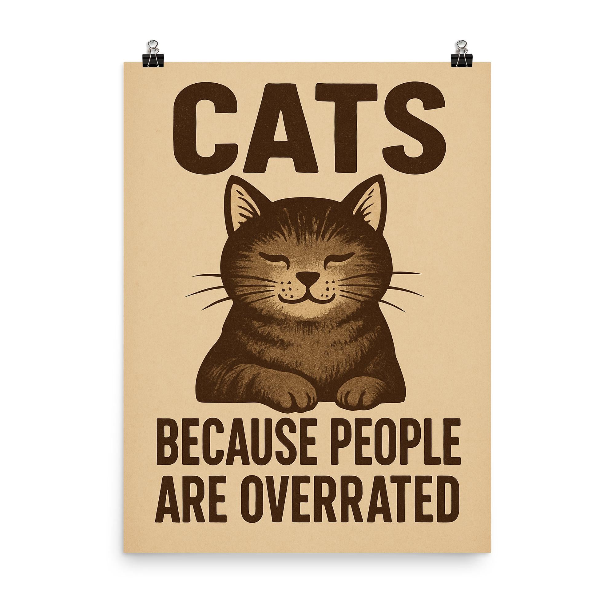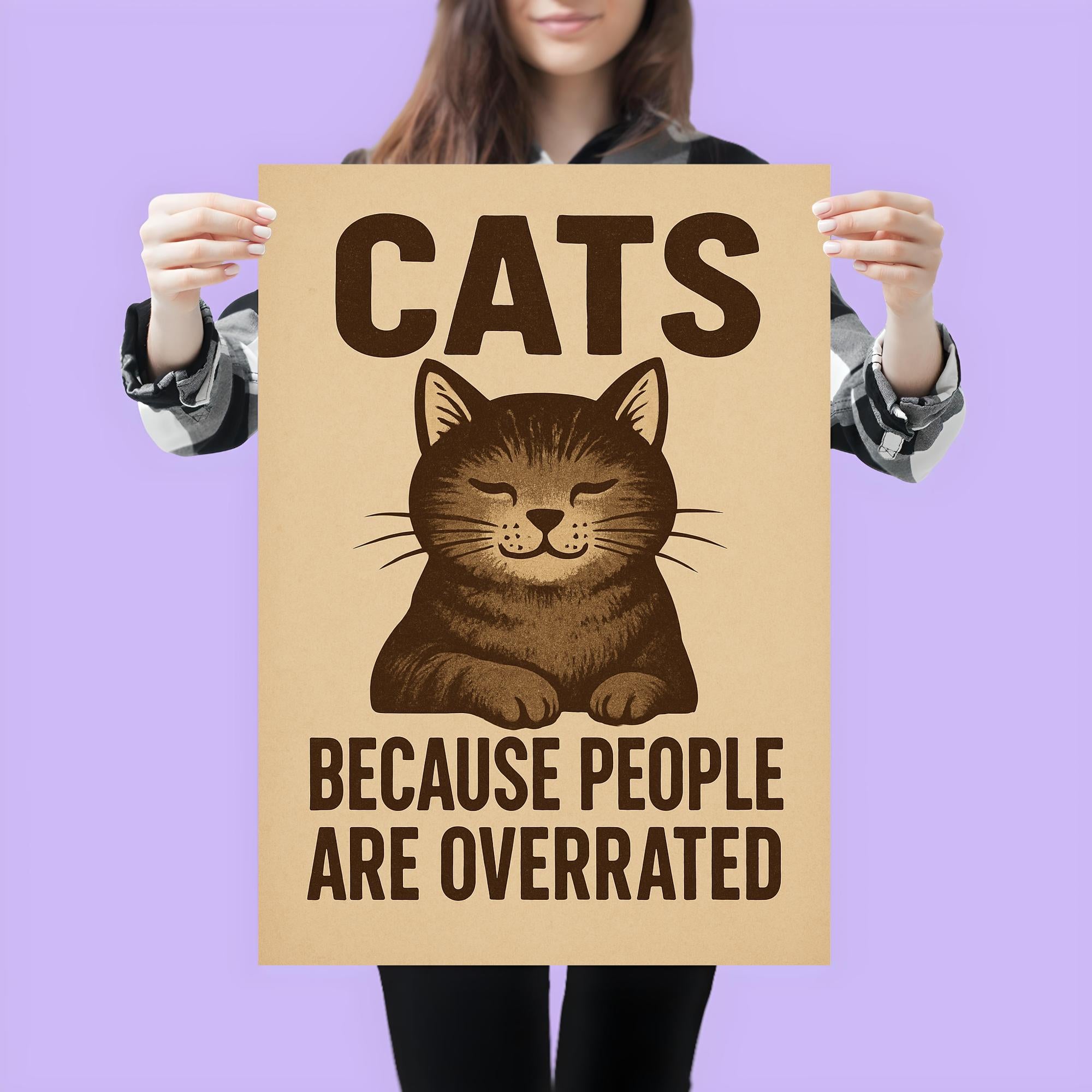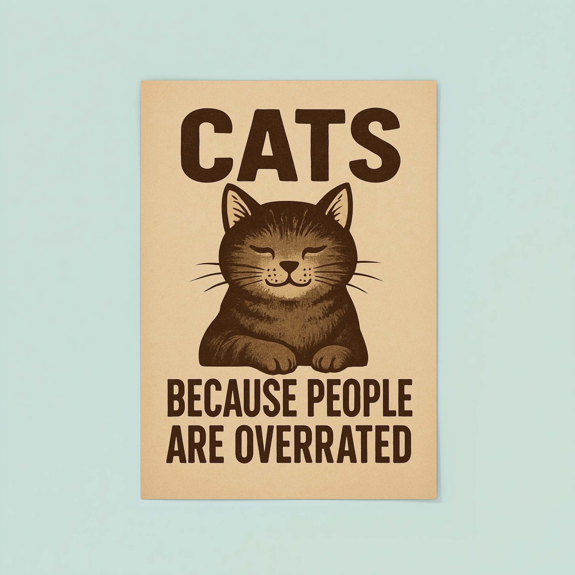 Embrace your unapologetic love for the feline kind with this bold Cats because people are overrated poster. Playful, honest, and just a little rebellious—it’s the perfect statement piece for anyone who knows that life is better with whiskers, purring, and a little less human drama. Hang it up and let your priorities speak for themselves!