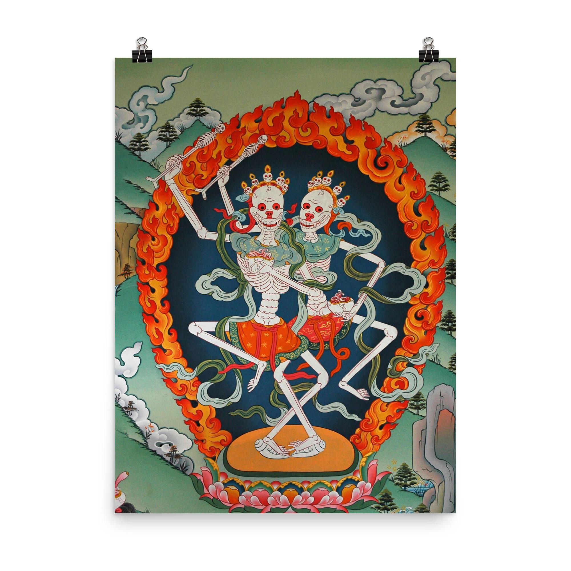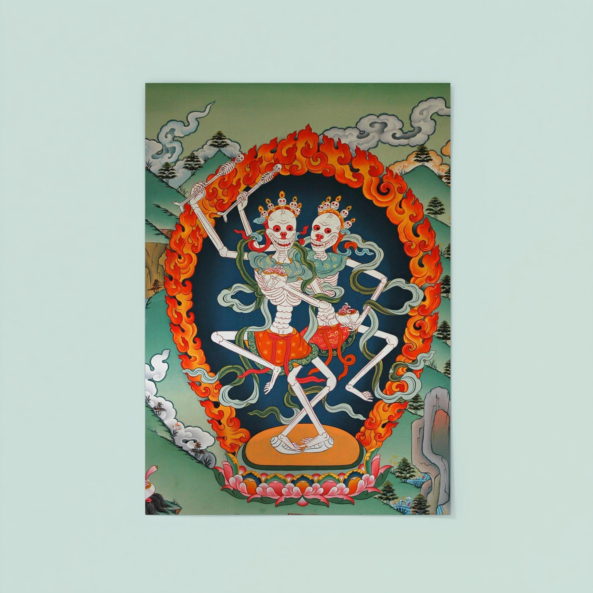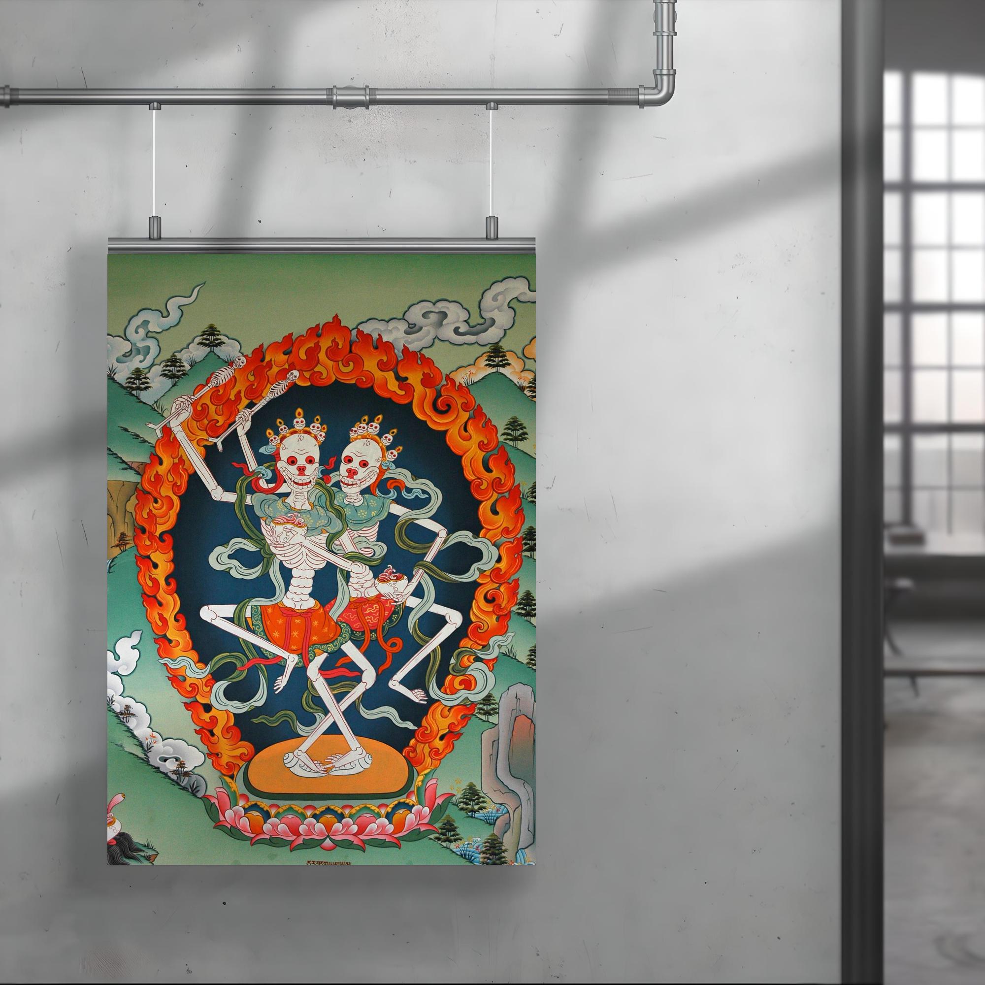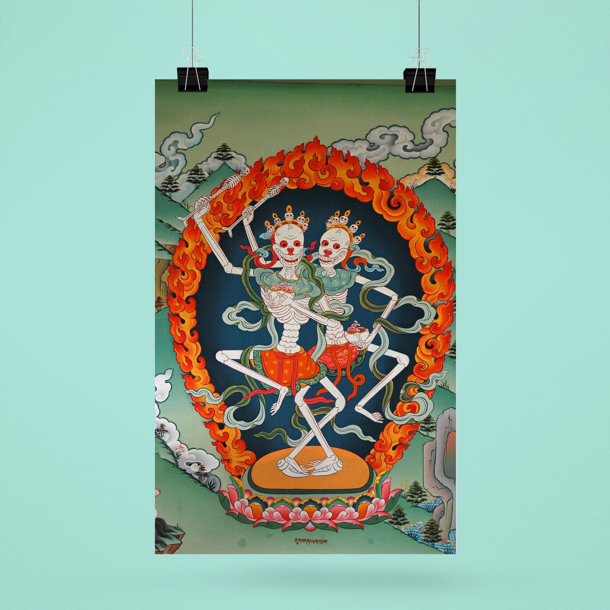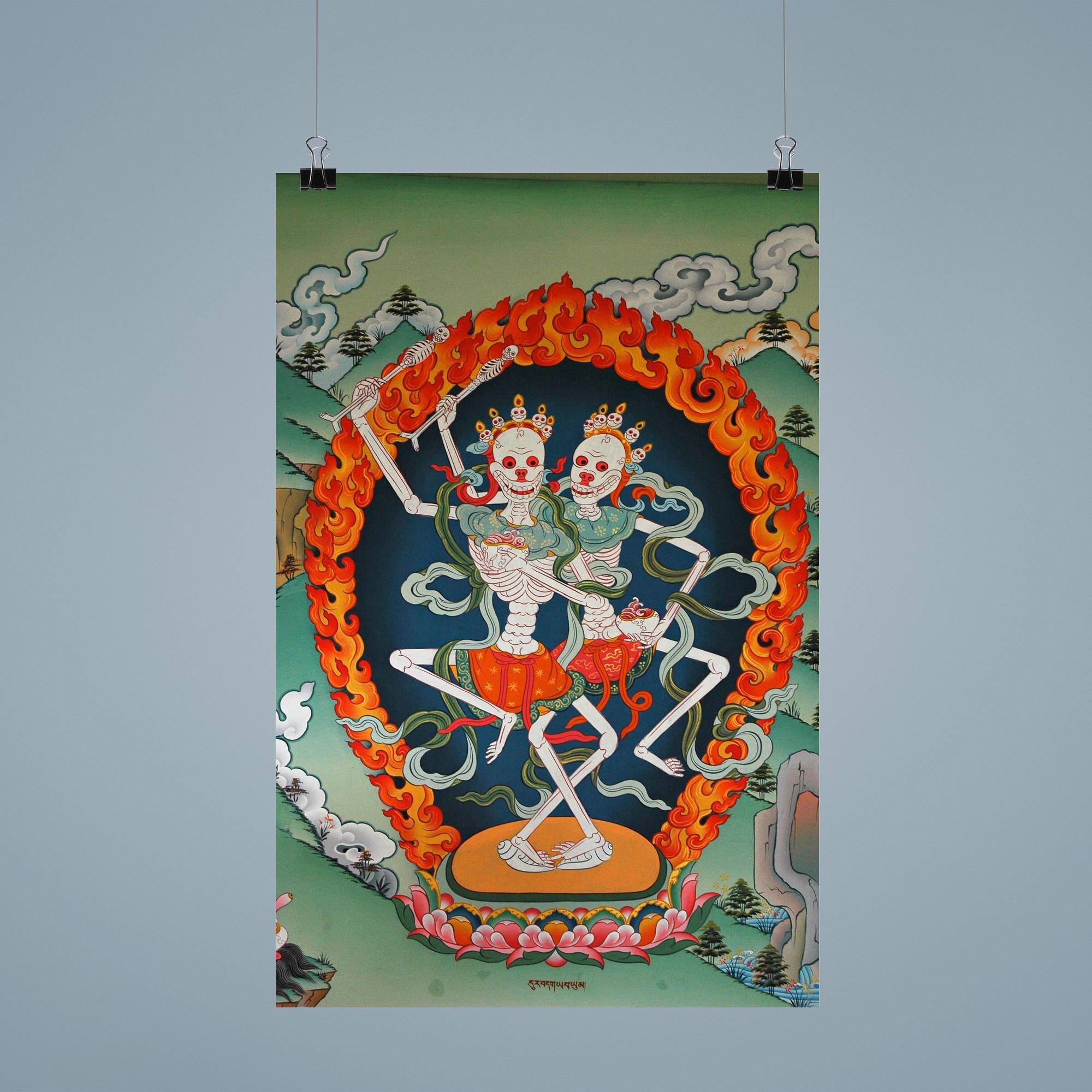 Elevate your space with this striking Thangka art poster of Citipaxi, the Tibetan skeleton Buddhist deity and fierce tantric protector. Revered in Vajrayana tradition, Citipaxi embodies the powerful energy that guards against negativity while inspiring transformation. Perfect for those drawn to profound spiritual symbolism, this poster offers a bold and sacred presence that commands attention and reverence.