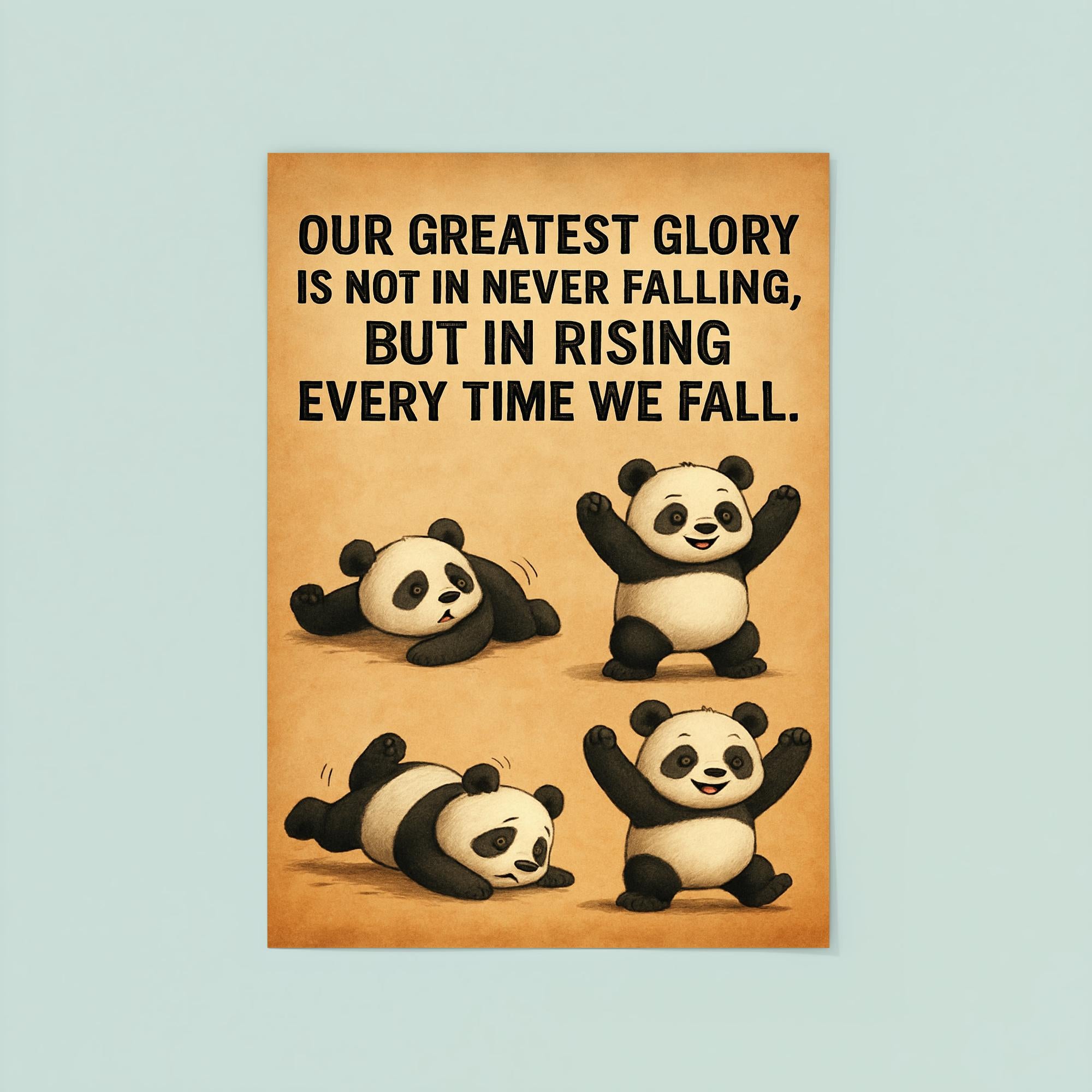Embrace resilience and wisdom with this inspiring poster featuring Confucius’s timeless quote alongside a clumsy panda rising after a fall. Perfect for anyone needing a daily reminder that true strength lies in getting back up, this artwork turns stumbling moments into powerful motivation. Let it brighten your space and uplift your spirit with every glance.