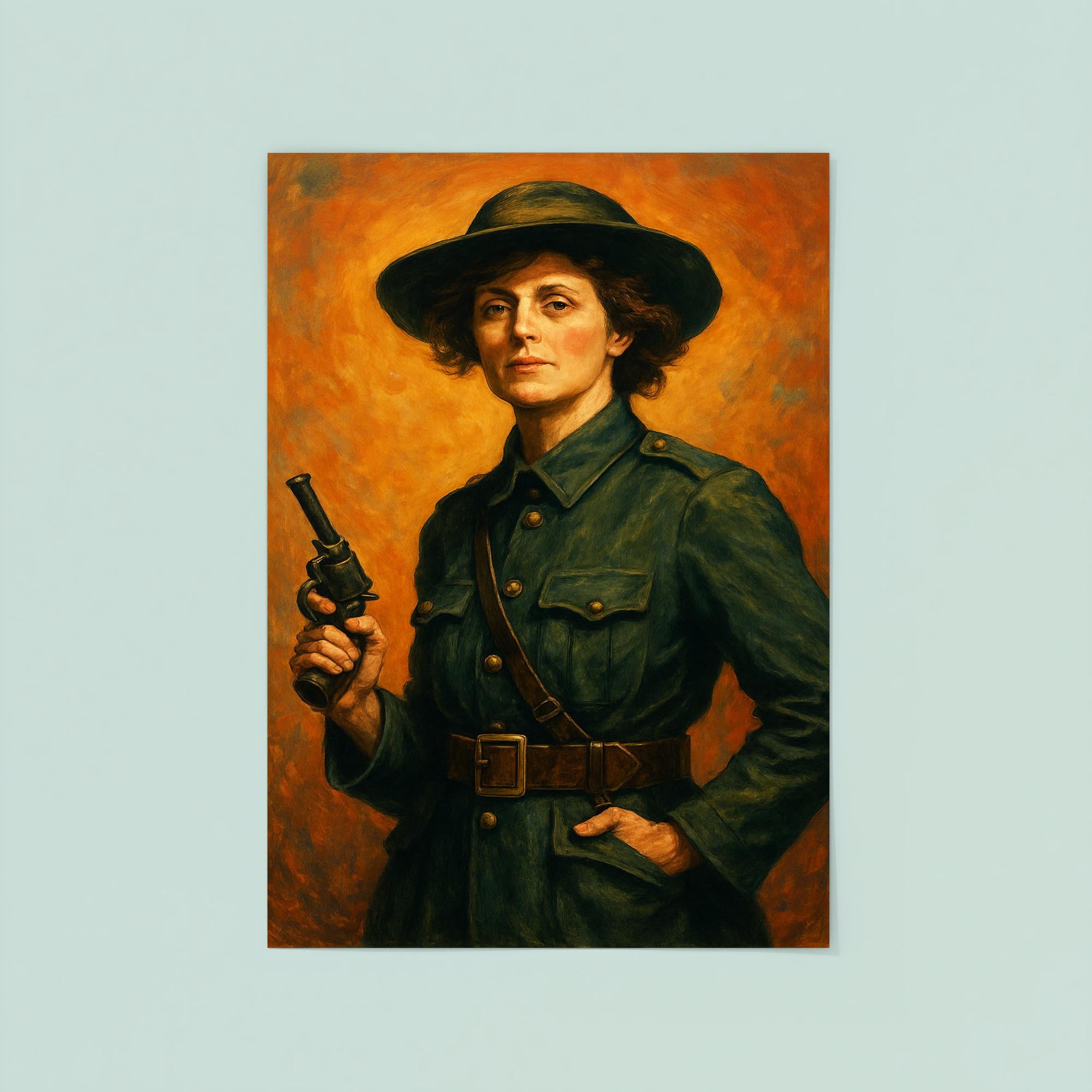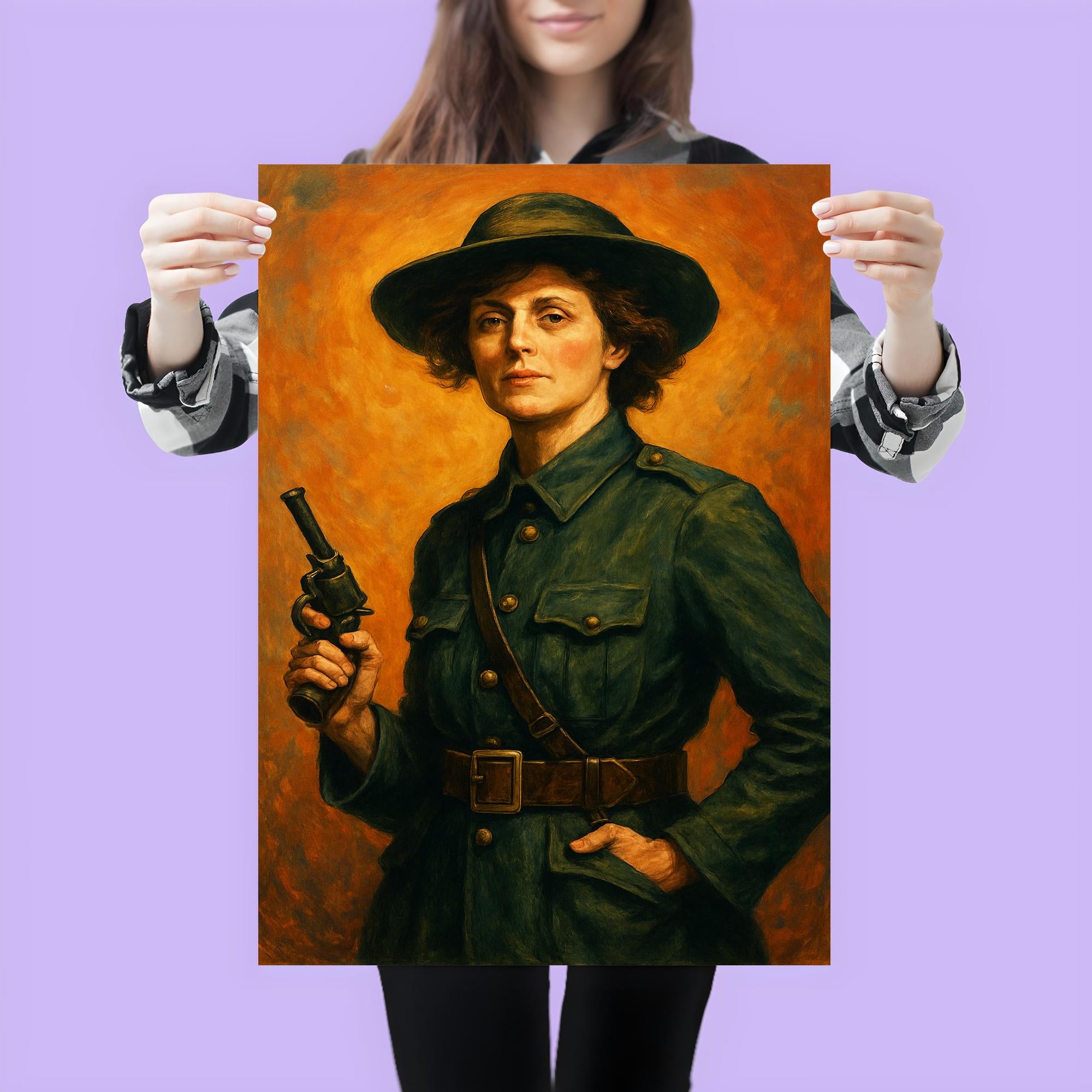 Celebrate the bold spirit of Countess Markievicz with this striking poster that honors her legacy as a pioneering Irish revolutionary and trailblazing advocate for women’s rights. Perfect for history enthusiasts and admirers of fearless leadership, this piece brings a powerful symbol of courage and determination to your space. Elevate your walls with a tribute to a true icon whose impact continues to inspire.
