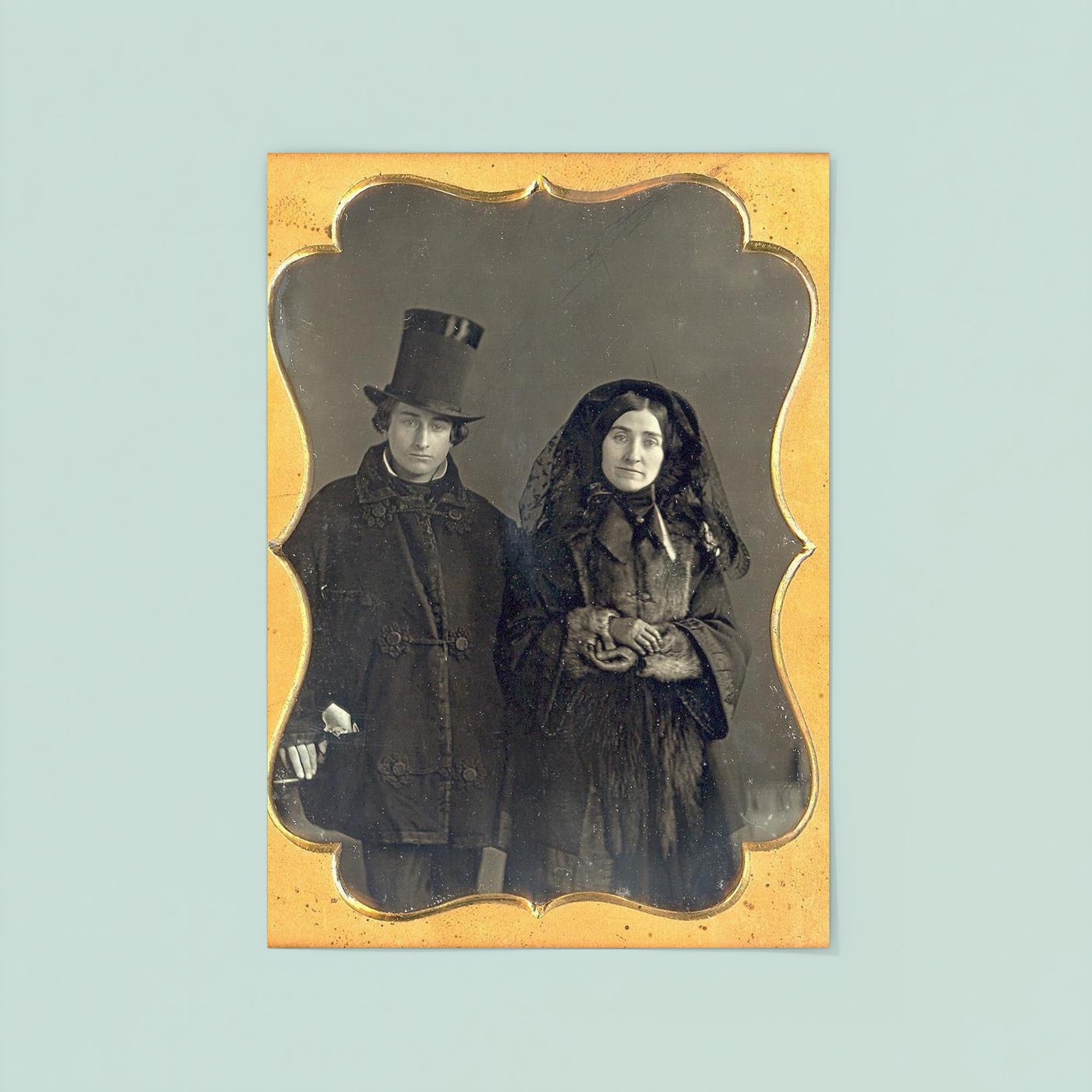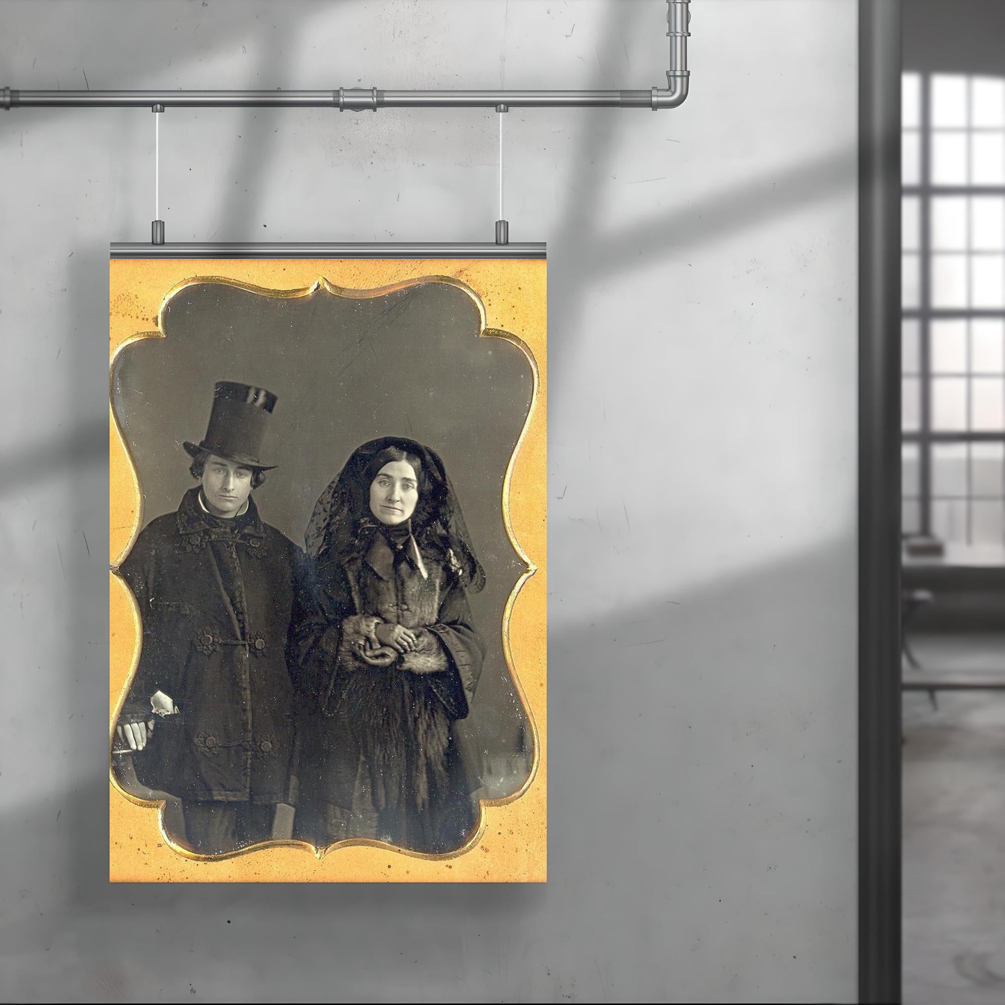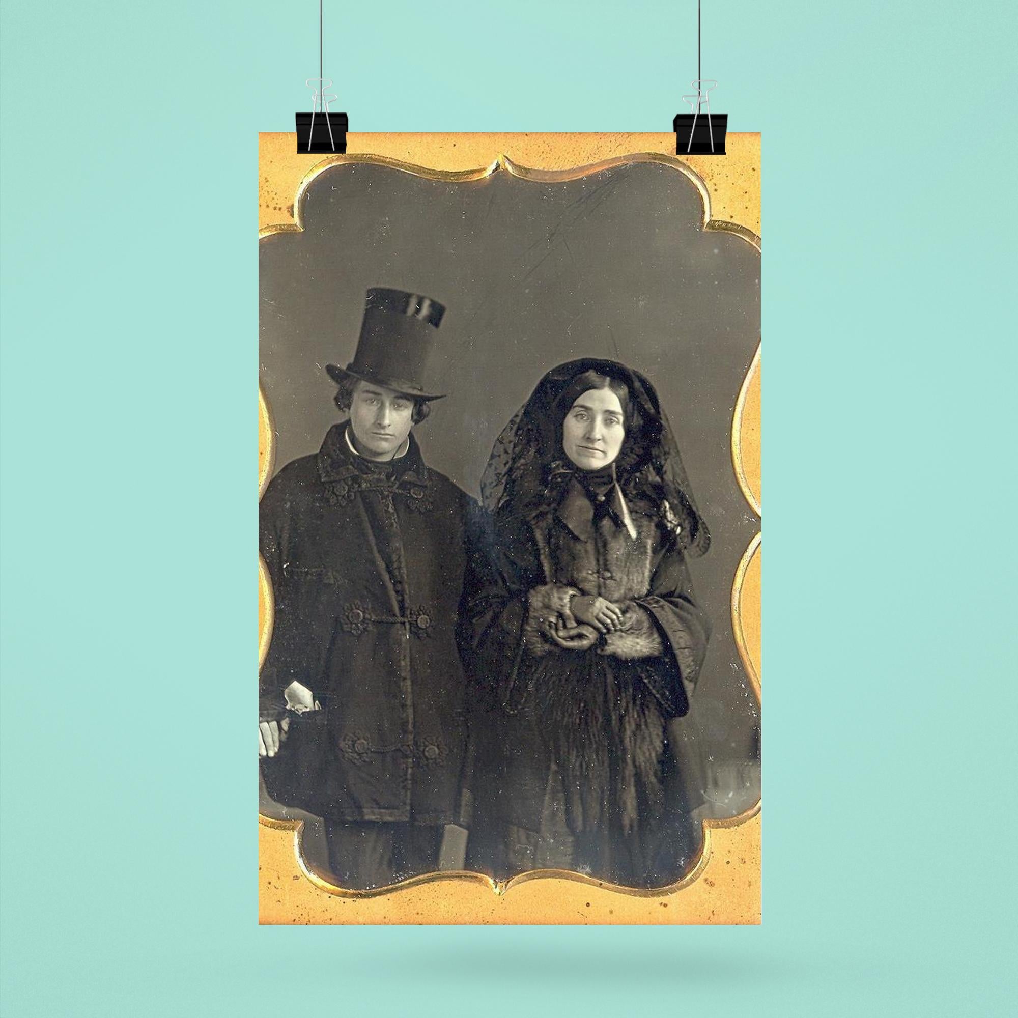 Capture a moment of profound emotion with the "Couple in Mourning, 1853" poster. This evocative artwork offers a timeless glimpse into the depths of shared sorrow, rendered with striking detail and subtle intensity. Perfect for those who appreciate art that speaks to the complexities of human connection and loss.