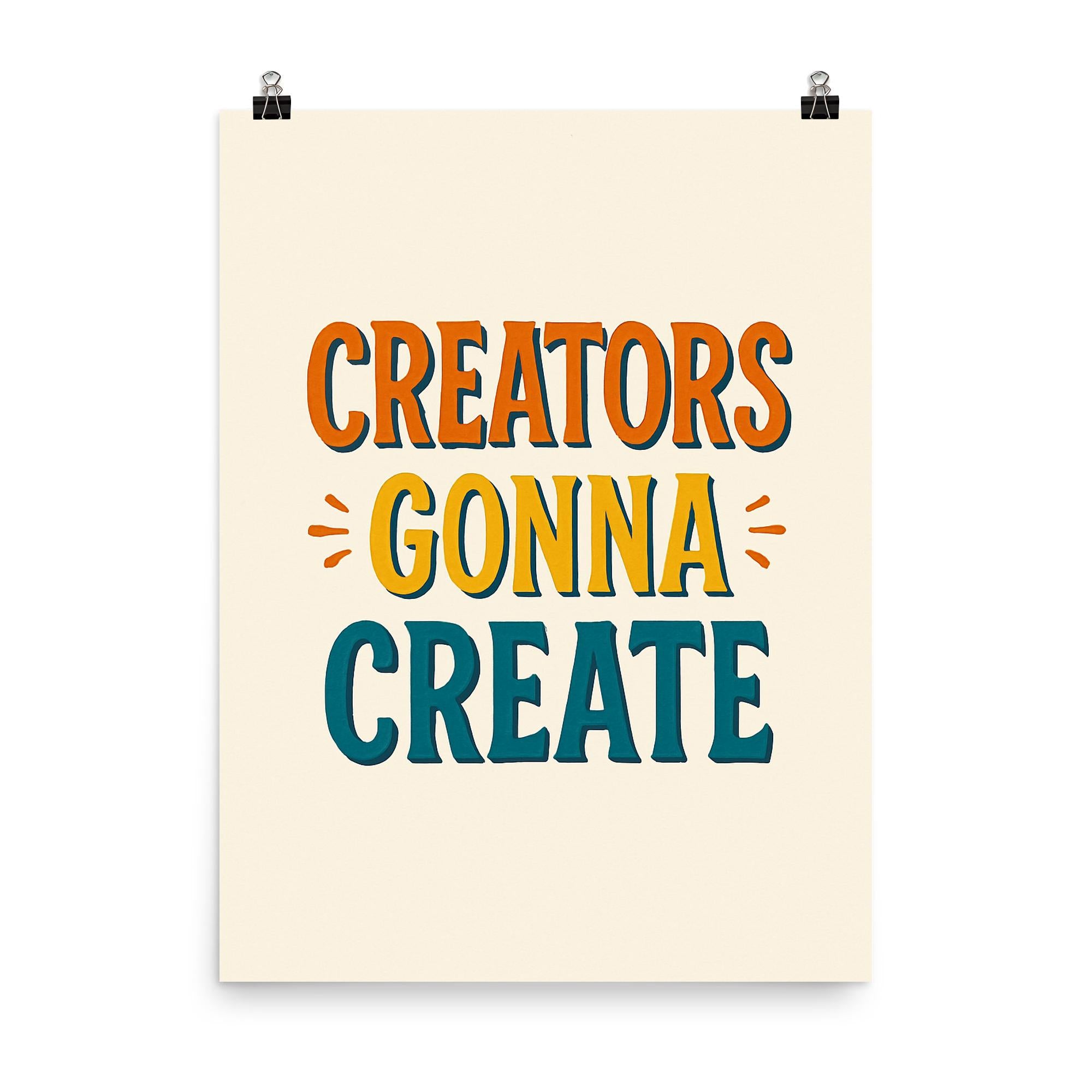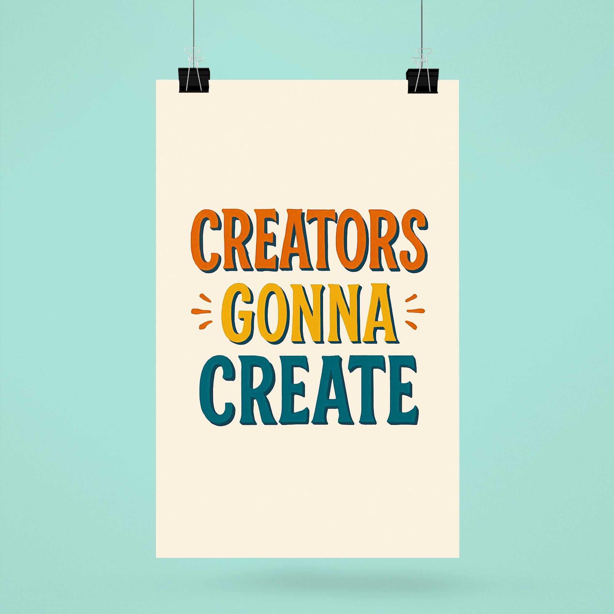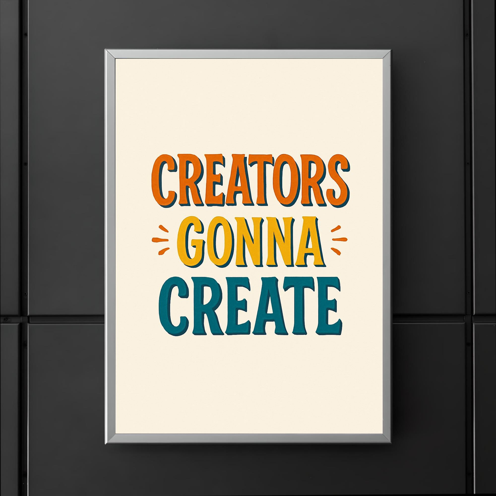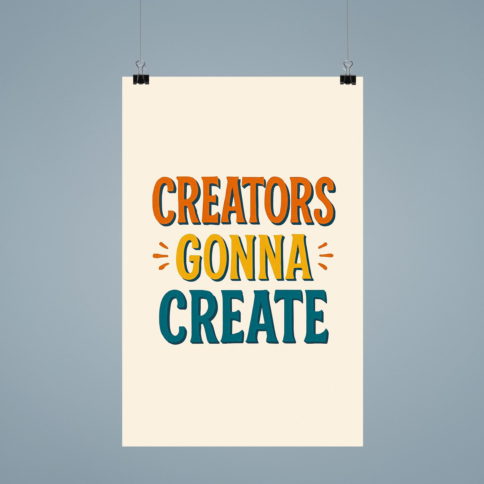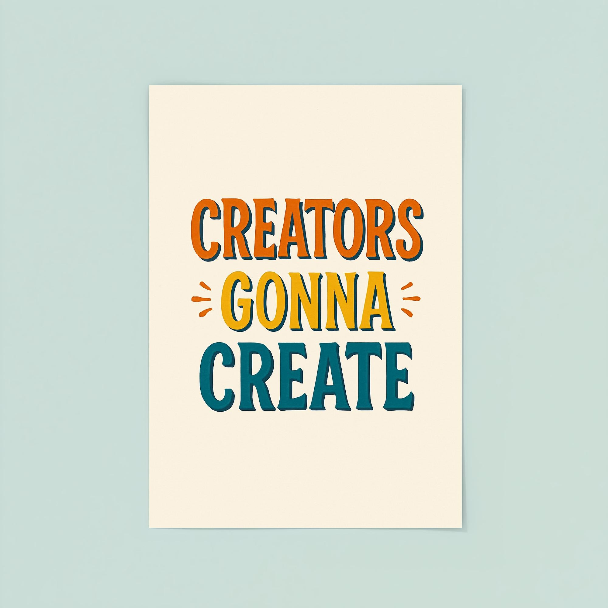 Fuel your passion and let your creativity flow with this bold reminder: "Creators gonna create." Hang this inspiring poster in your workspace or studio to recharge your motivation and let the world know you’re unstoppable. Perfect for makers, artists, writers, and dreamers—because creativity always finds a way.