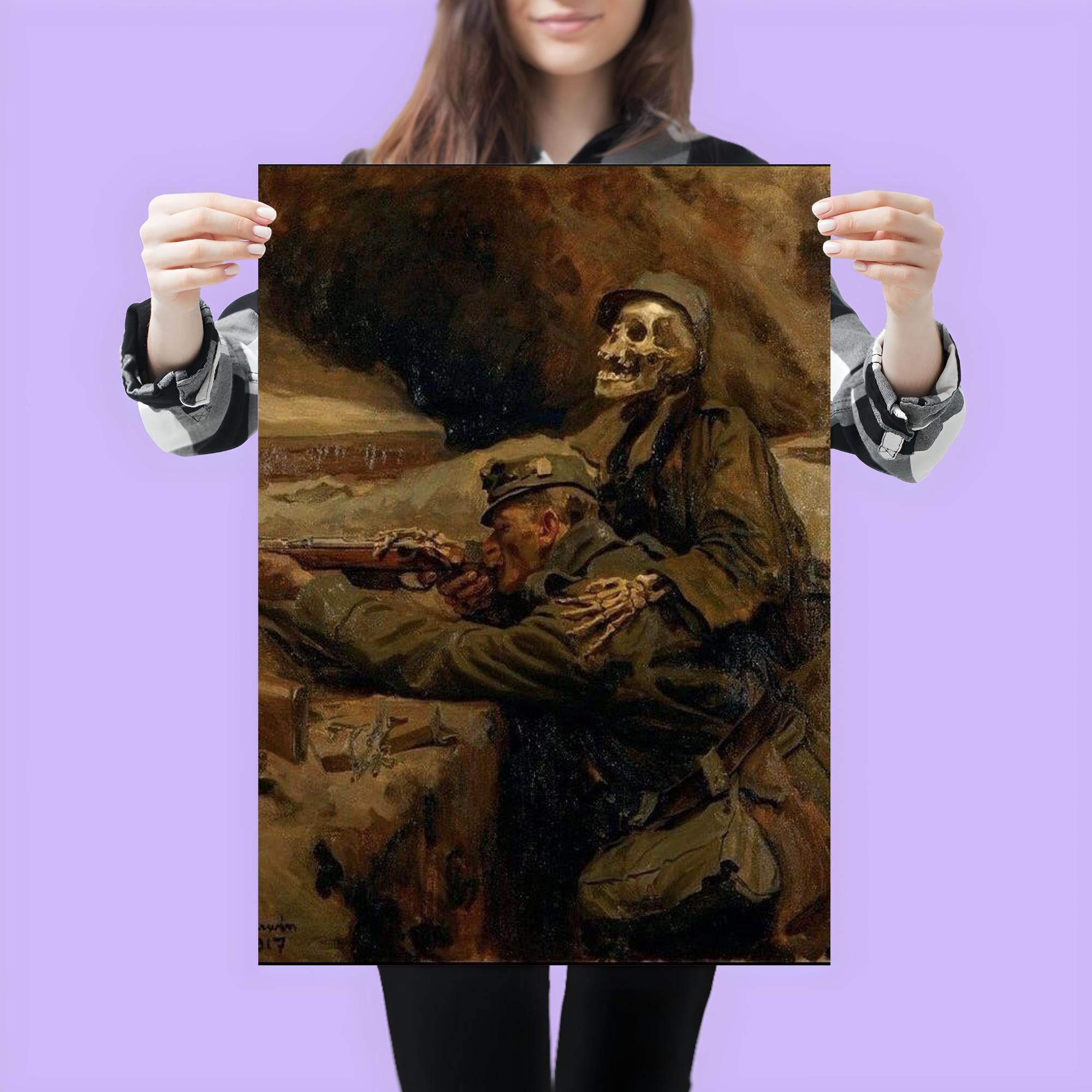 Death and the Soldier Poster Print by Hans Larwin 1917 – Vintage WWI Wall Art, Historical Military Illustration for Home & Office Decor