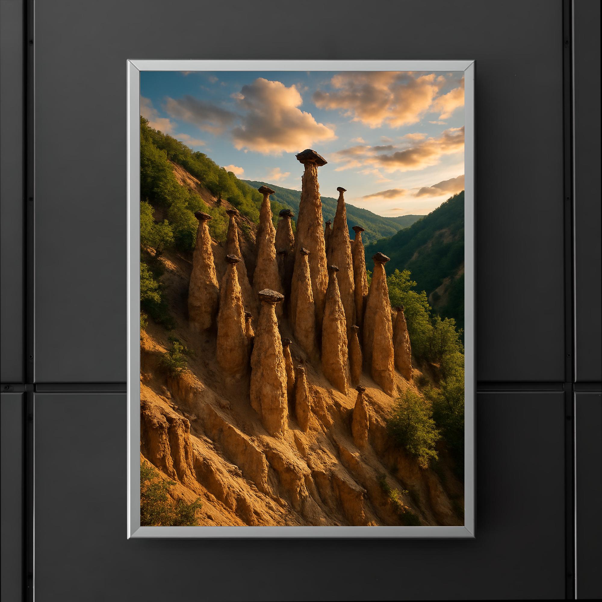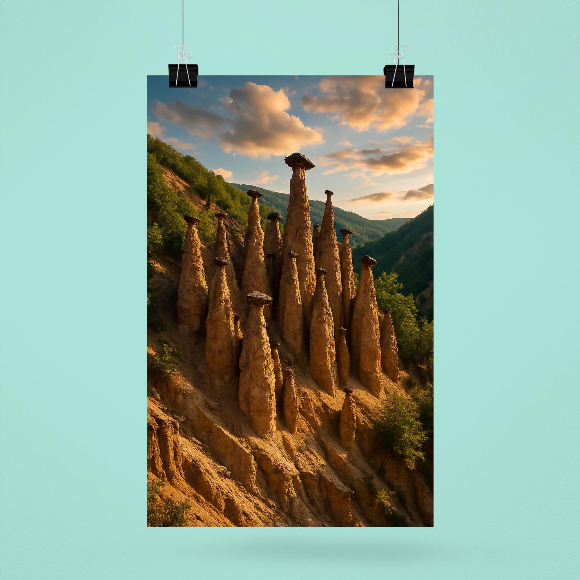 Bring home the mysterious allure of Devil's Town, Serbia, with this striking poster capturing the iconic otherworldly rock formations of Davolja Varos. Perfect for adventurers and nature lovers alike, it transforms any space into a gateway to one of the planet’s most fascinating natural wonders. Let the enchanting spirit of this unique landscape inspire your day, every day.