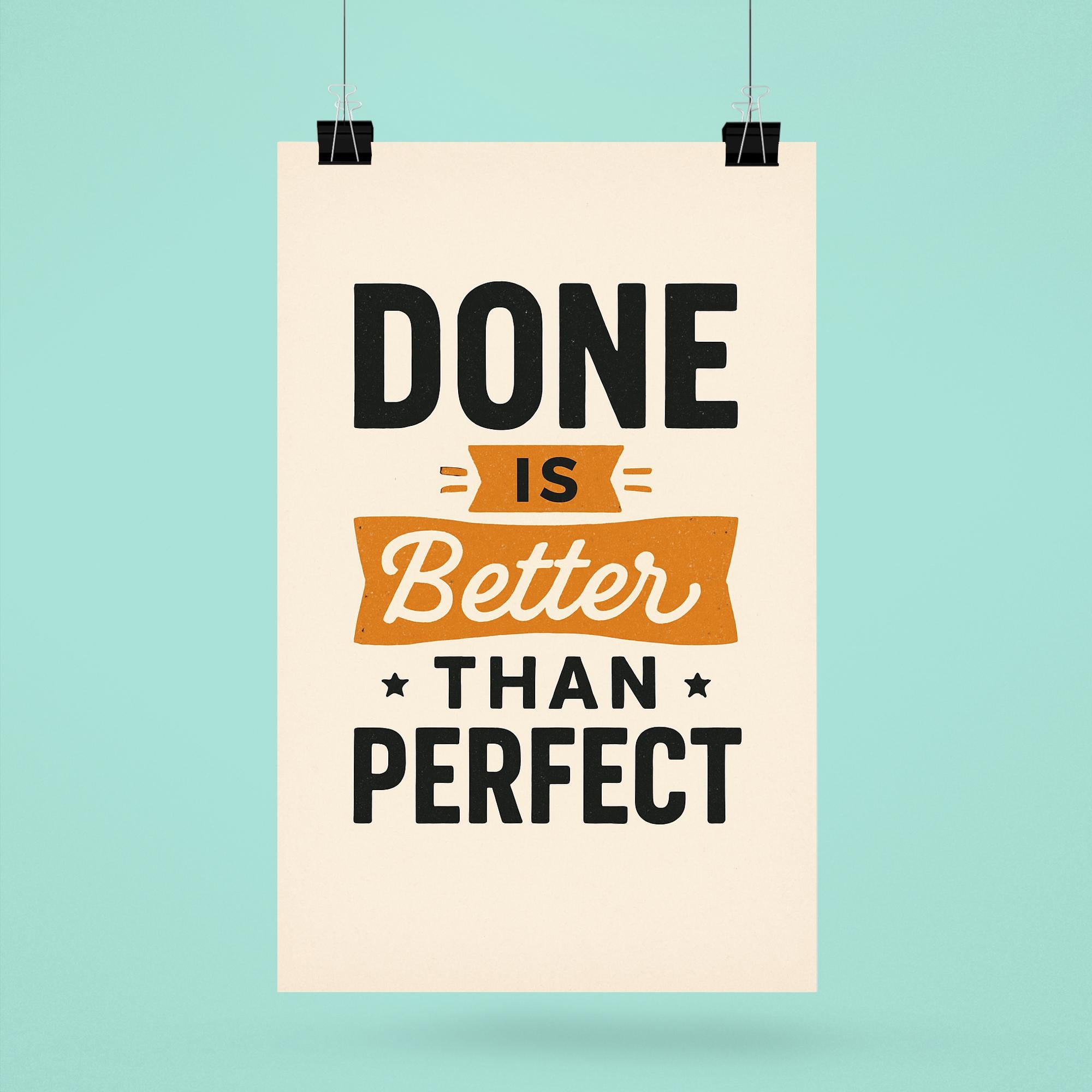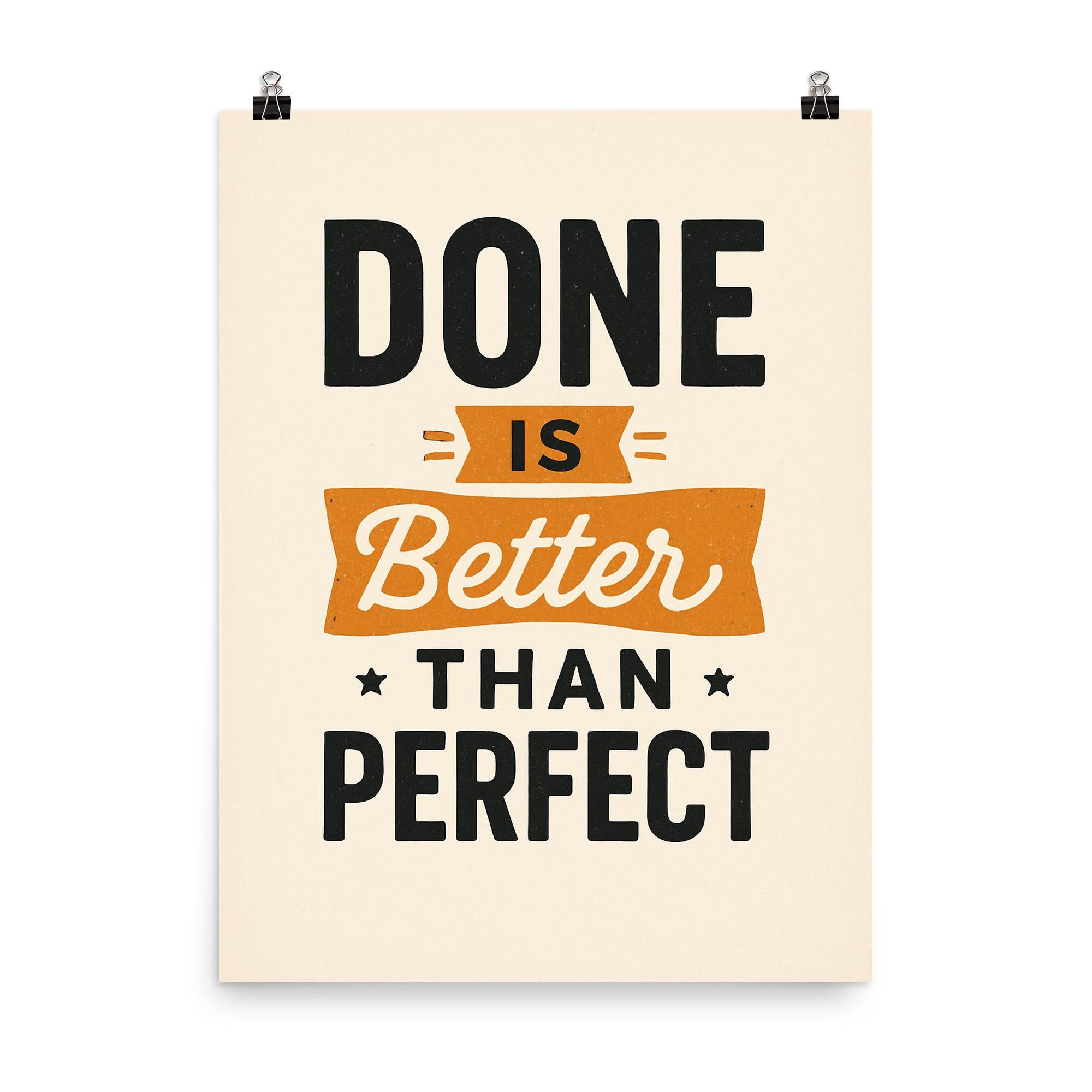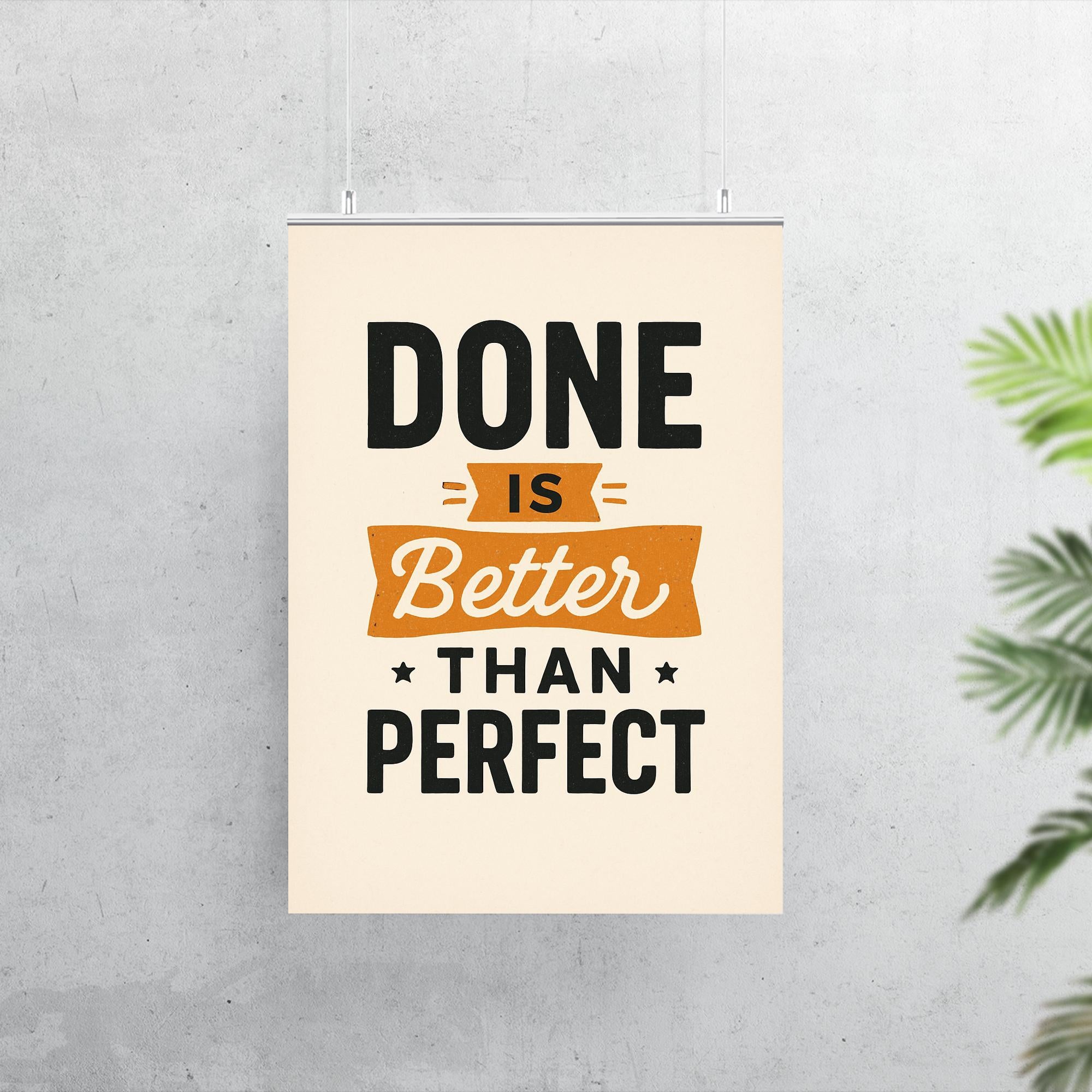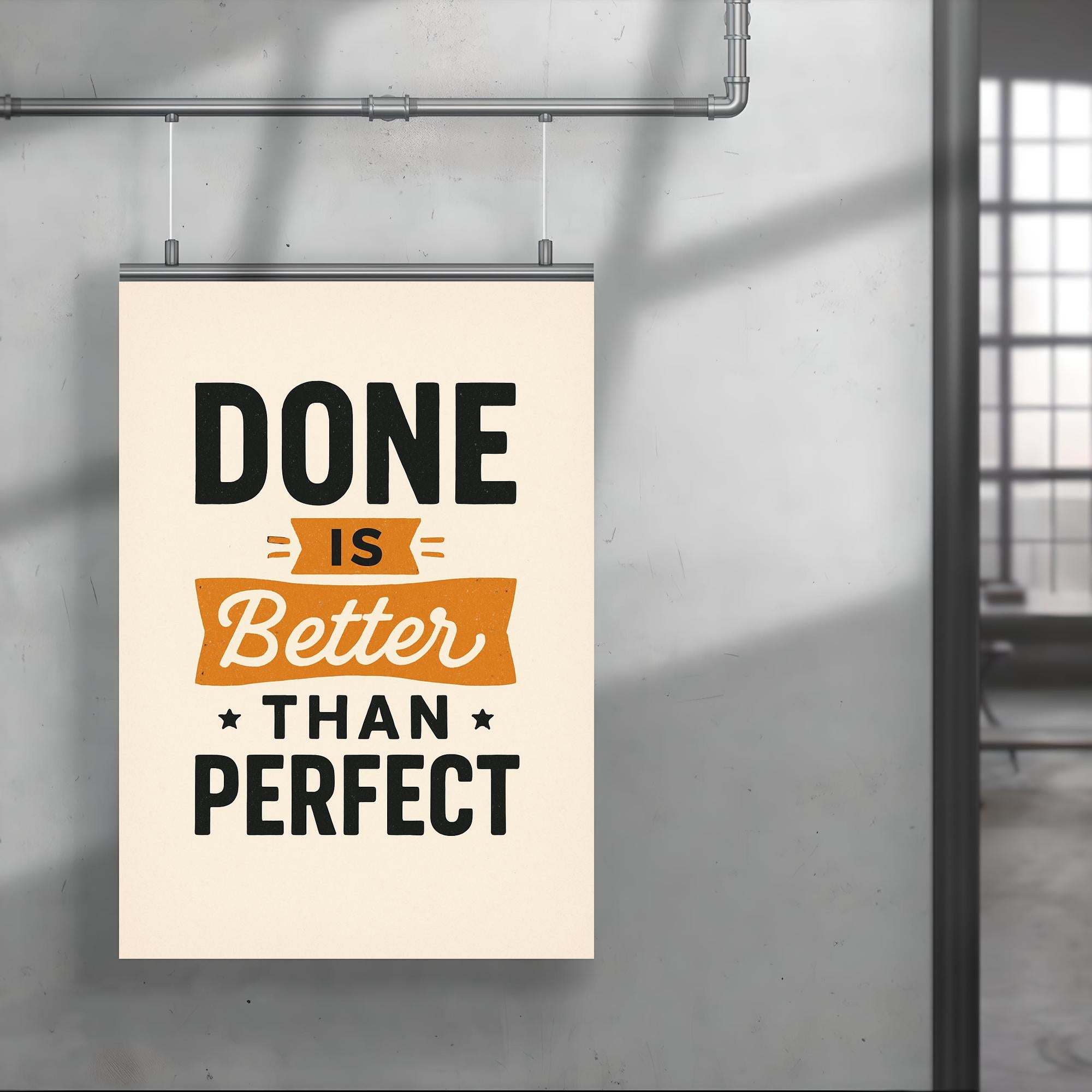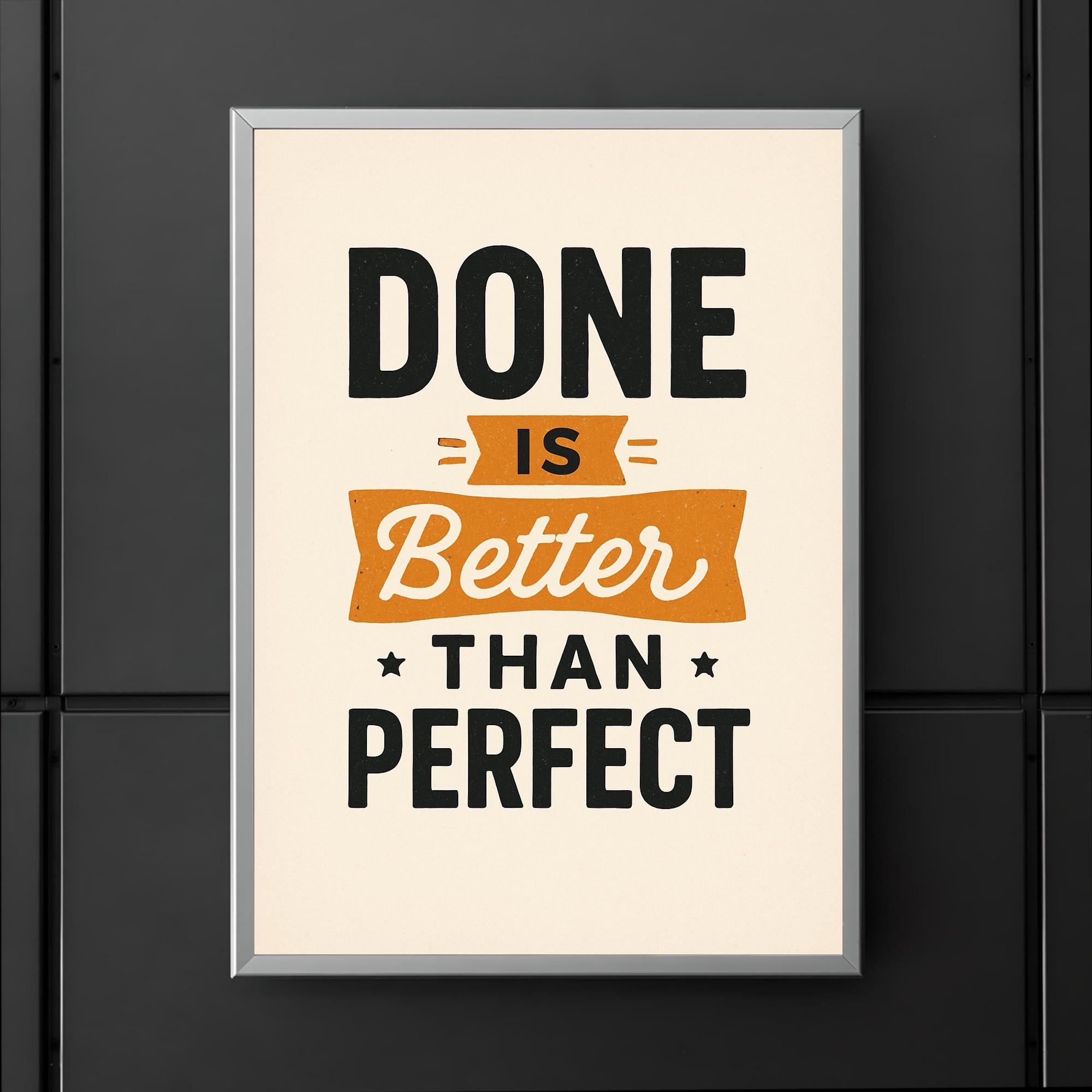 Supercharge your productivity mindset with the timeless reminder: "Done is better than perfect." This bold statement inspires you to take action, conquer procrastination, and celebrate real progress. Hang it where you need motivation the most and watch your goals move from dreams to done.