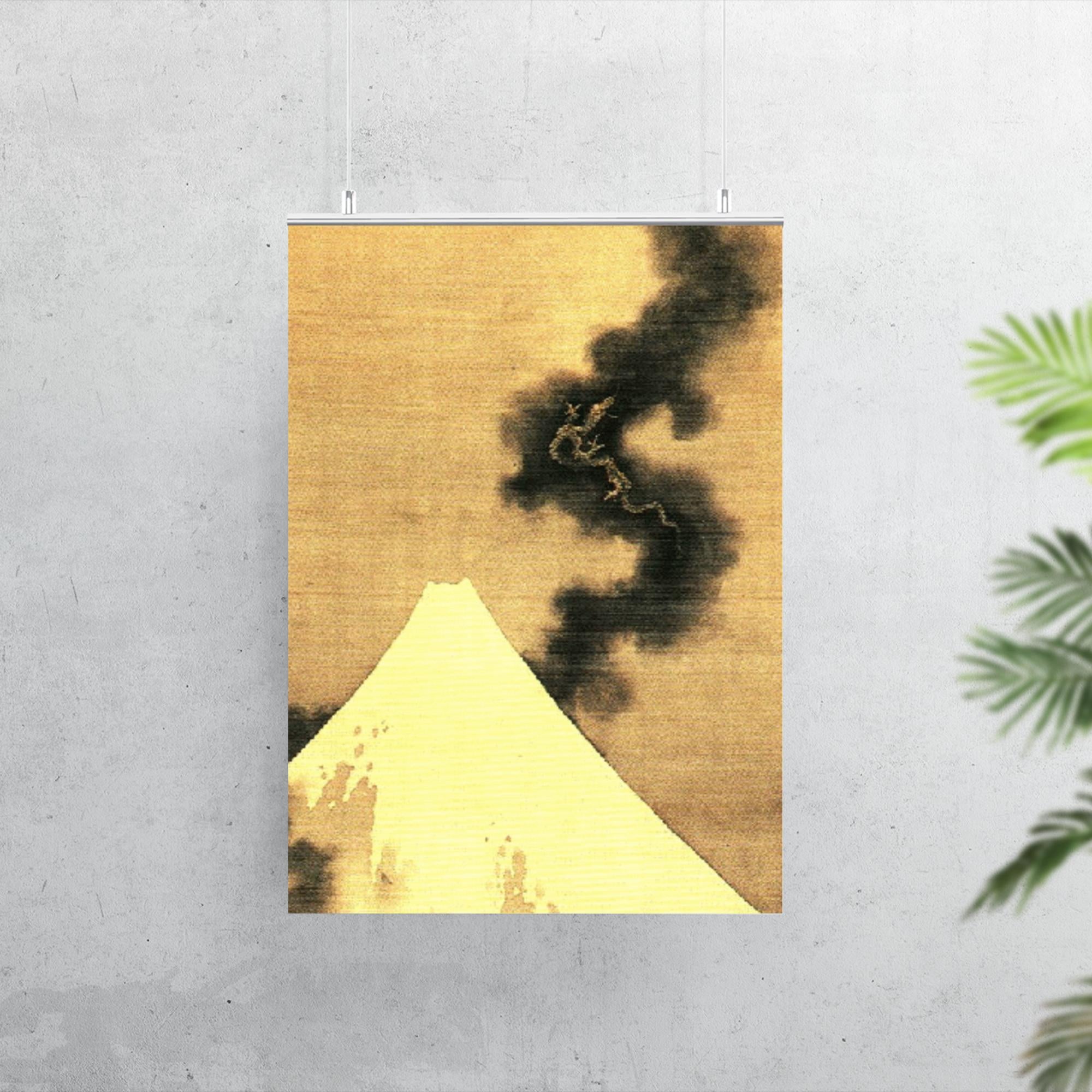 Dragon of Smoke Escaping Mount Fuji Poster Print by Hokusai – Japanese Art Wall Decor, Vibrant Ukiyo-e Landscape for Home & Office