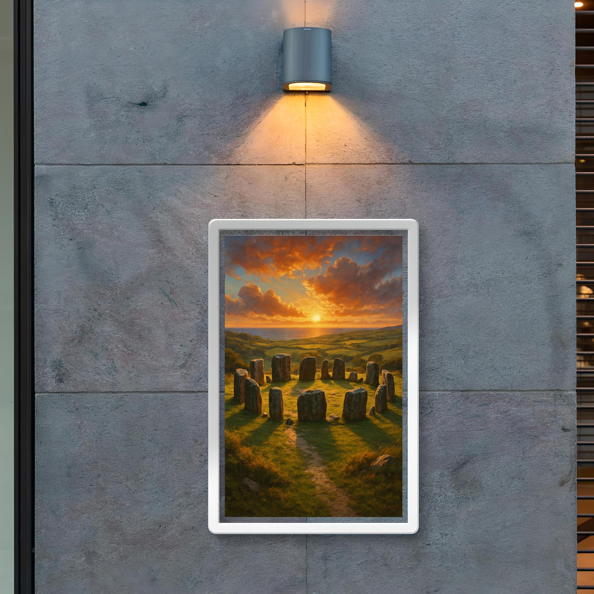 Transform your space with this striking poster of Drombeg Stone Circle, a timeless emblem of Ireland’s ancient heritage. Capturing the mystery and enduring power of this prehistoric site, the artwork invites you to explore the stories etched in stone and time. Perfect for those who appreciate history and natural beauty, this poster brings a touch of Irish legend and wonder into your home or office.