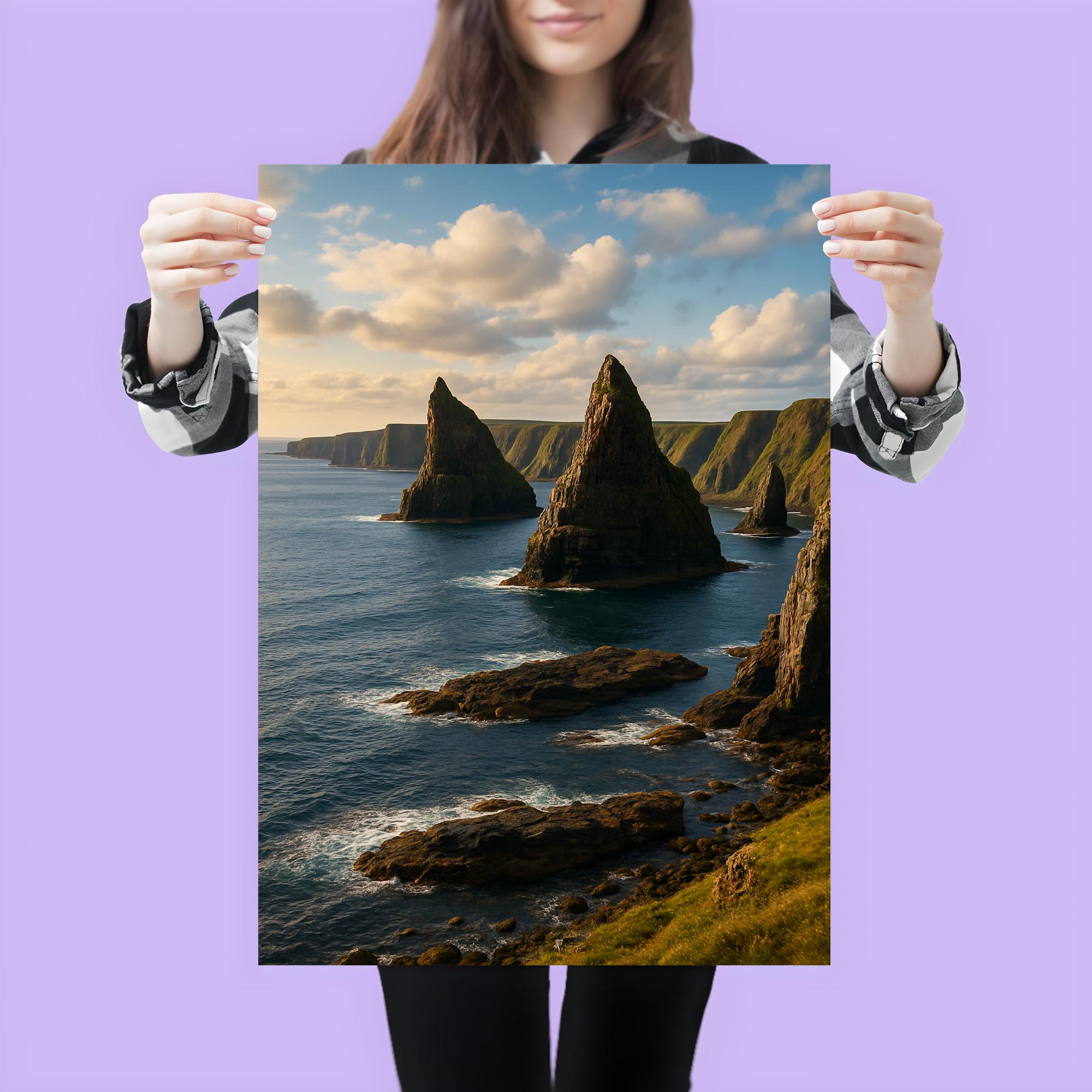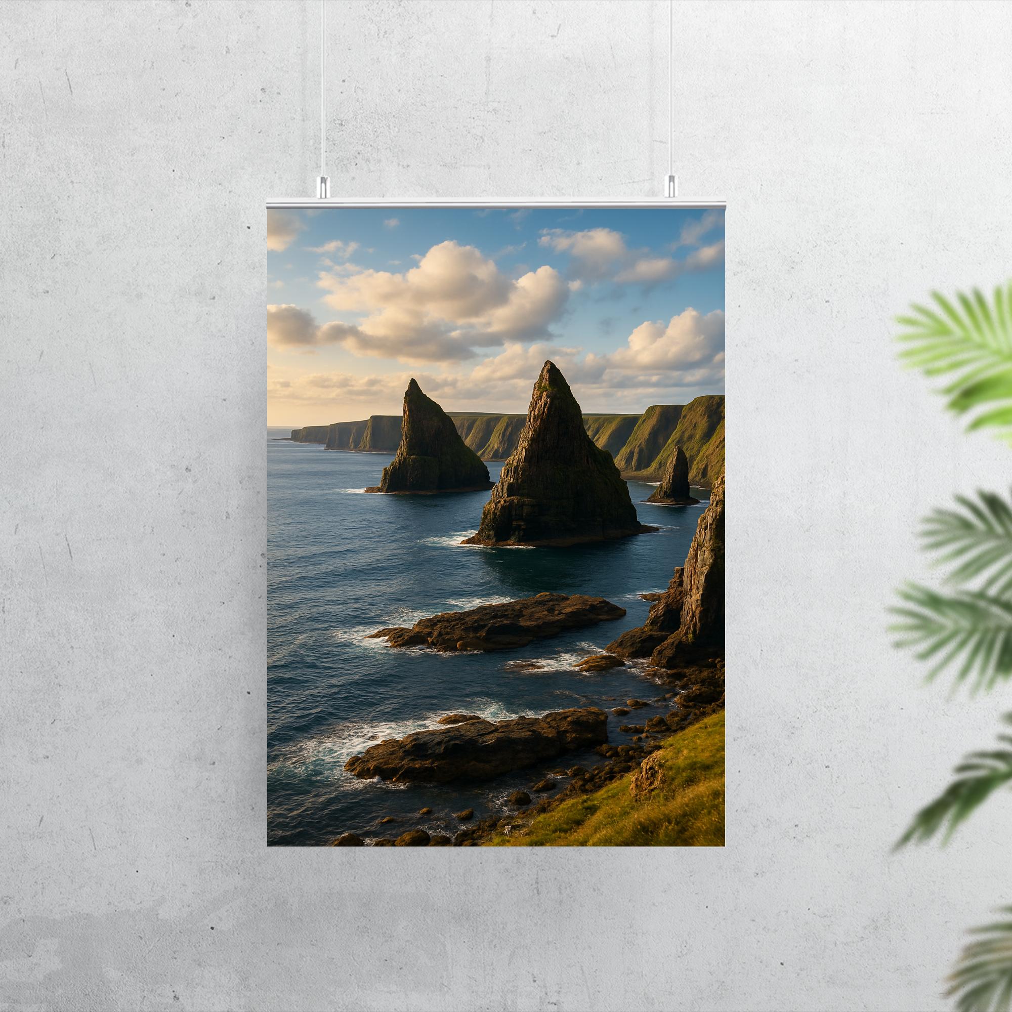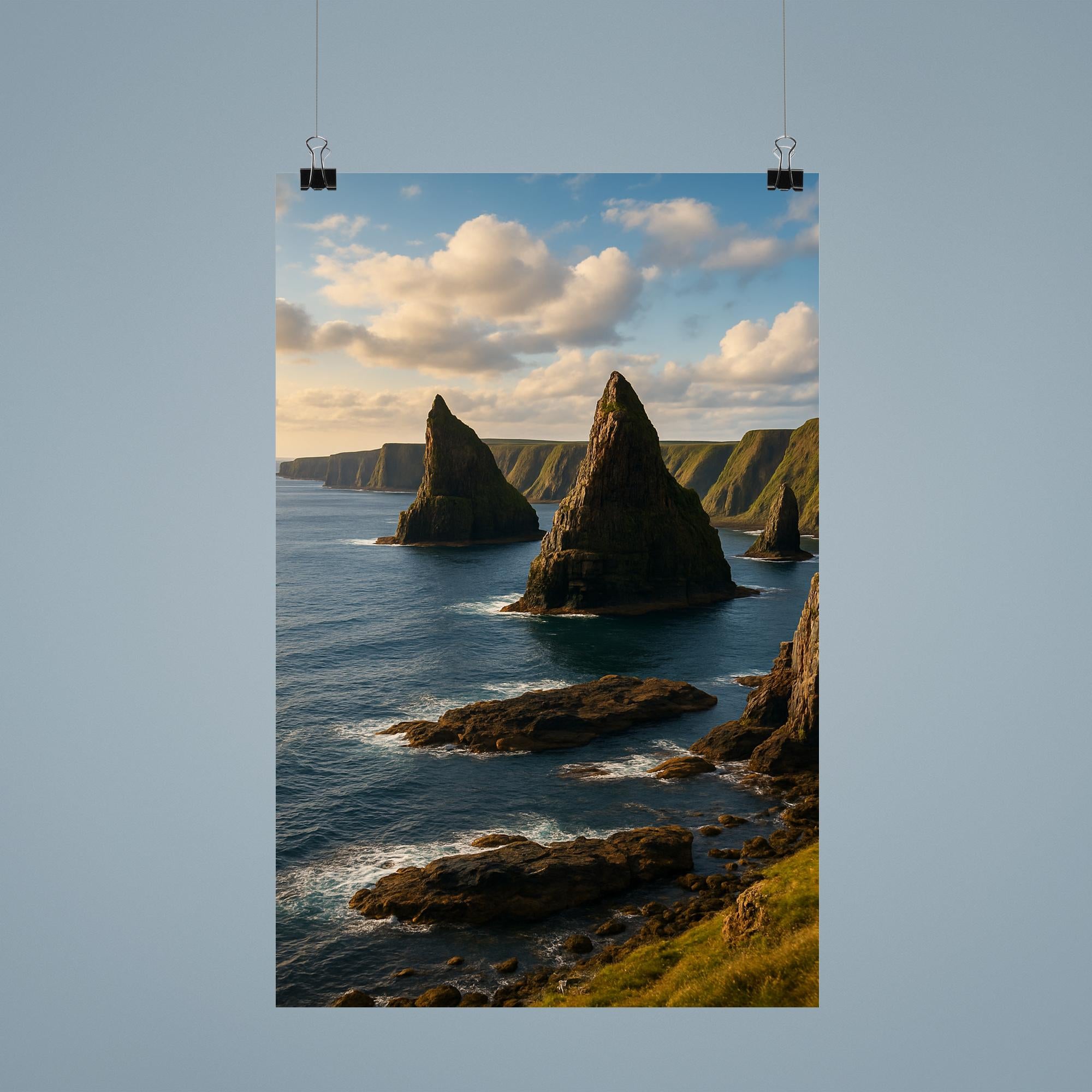 Transform your space with the striking beauty of the Duncansby Sea Stacks, captured in this stunning poster. Showcasing the dramatic rock formations where Scotland’s rugged coastline meets the restless sea, this artwork brings a sense of wild, natural majesty into your home or office. Perfect for lovers of coastal landscapes and timeless Scottish scenery, it invites you to experience the power and serenity of nature every day.