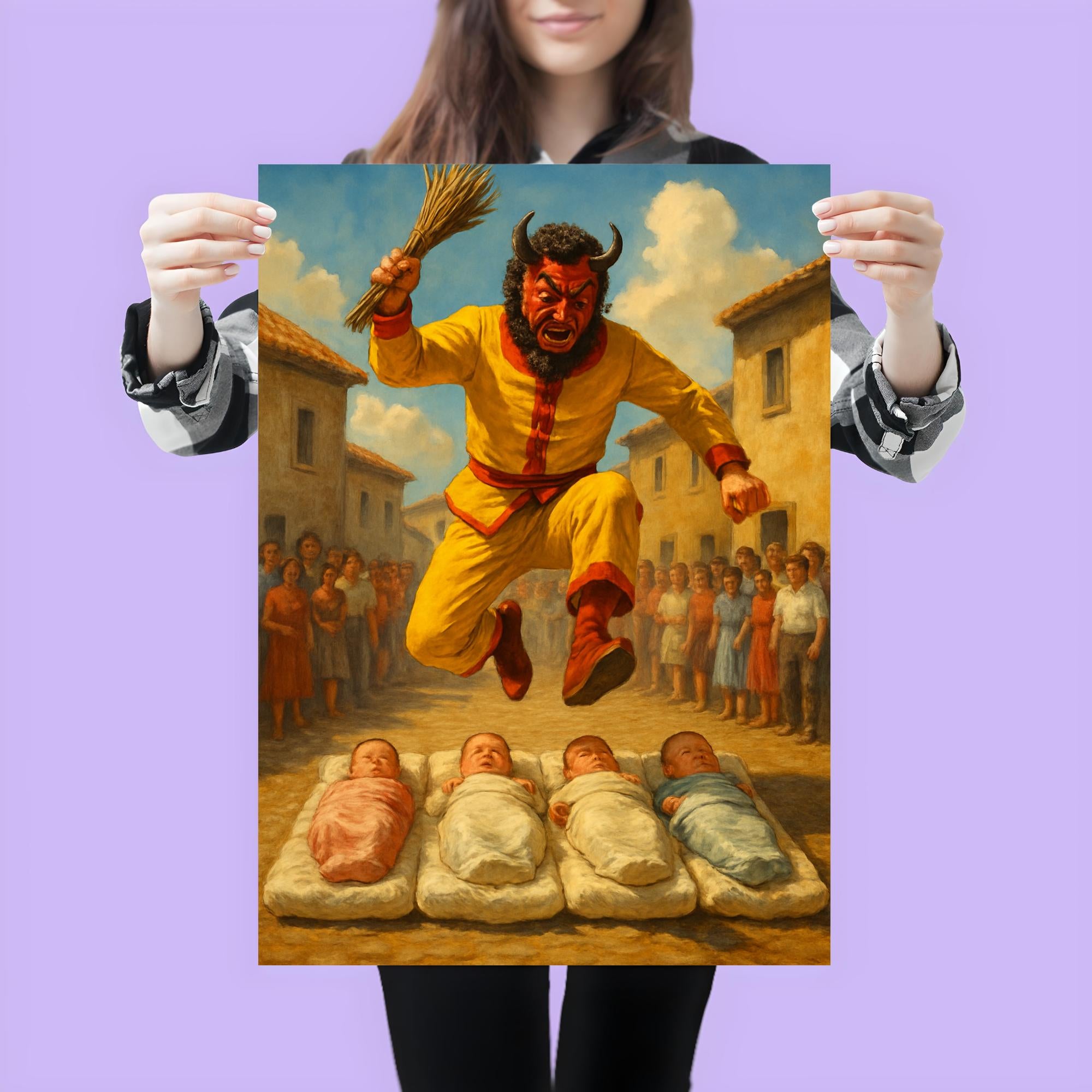 Capture the vibrant spirit of Spain’s unique El Colacho Baby Jumping Festival with this stunning poster. Celebrate a centuries-old tradition that blends folklore, color, and joy in a mesmerizing visual tribute. Perfect for adding a touch of cultural charm and lively energy to any space.