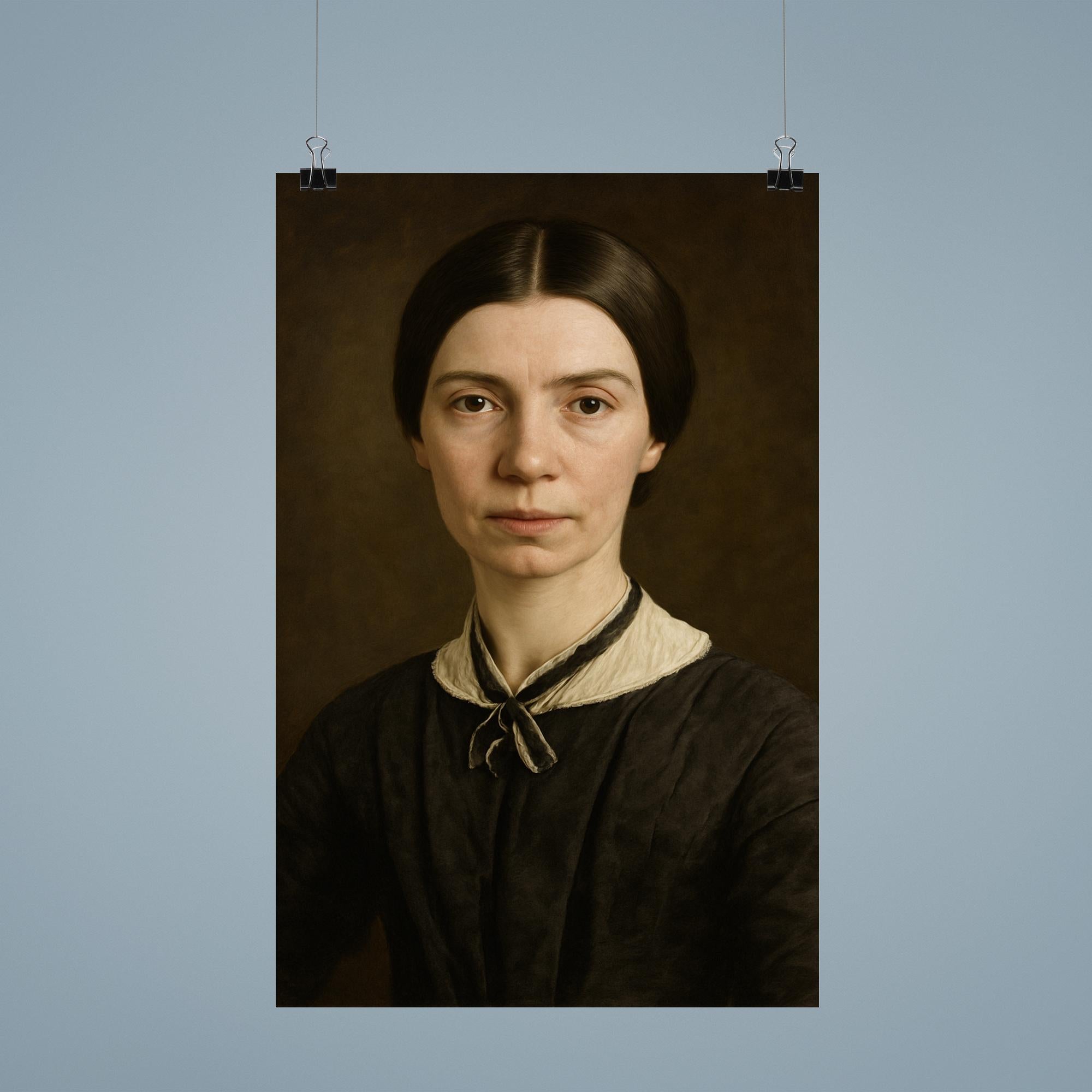Celebrate the timeless genius of Emily Dickinson with this beautifully crafted portrait poster. Perfect for any poetry lover or literary enthusiast, it brings a touch of inspiration and quiet strength to your space. Elevate your walls with the serene presence of one of America's most beloved poets.