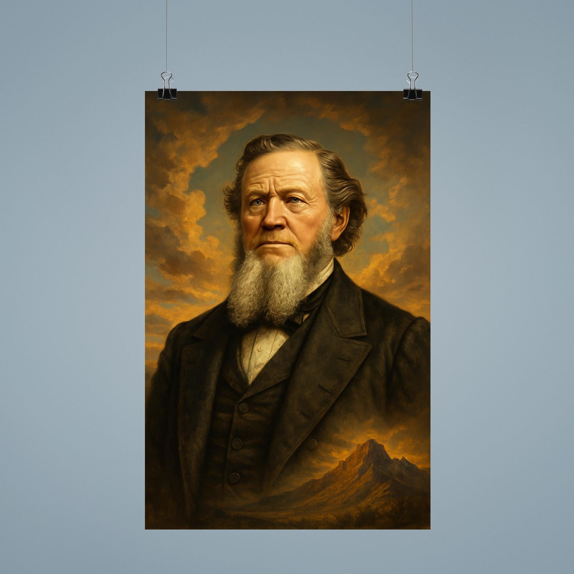 Epic Brigham Young Poster Print – Vintage LDS Wall Art, Historic Pioneer Portrait, Unique Home Decor for Religious & Inspirational Spaces