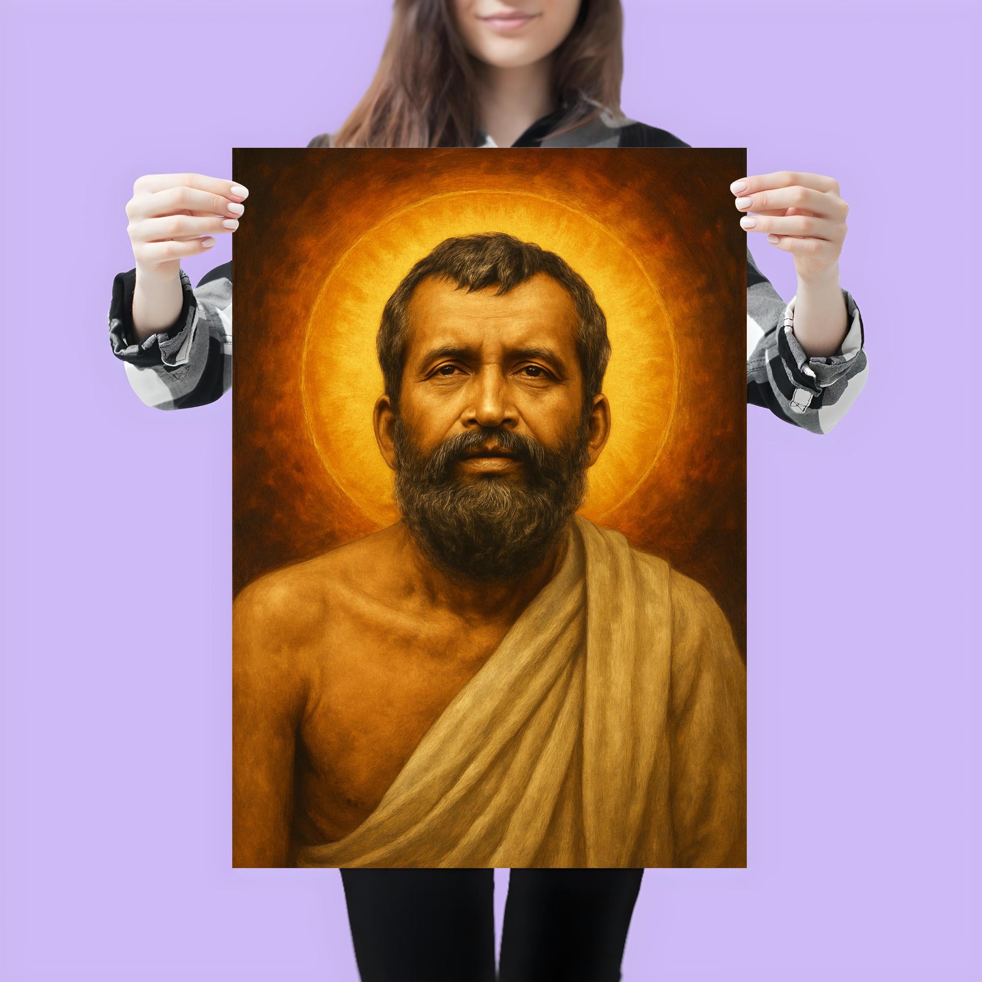 Elevate your space with the timeless presence of this stunning Epic Sri Ramakrishna portrait. Every detail captures the serene wisdom and profound compassion of the revered saint, inspiring peace and reflection in your home or office. A powerful tribute that brings spiritual grace and artistic elegance together in perfect harmony.