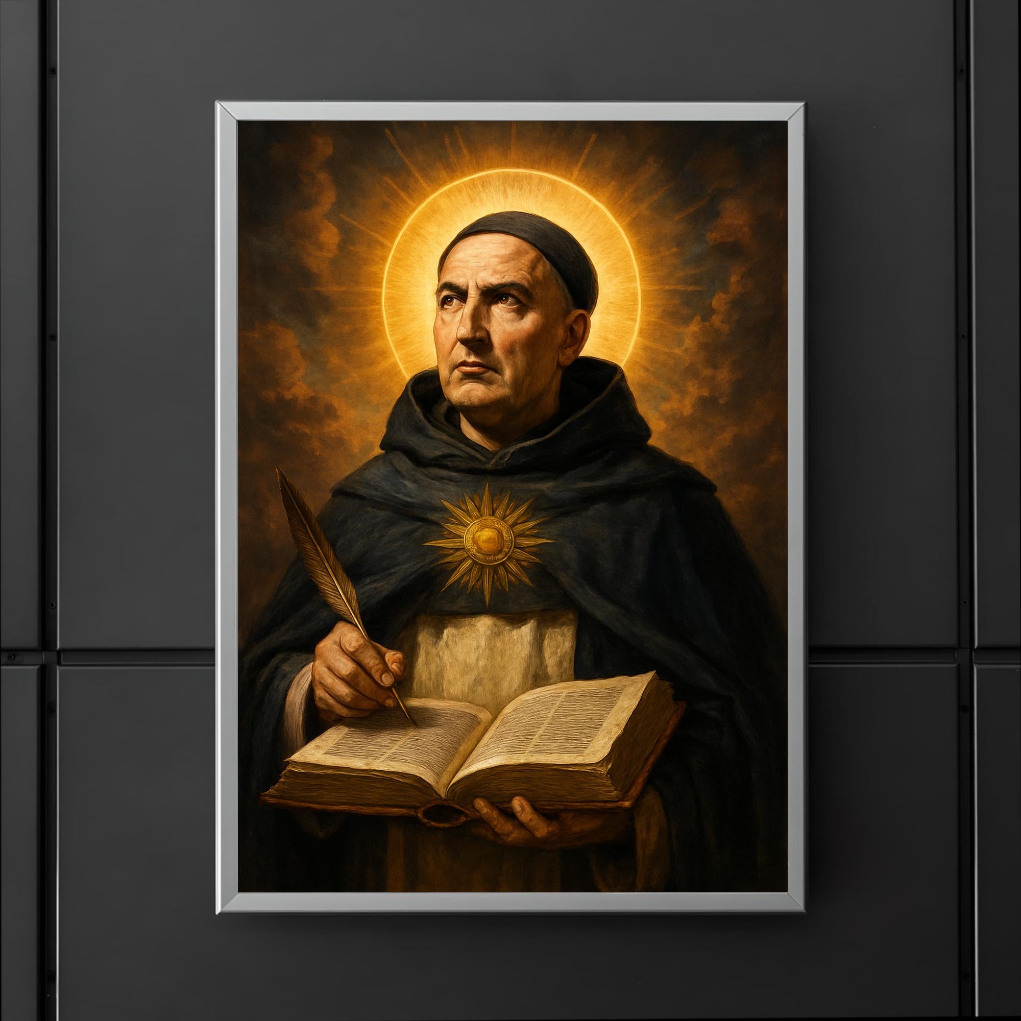 Elevate your space with this striking portrait of St. Thomas Aquinas, a timeless tribute to one of history’s greatest thinkers and theologians. Perfect for inspiring reflection and admiration, this poster captures the essence of intellectual legacy and spiritual depth, making it a powerful addition to any home, office, or study. Bring profound wisdom and classic elegance to your walls with this unforgettable piece.